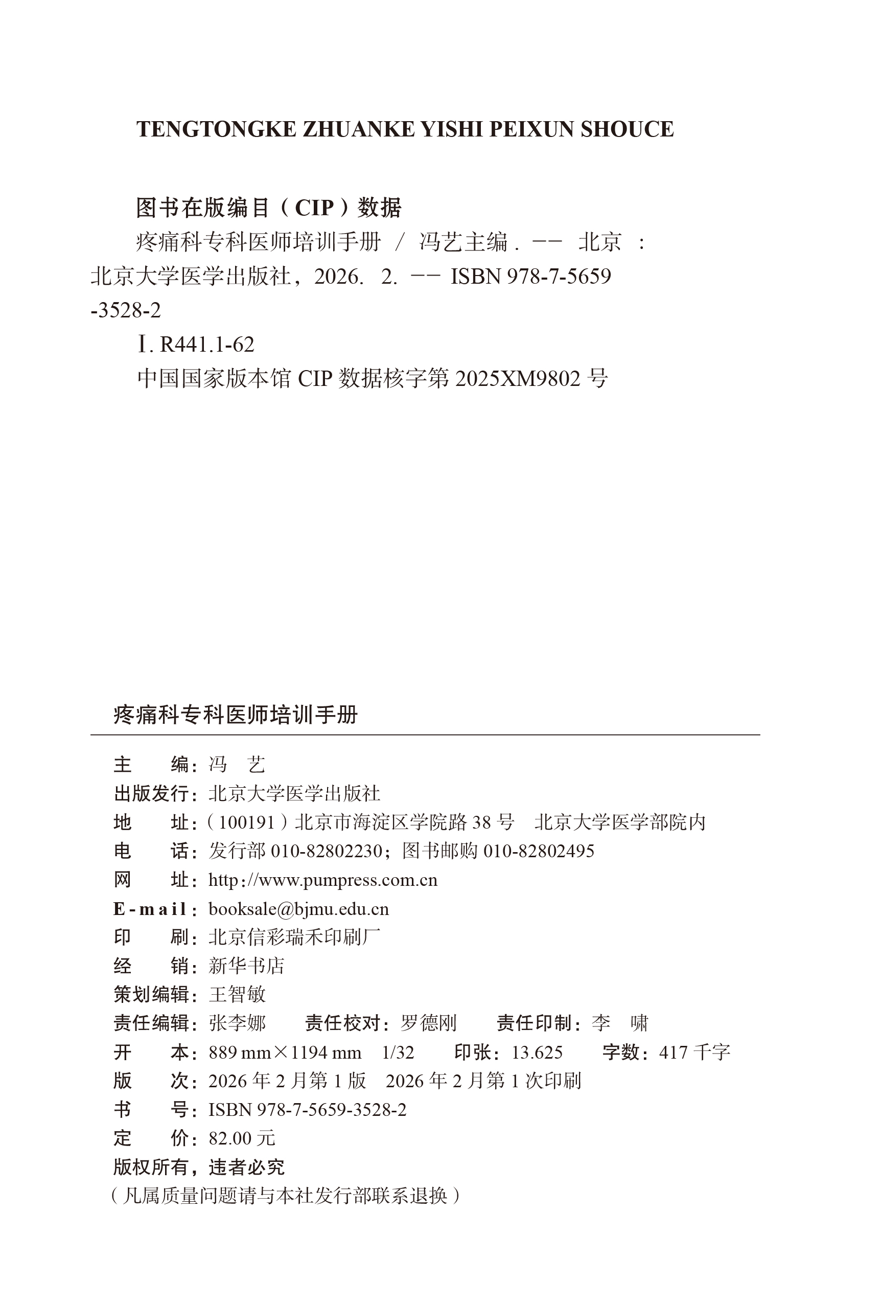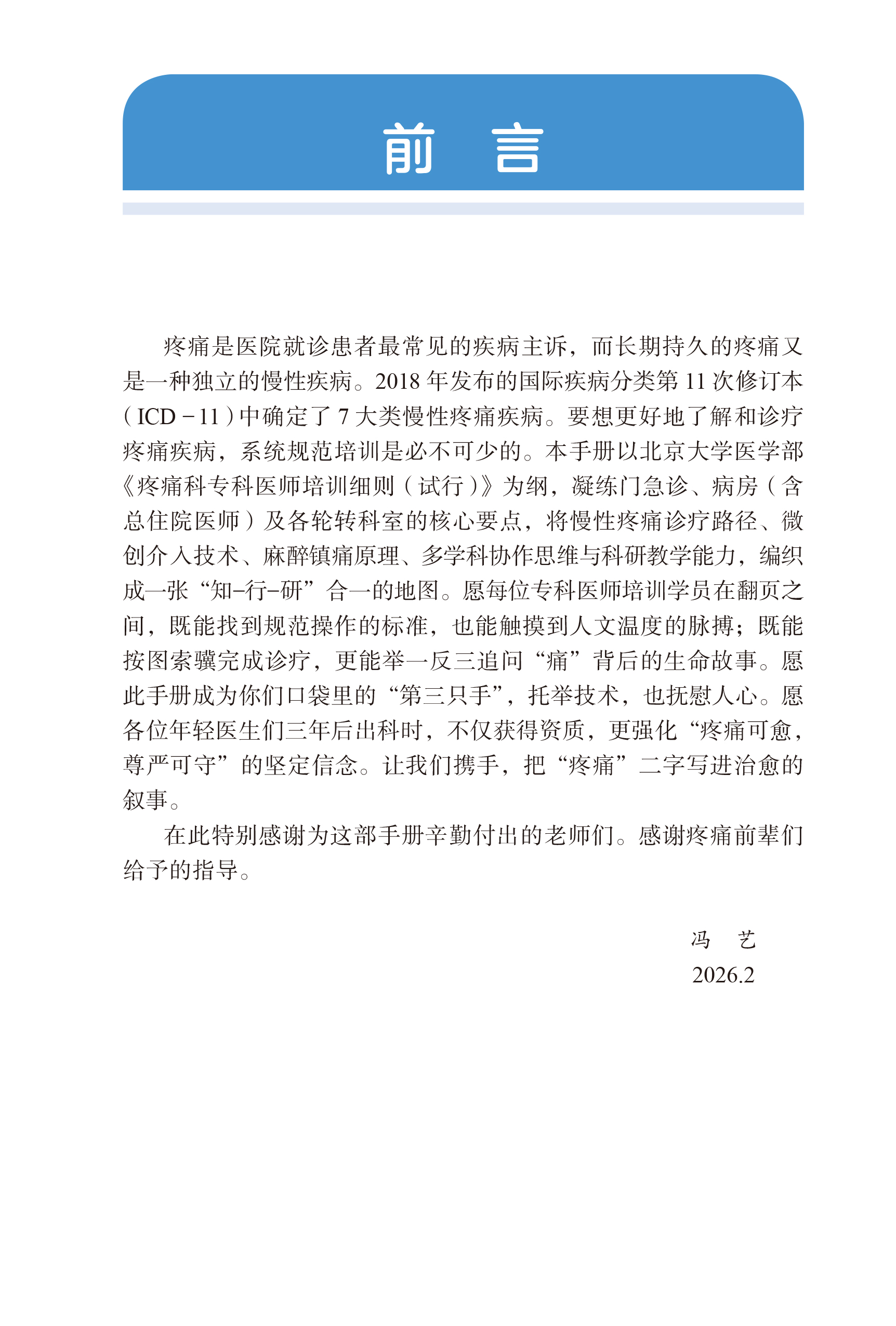 疼痛科专科医师培训手册 冯艺 主编 北医社