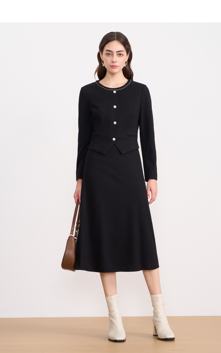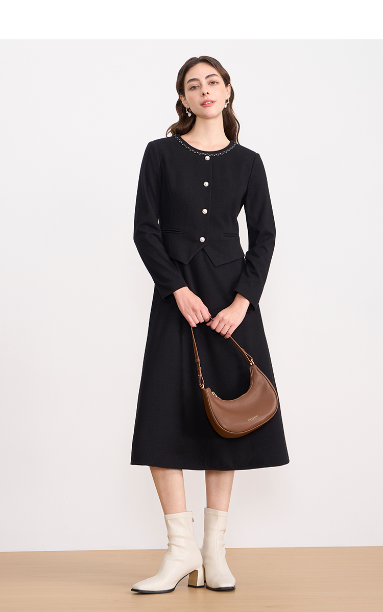 【温柔气质香风】EITIE爱特爱精致千金假两件连衣裙2025秋冬新款D2507909