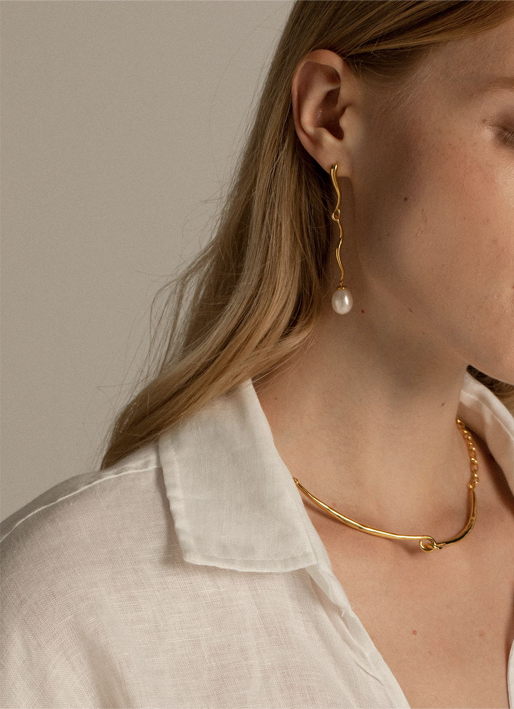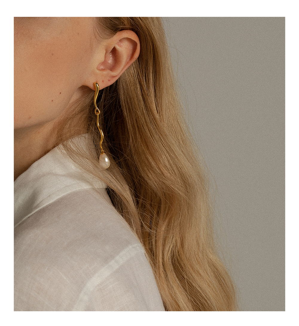 水滴珍珠耳环 UNFOLDSThe Amulet Water-Drop Earrings Gold White Pear