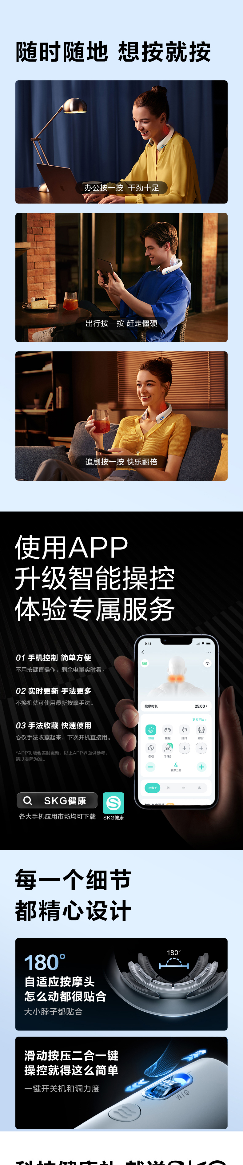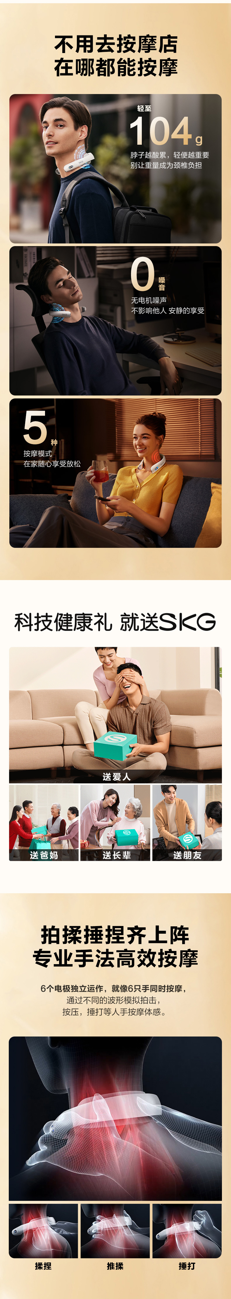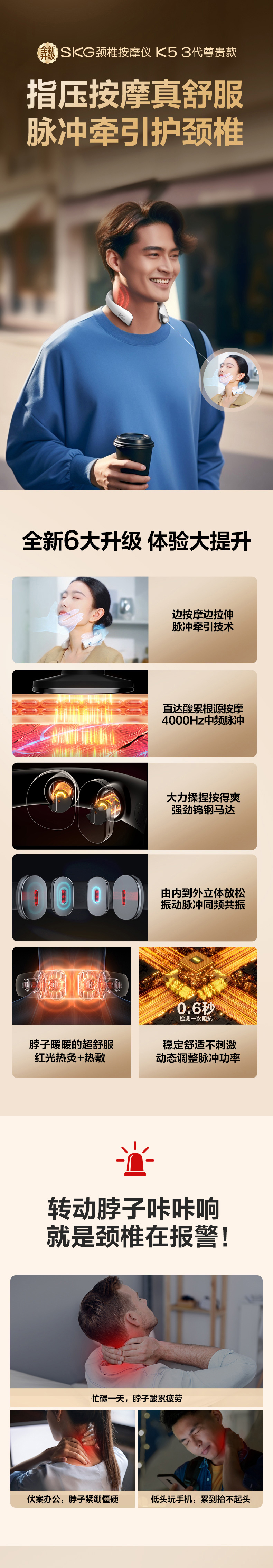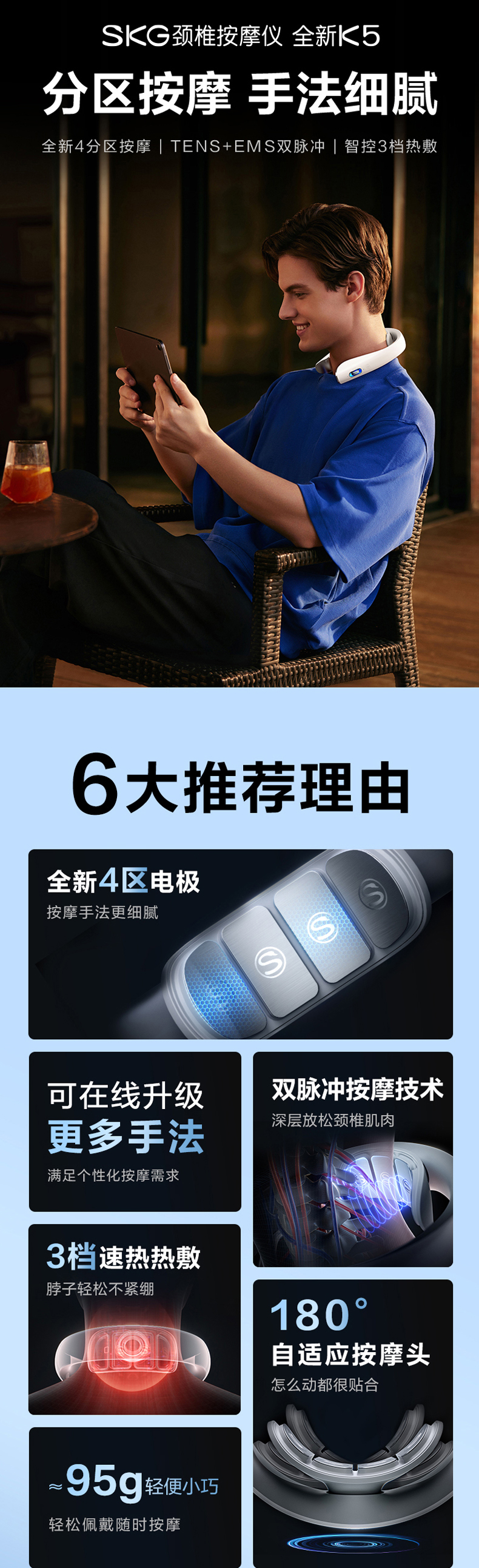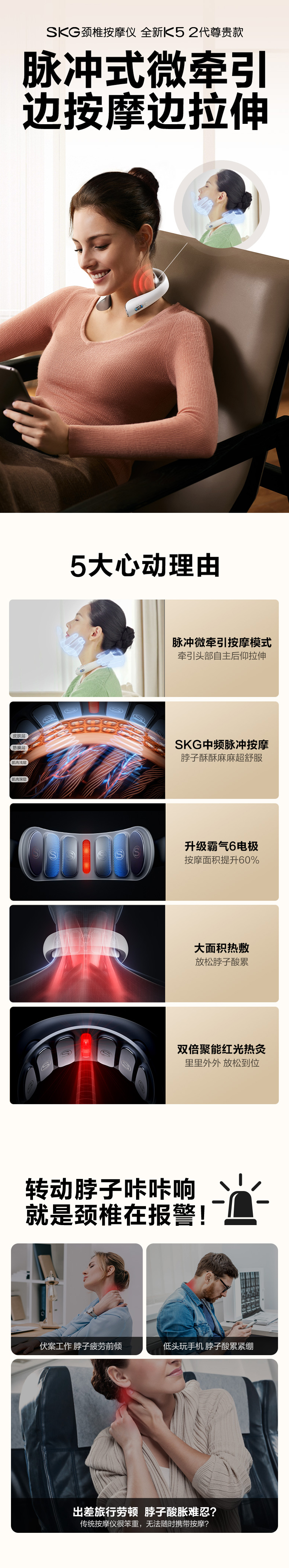 测评优品-SKG颈椎按摩仪K5系列 物理振动 脉冲 温控热敷 肩颈按摩 中频脉冲微牵引 轻便小巧 随身携带 仿真人按摩手法 颜值高 年货好礼