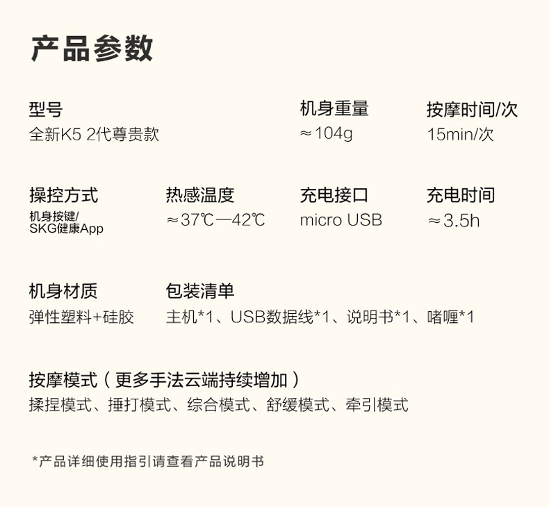 K5-3尊贵:增加脉冲牵引按摩功能 升级全红光高频震动电极片 物理+脉冲同频按摩 振动力度3档 脉冲力度9档 红光热敷3档 5种模式