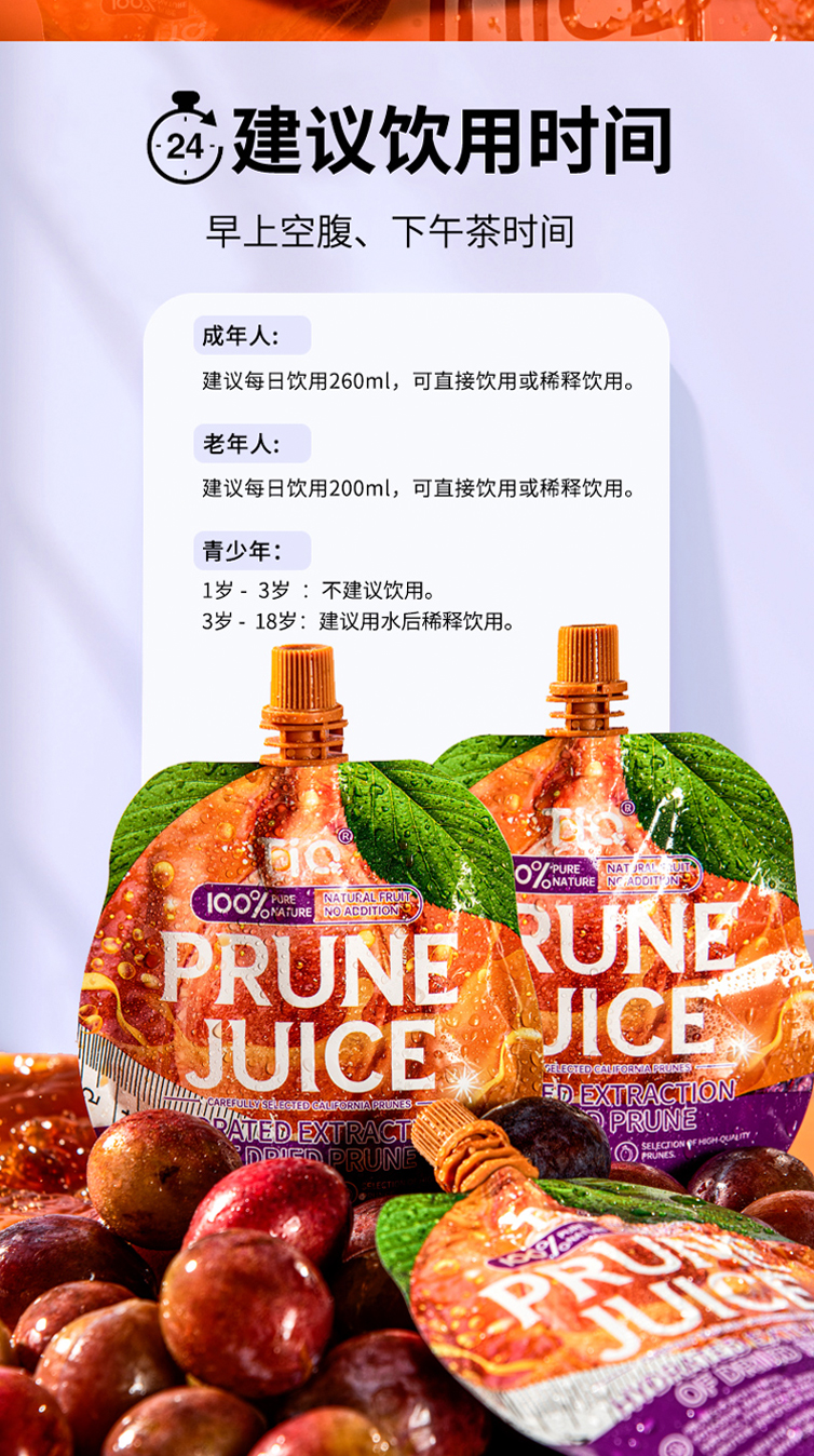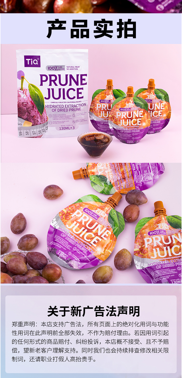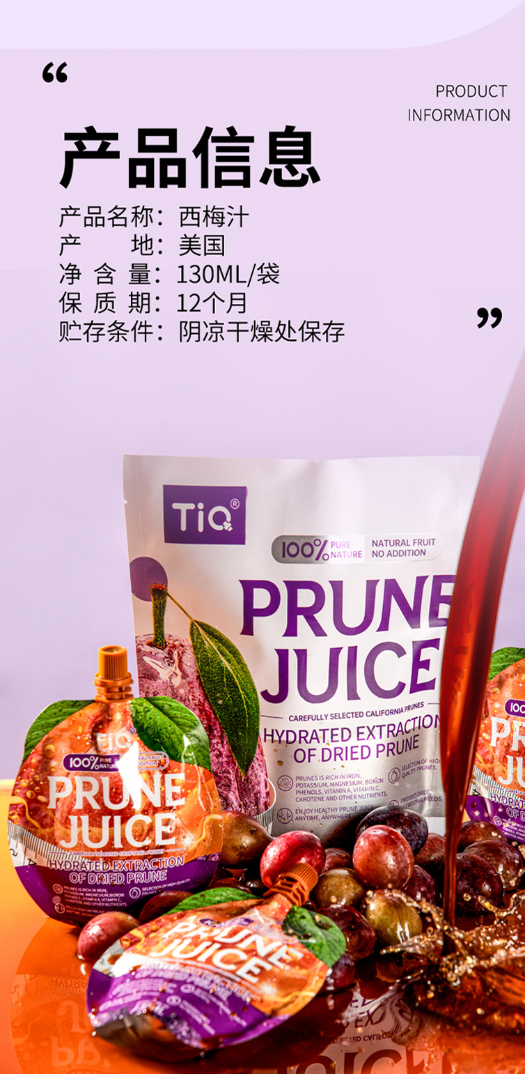 【买2袋半价】TIQ西梅汁养出好状态“嗯嗯”更畅快纯西梅果汁天然健康鲜果榨汁镀铝袋便携装开袋即食正宗加州西梅原生态味道