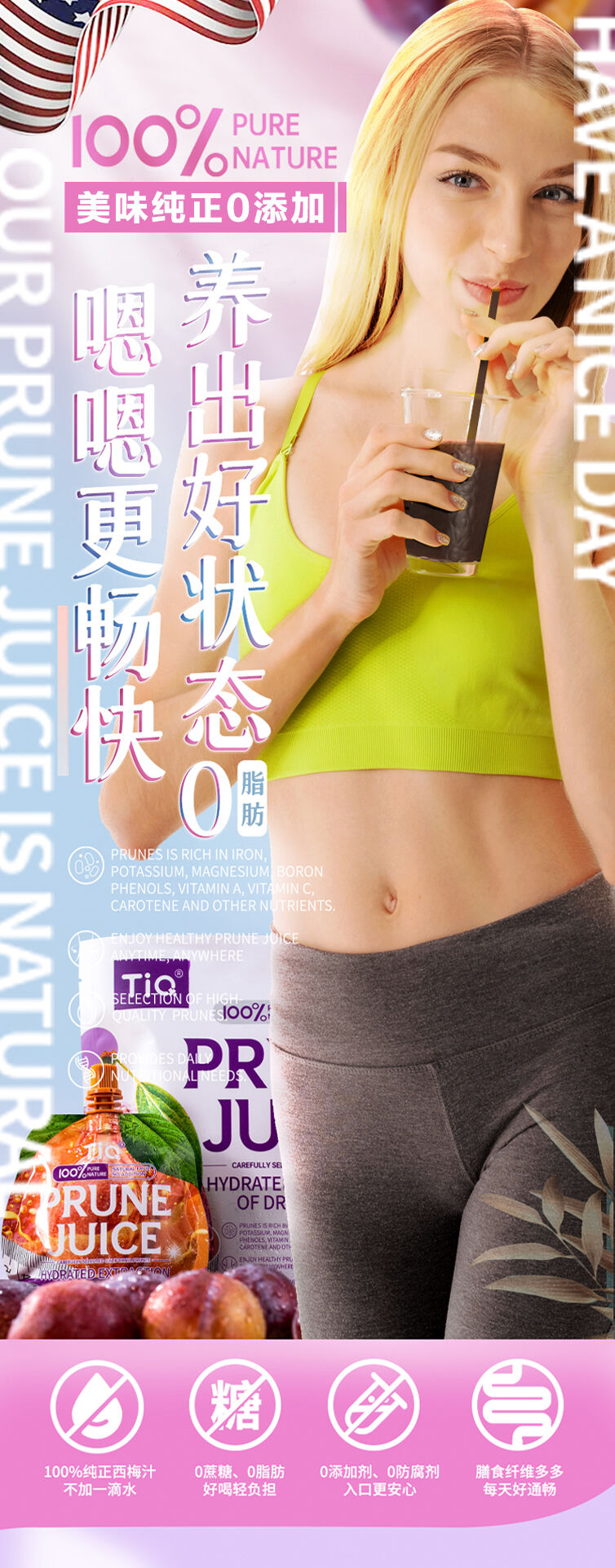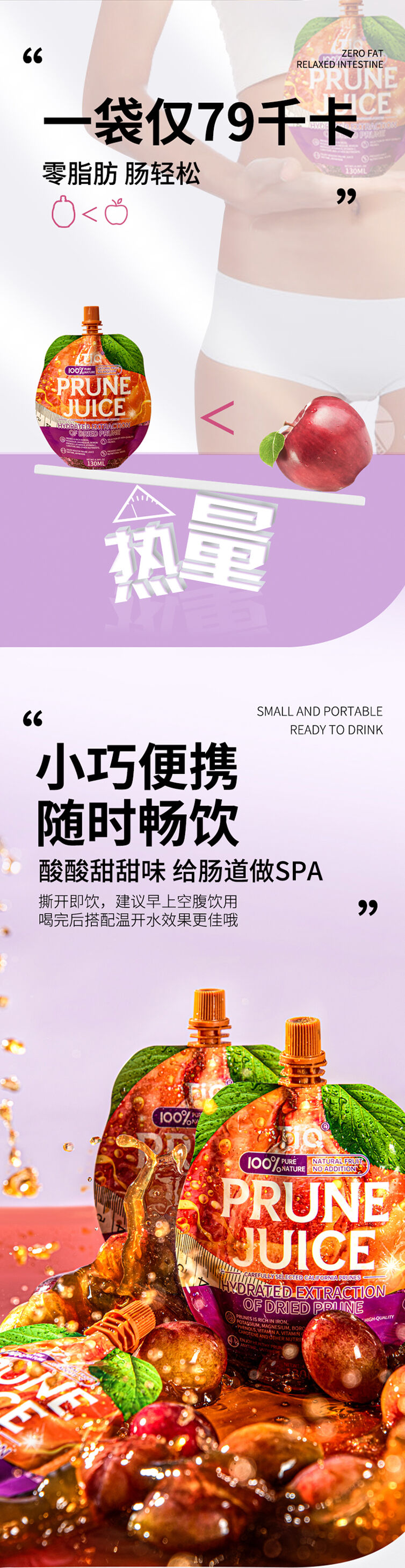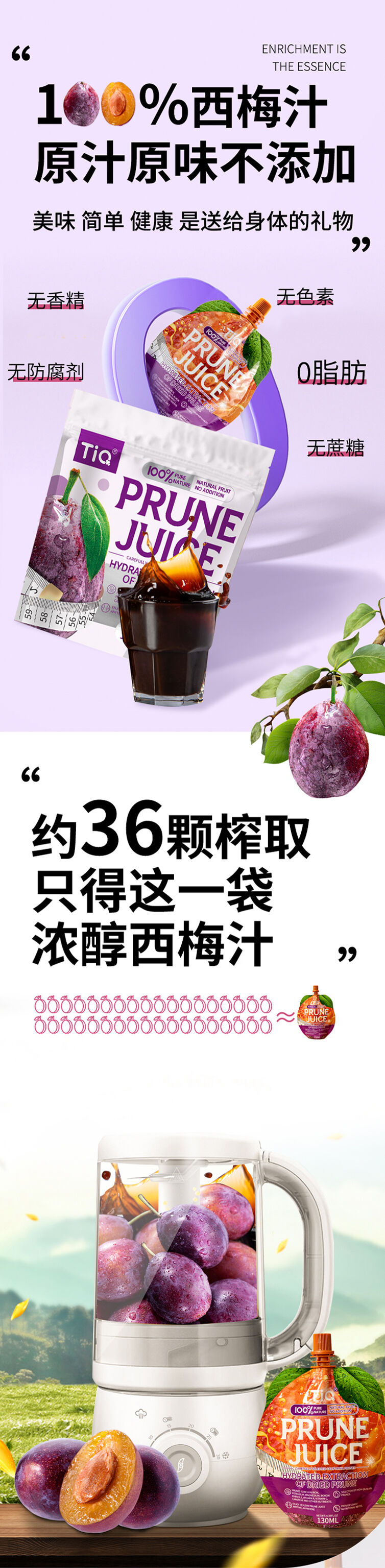 【买2袋半价】TIQ西梅汁养出好状态“嗯嗯”更畅快纯西梅果汁天然健康鲜果榨汁镀铝袋便携装开袋即食正宗加州西梅原生态味道