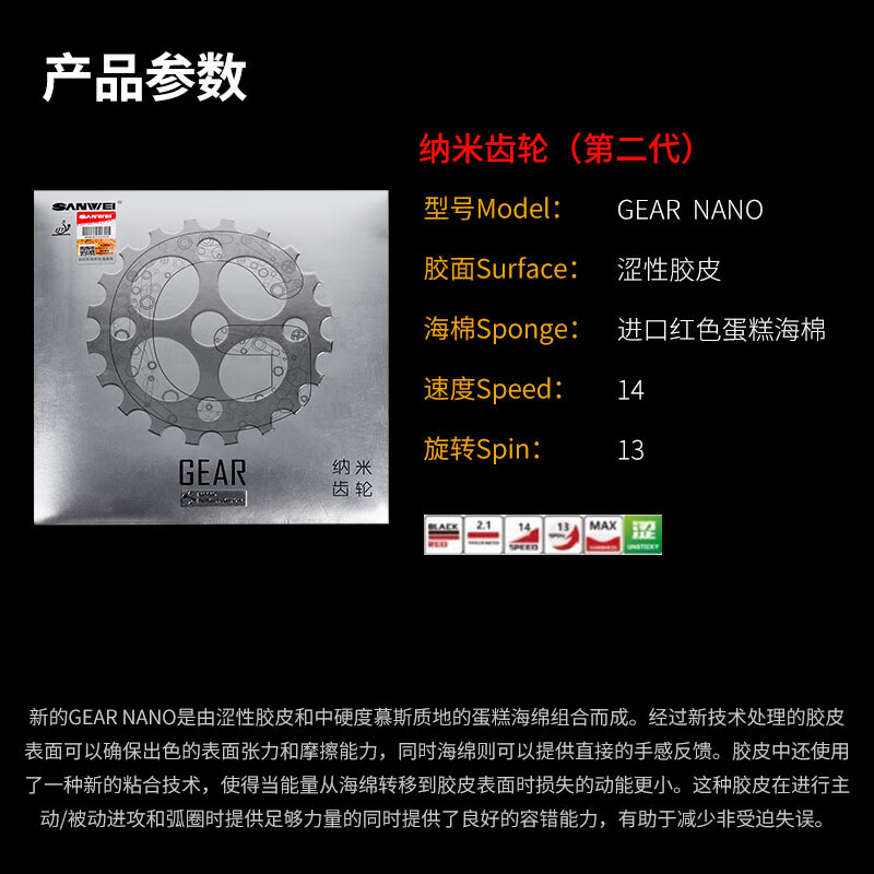 Sanwei三维纳米齿轮乒乓球胶皮专业涩性反胶套胶乒乓球反胶套胶
