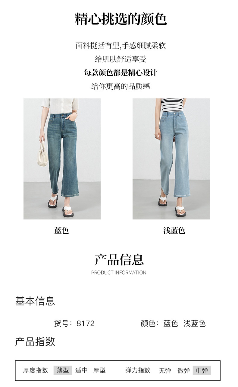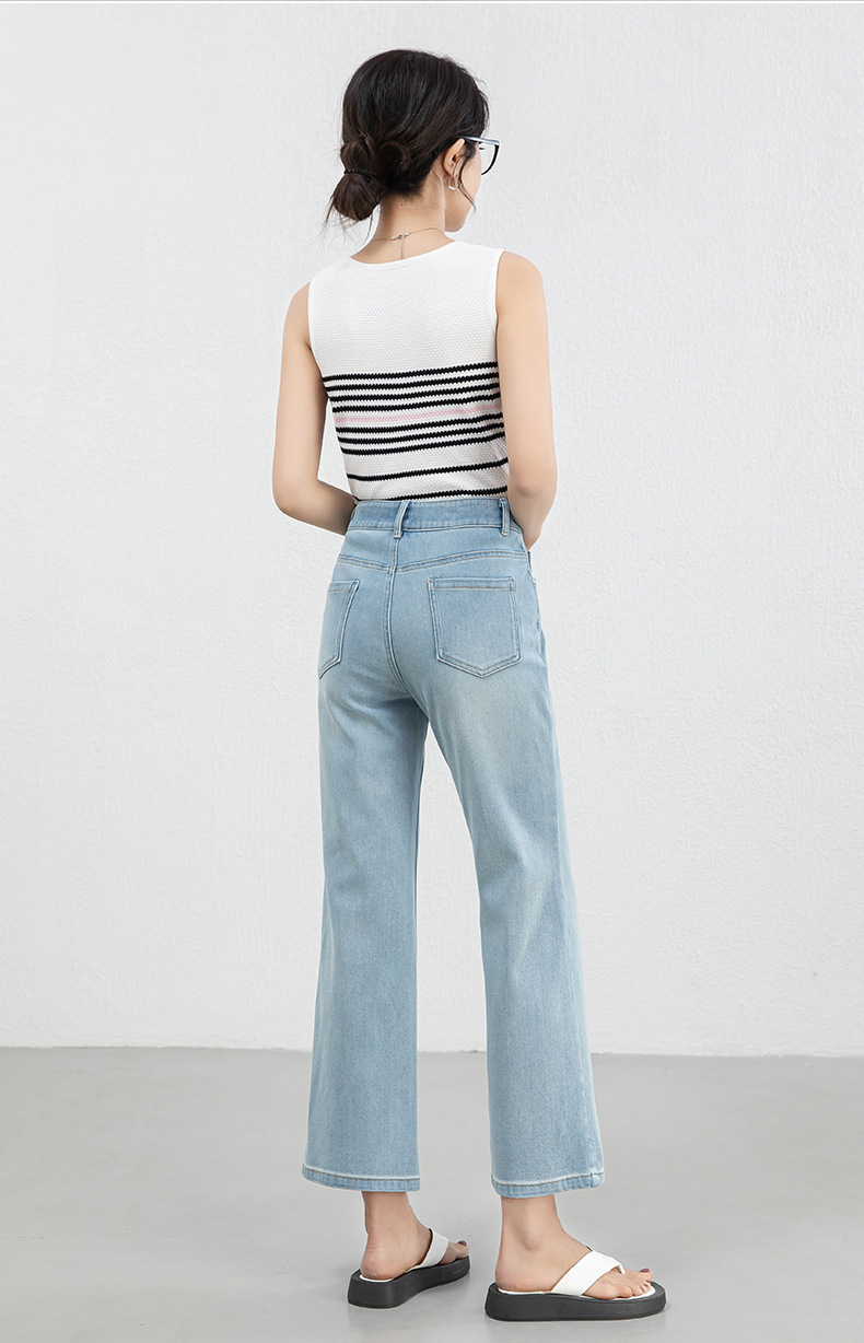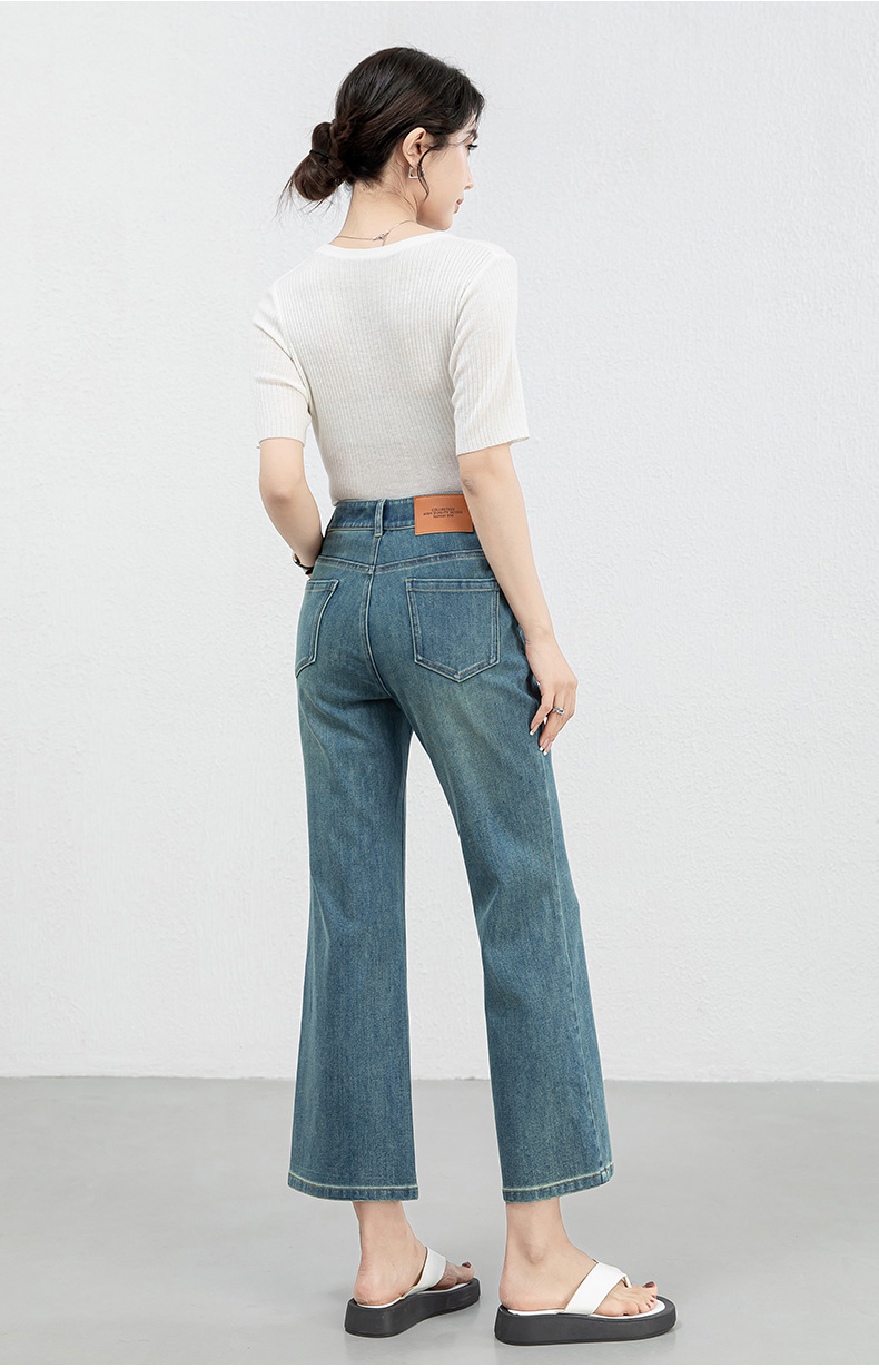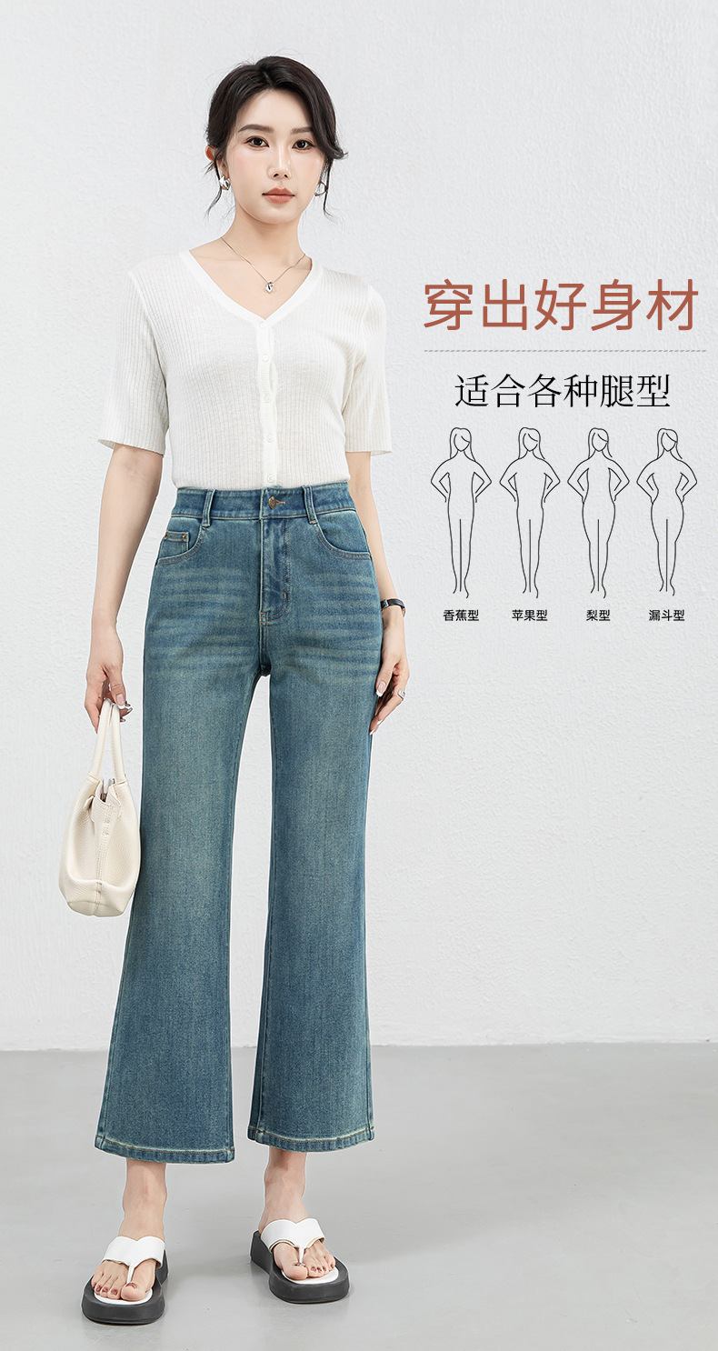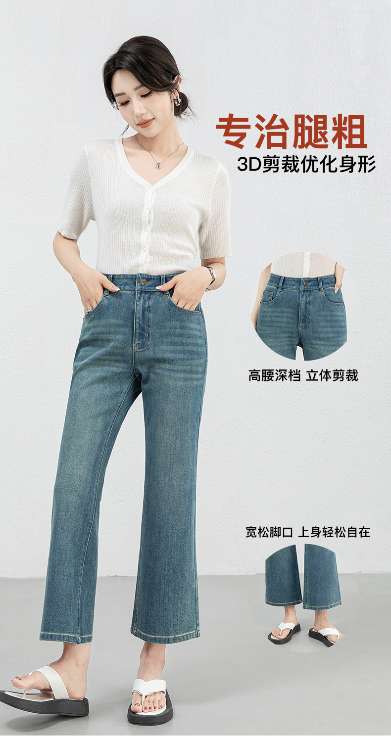「高货rg」全新升级【铂金会员183/天猫239/差价56】(12528)洛诗琳高腰牛仔微喇九分裤2025夏季新款四面弹修身喇叭裤