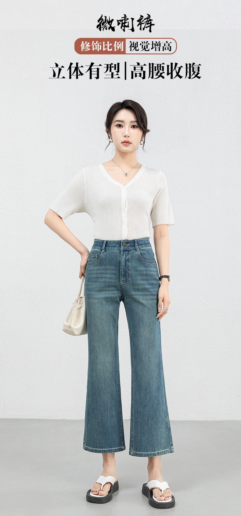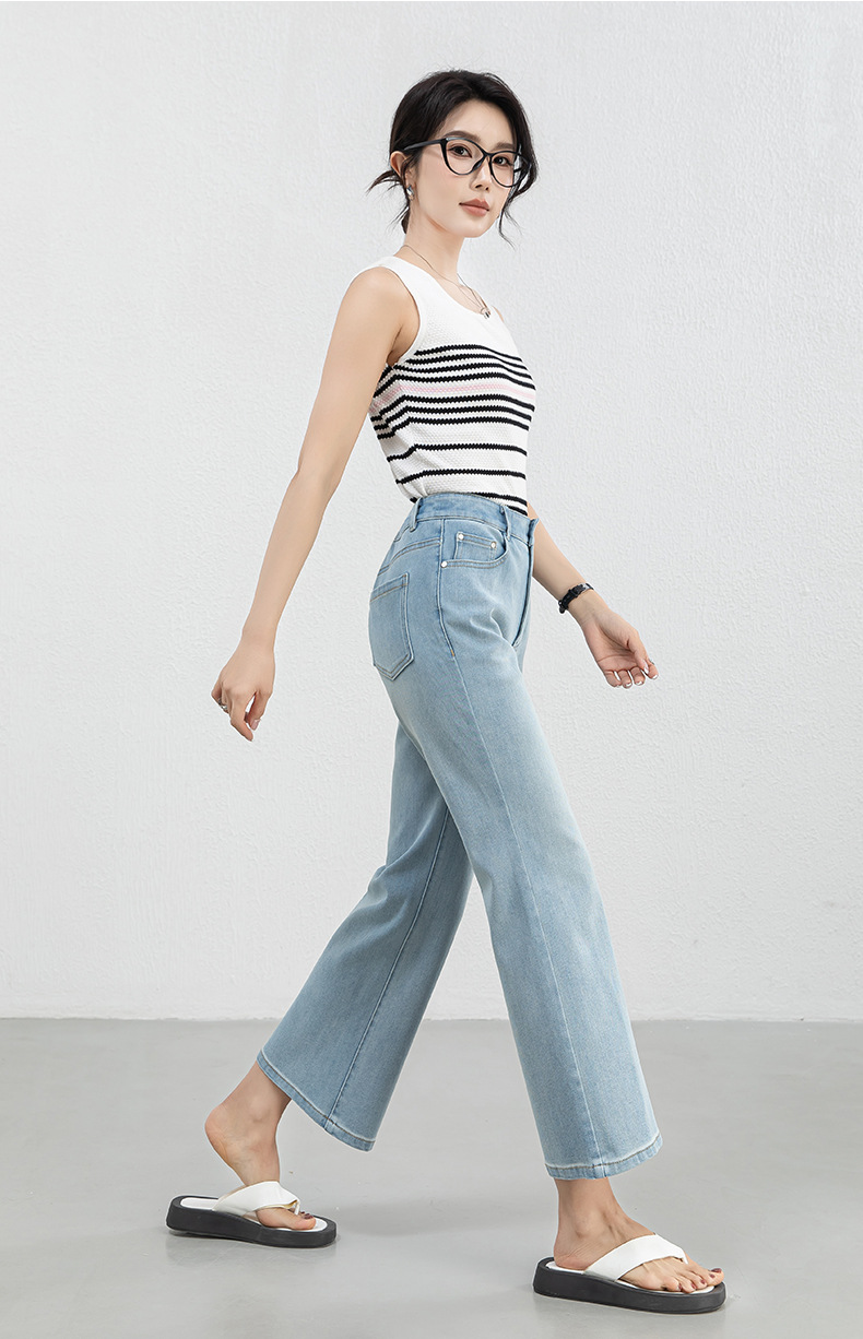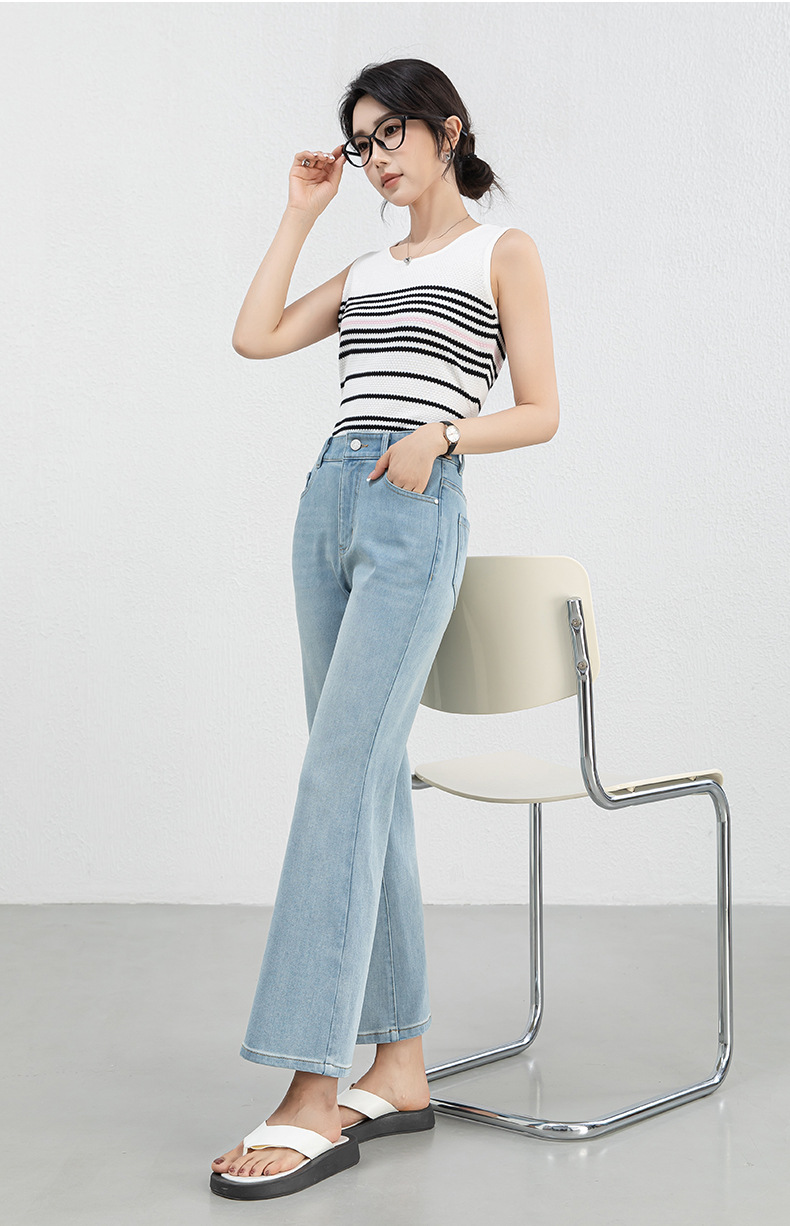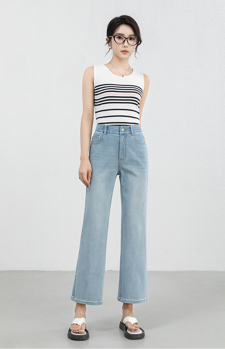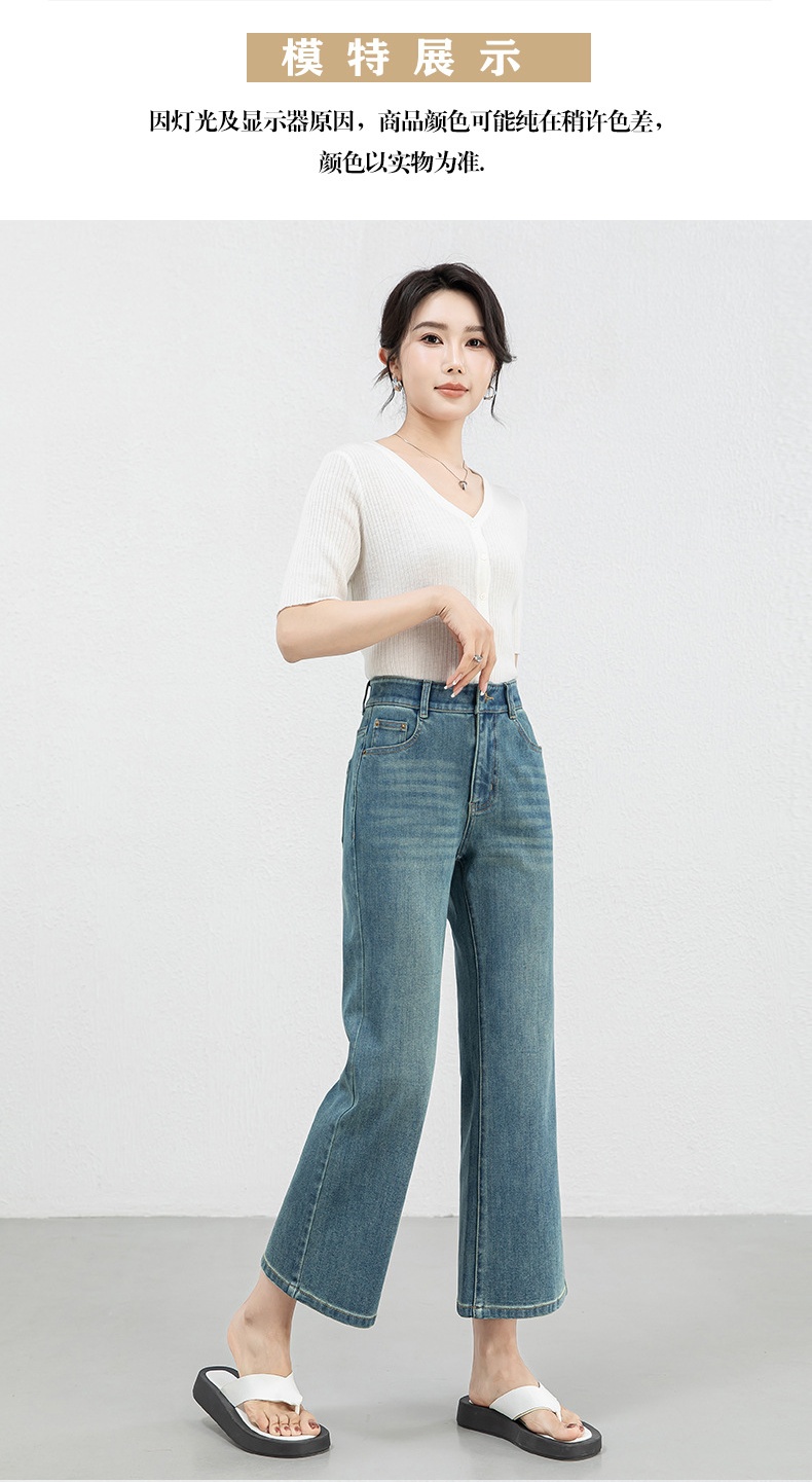 「高货rg」全新升级【铂金会员183/天猫239/差价56】(12528)洛诗琳高腰牛仔微喇九分裤2025夏季新款四面弹修身喇叭裤