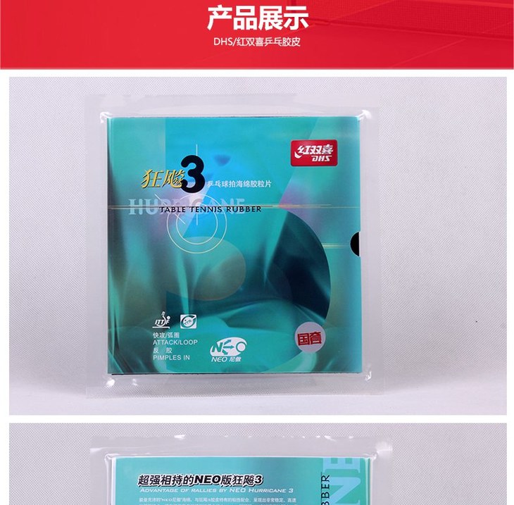 DHS红双喜NEO无机蓝海绵国套狂飚3尼奥狂飙3反胶套胶