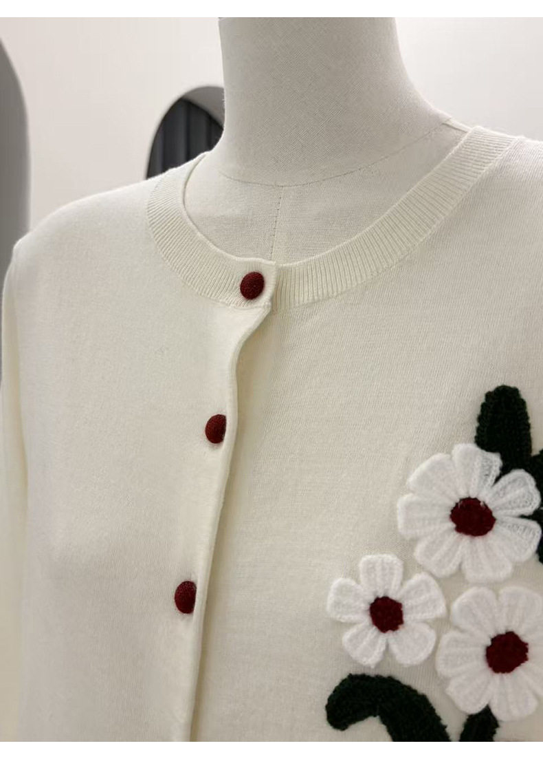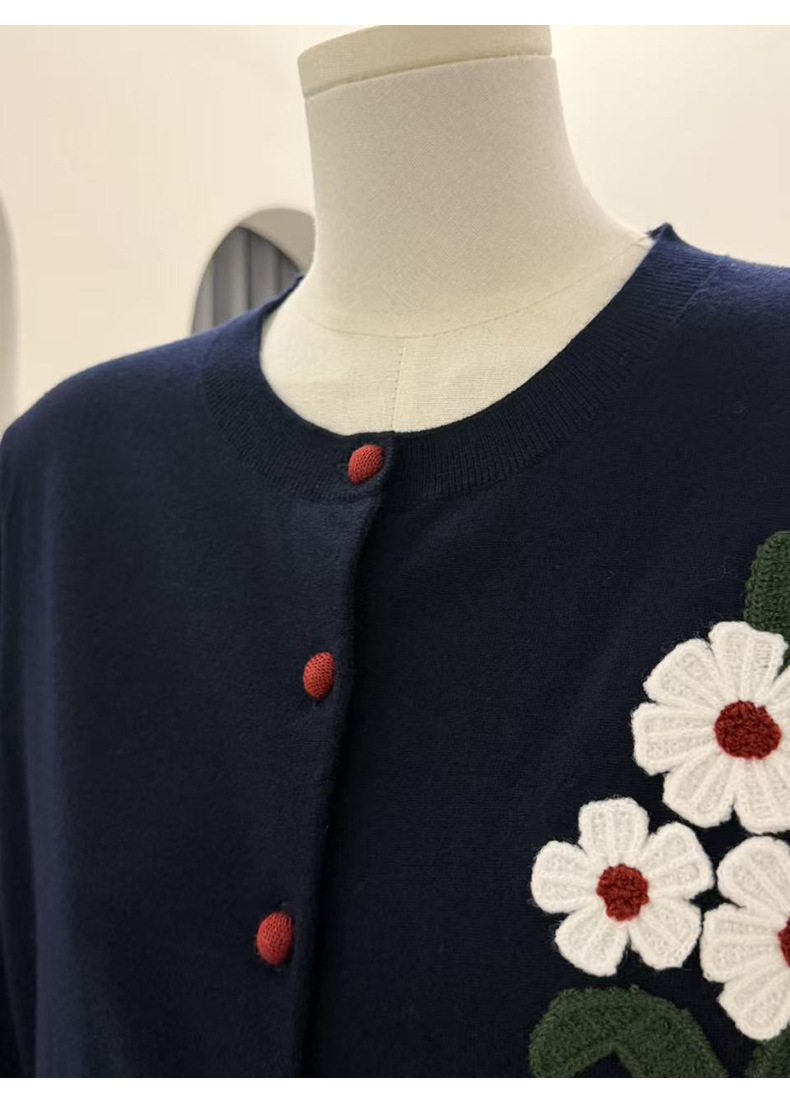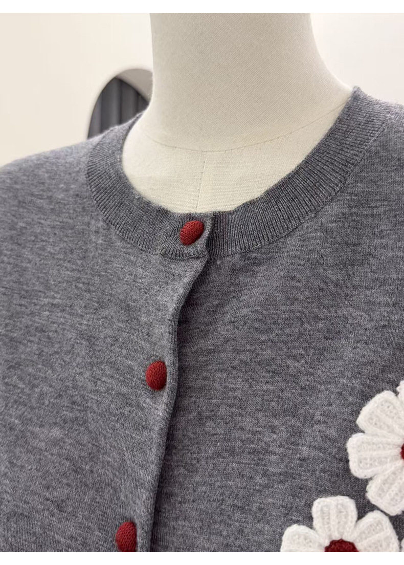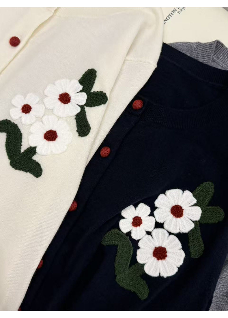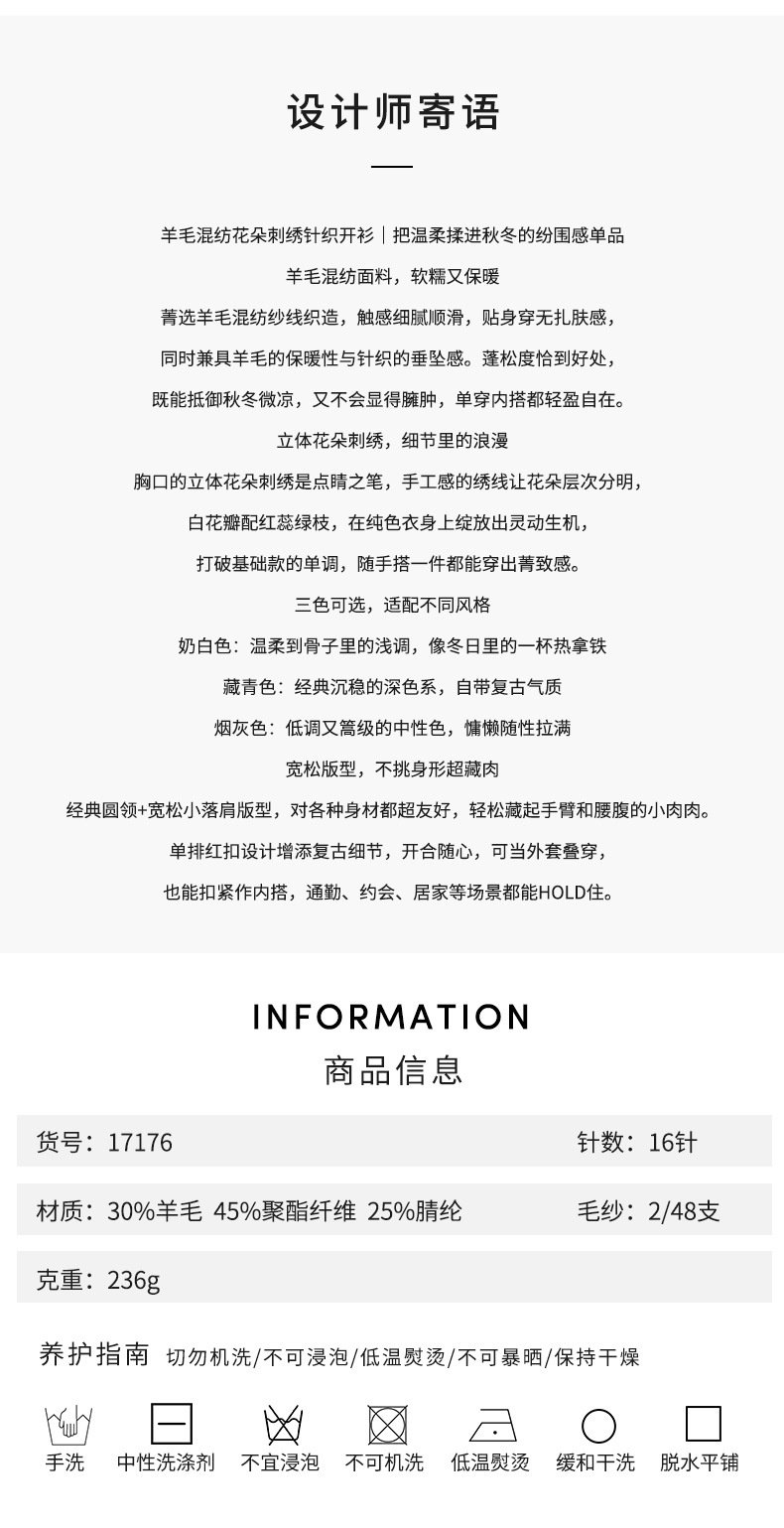 「高货rp」全新升级【铂金会员257/天猫349/差价92】(43135)洛诗琳立体花朵针织开衫2026年春季新款圆领精纺羊毛开衫