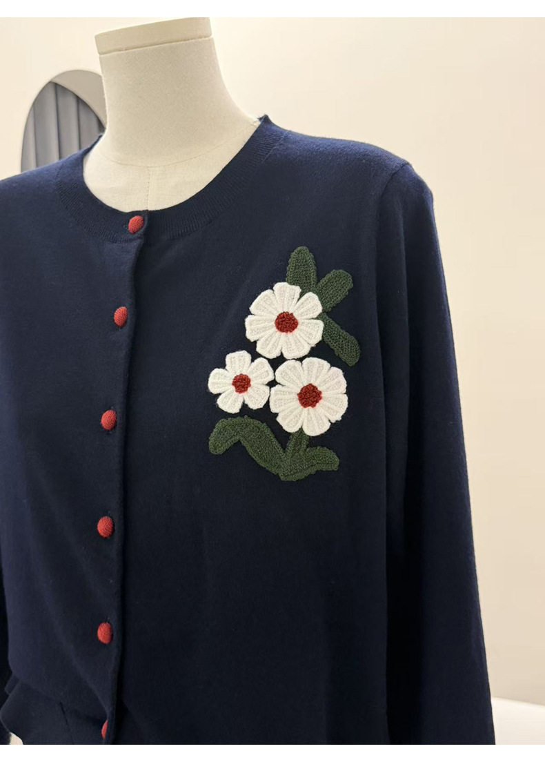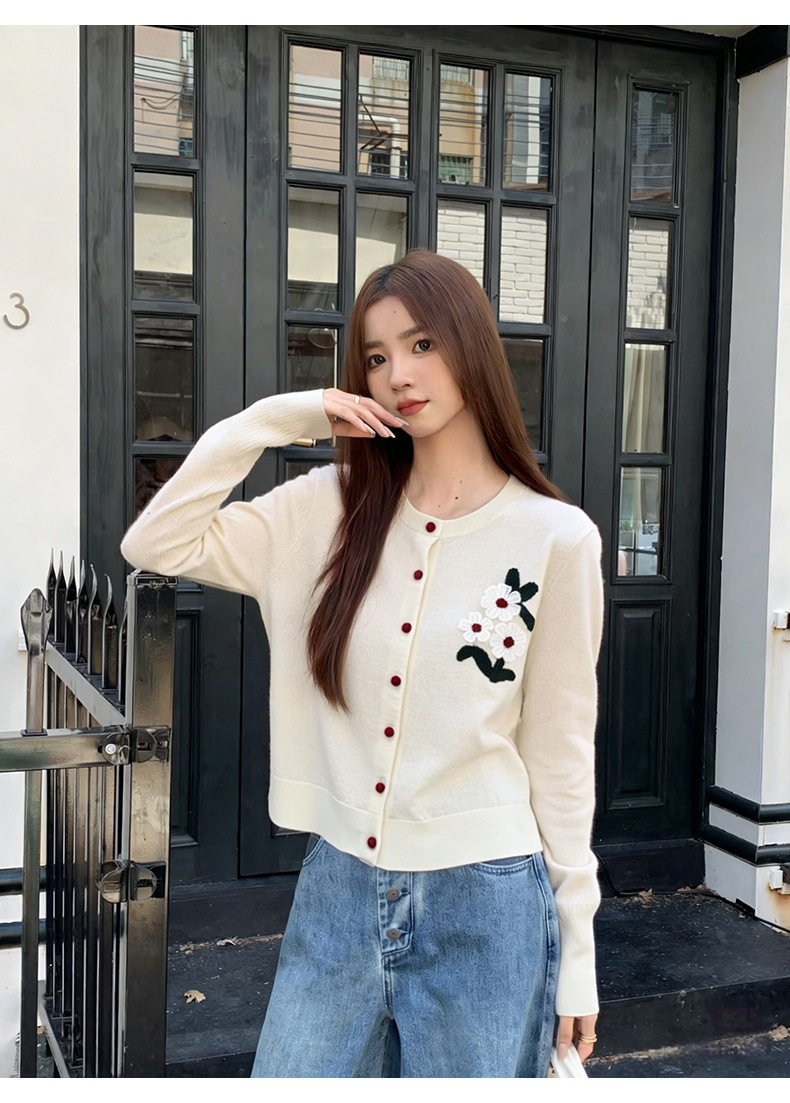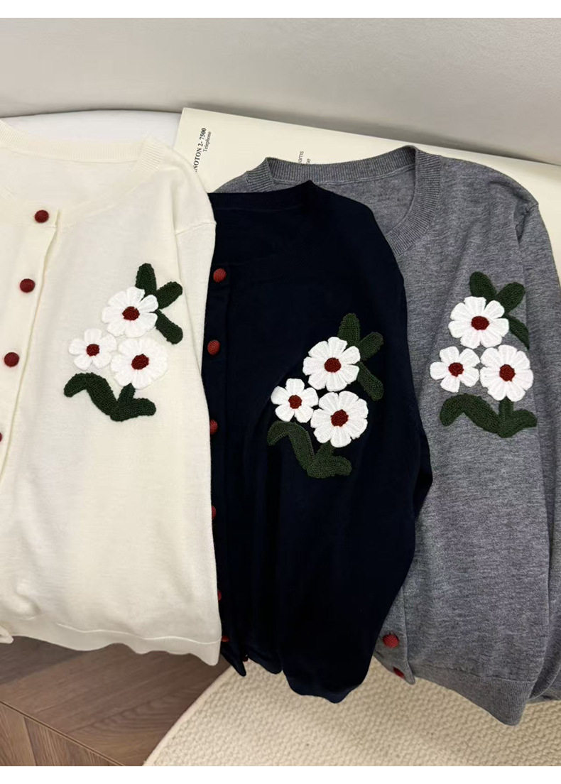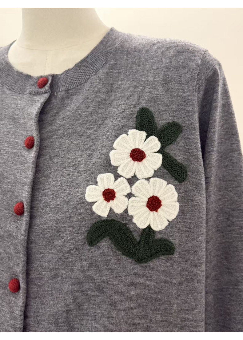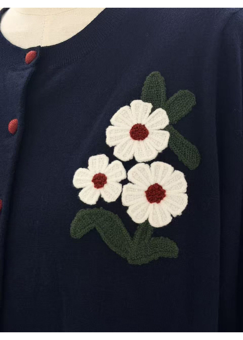 「高货rp」全新升级【铂金会员257/天猫349/差价92】(43135)洛诗琳立体花朵针织开衫2026年春季新款圆领精纺羊毛开衫