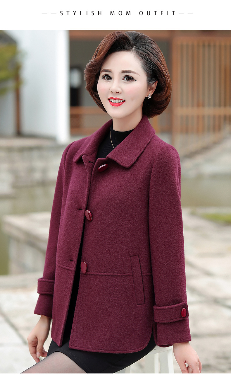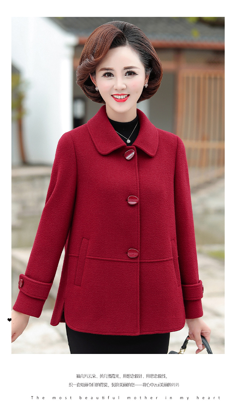 QYzz4051妈妈秋装毛呢外套短款洋气时尚2024新款中老年人女装春秋呢子上衣