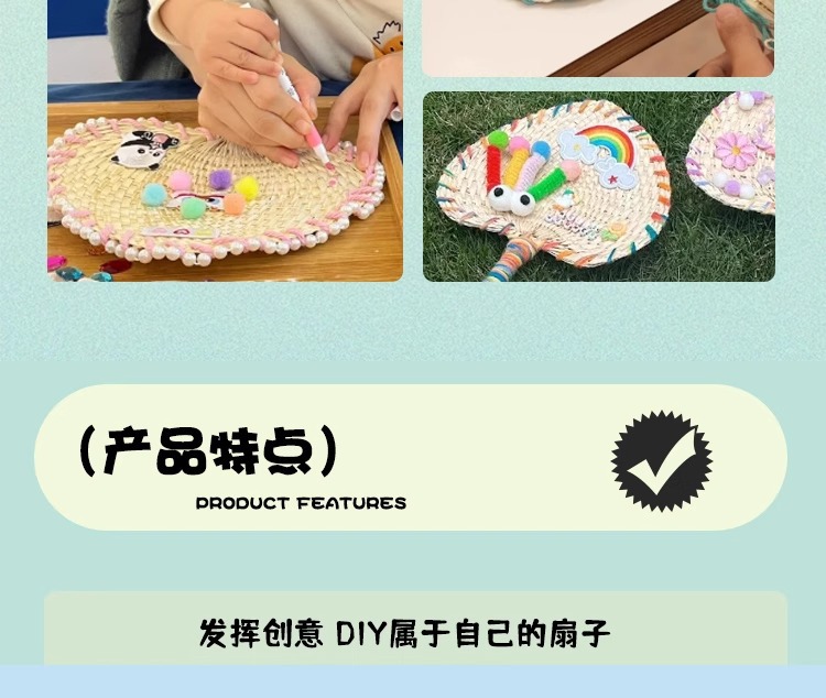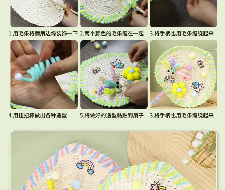 儿童节手工蒲扇DIY材料包创意制作手摇扇子编织团建活动沙龙礼物