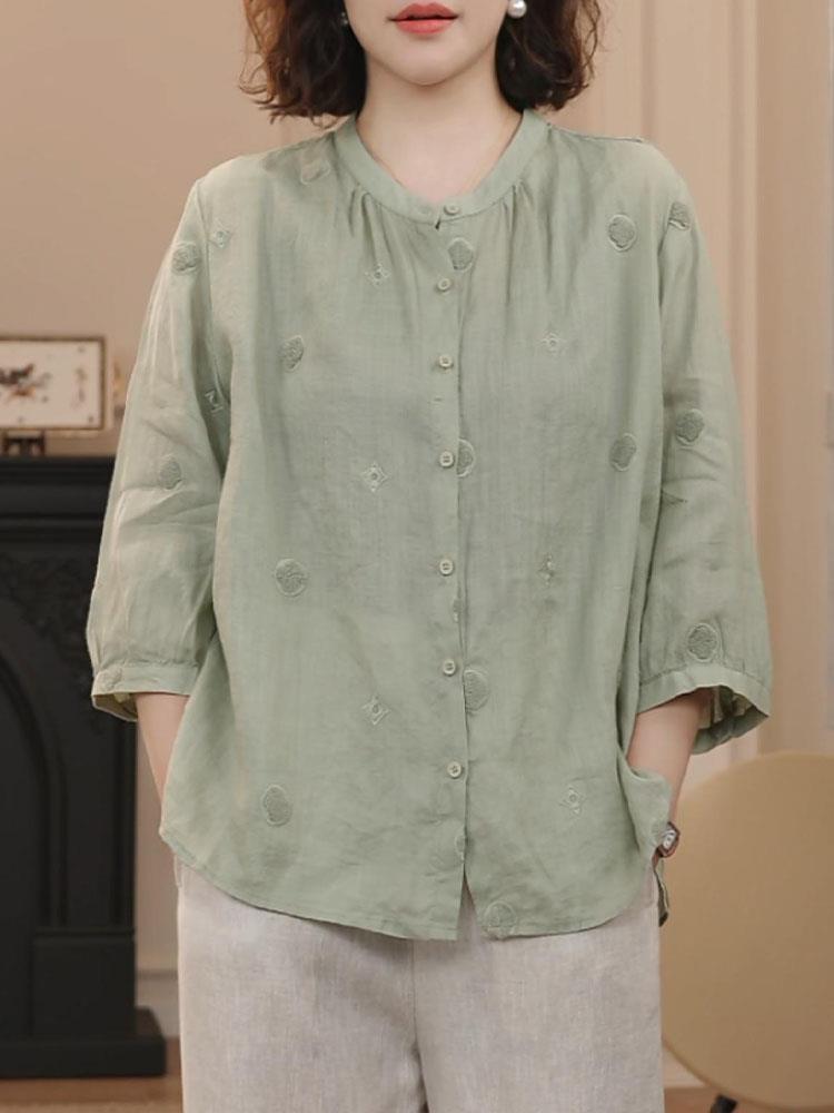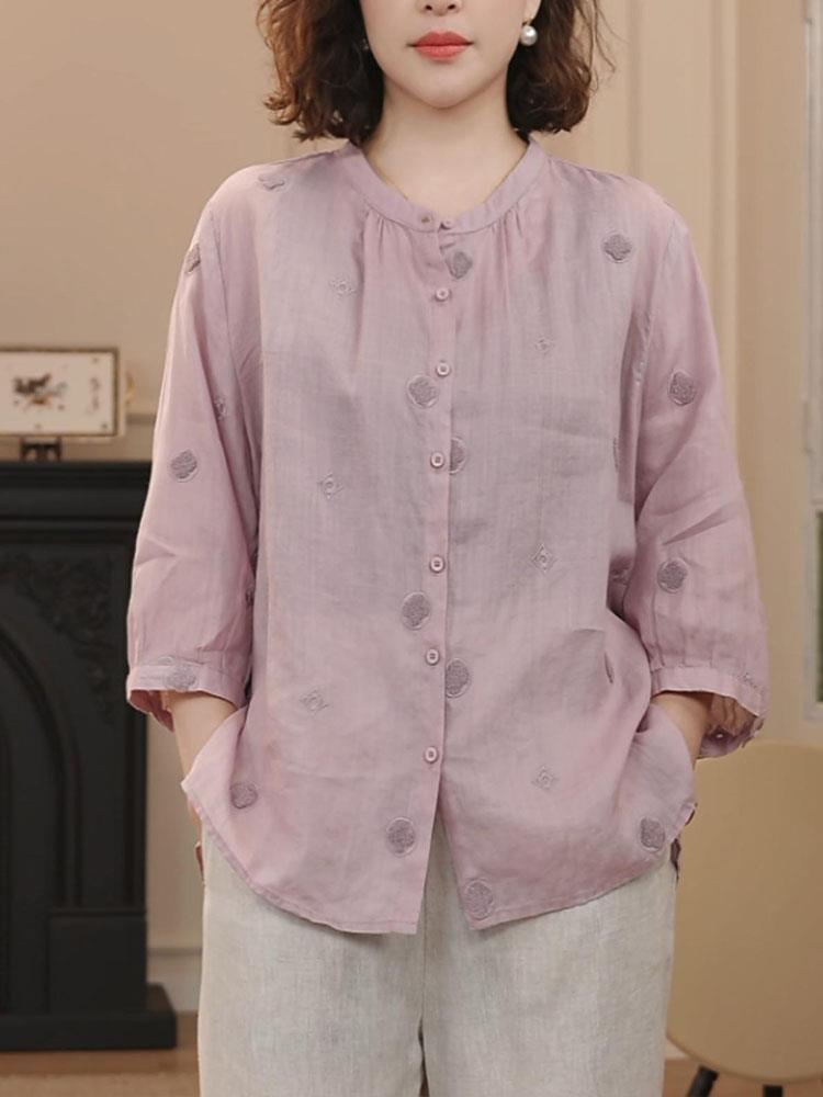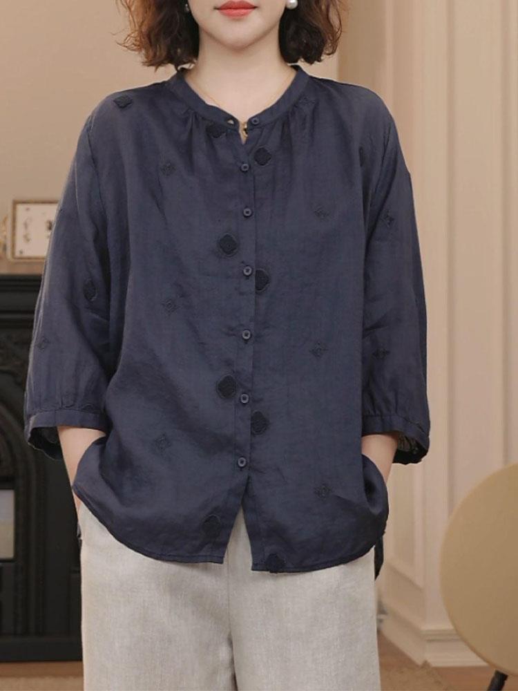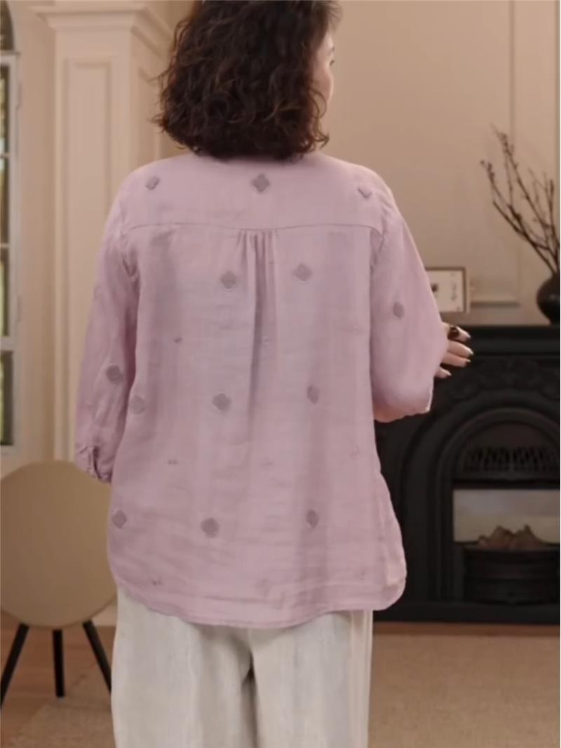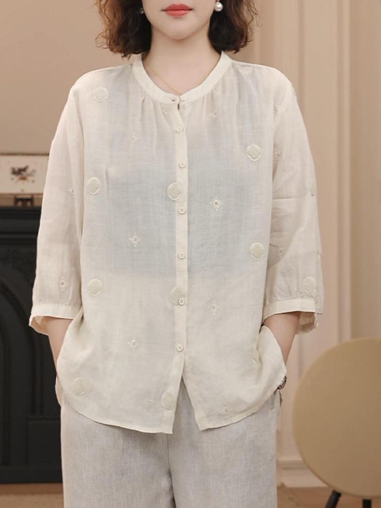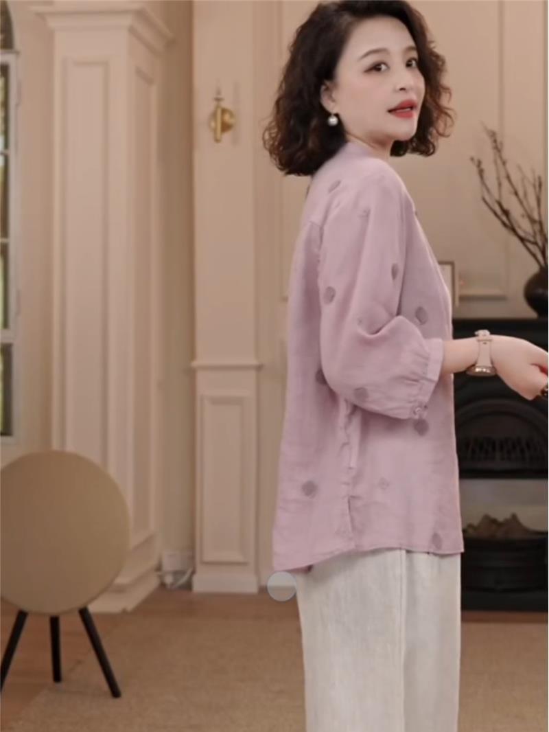 NP08341 中年妈妈夏装天丝棉麻七分袖衬衫中老年女装春装洋气小衫透气上衣