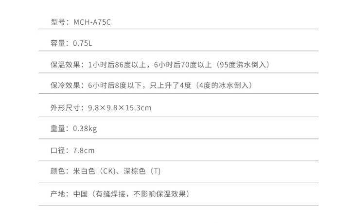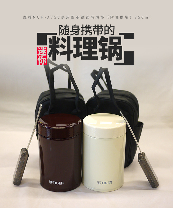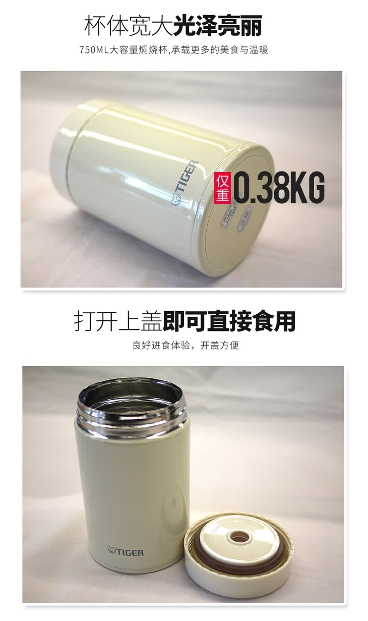 TIGER/虎牌 闷烧罐MCH-A75C保温水杯750ML焖粥盛汤吃饭便携日式