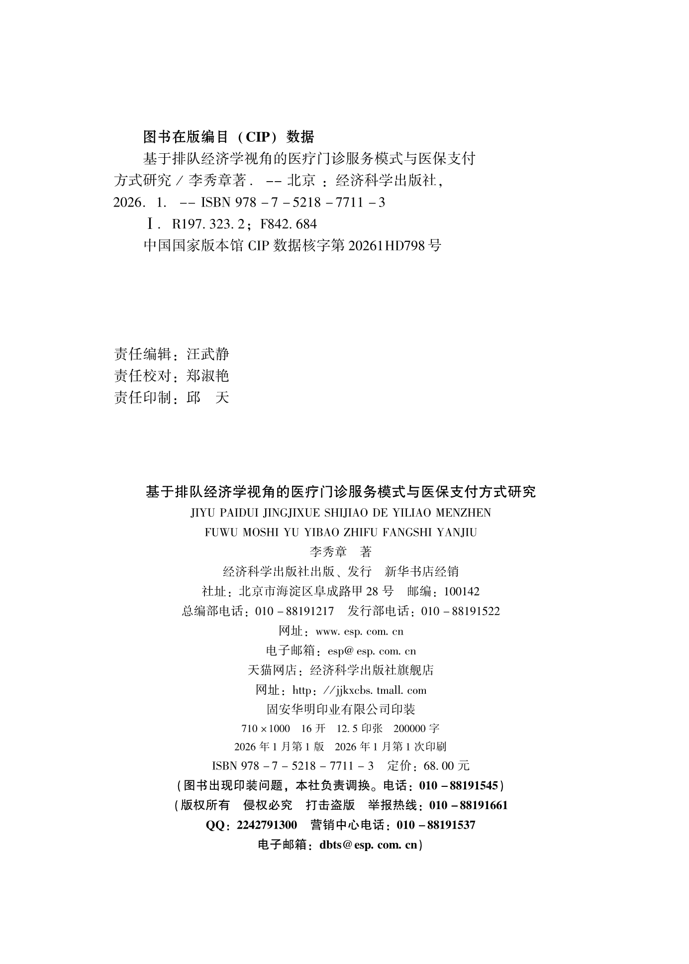 基于排队经济学视角的医疗门诊服务模式与医保支付方式研究
