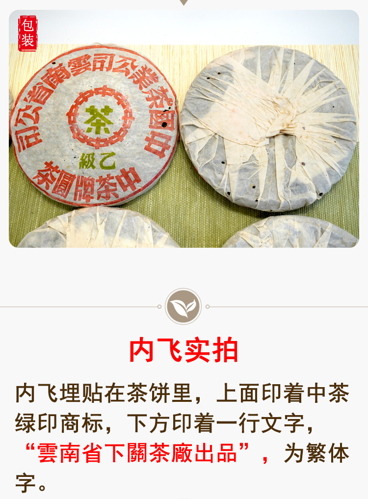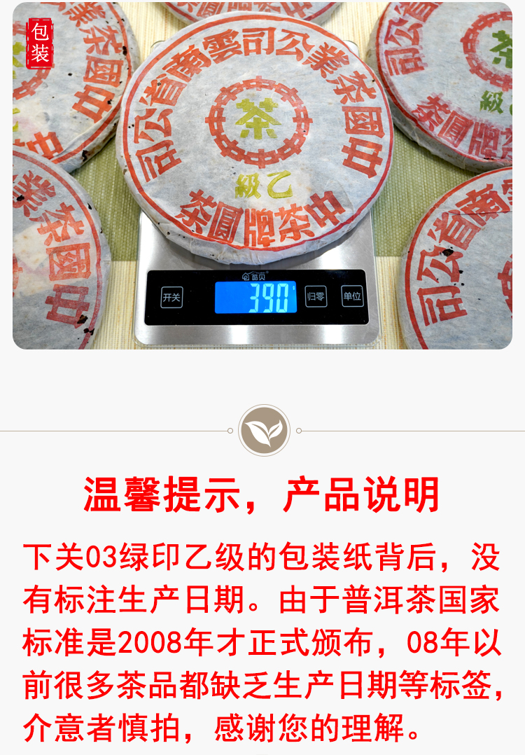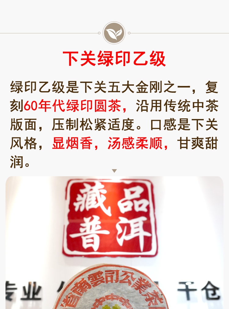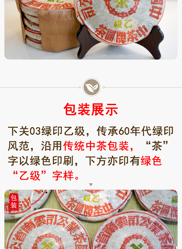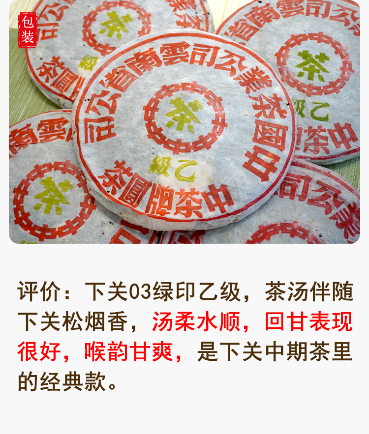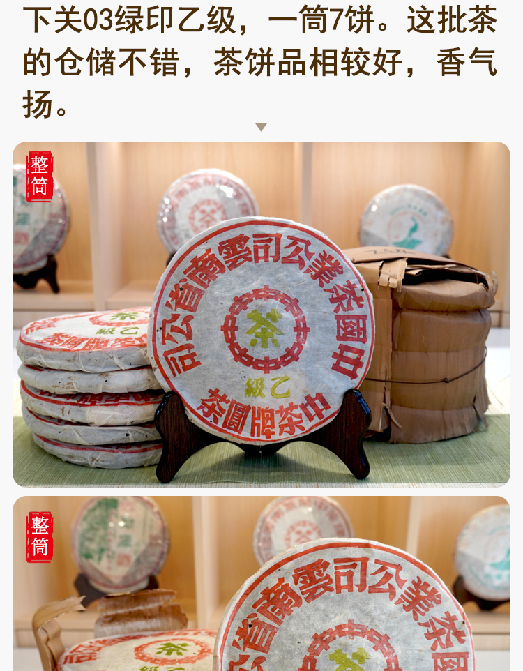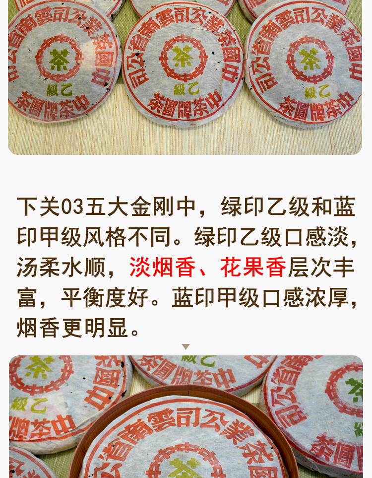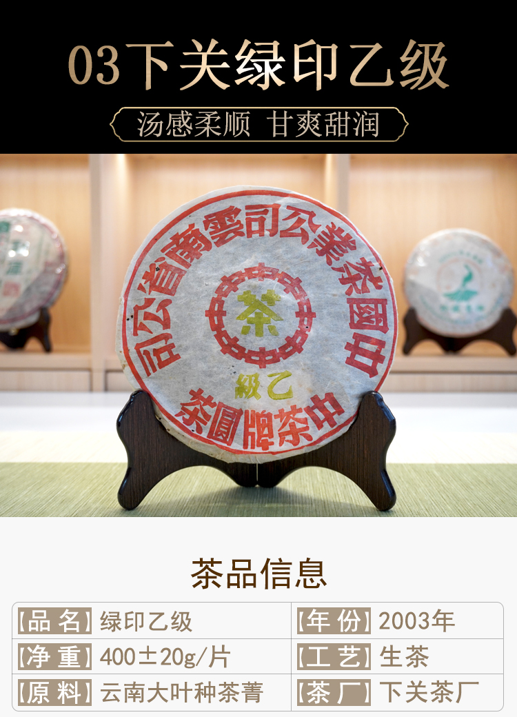 2003年下关五大金刚之乙级绿印 经典普洱老生茶 干仓真品 五大金刚系列经典茶