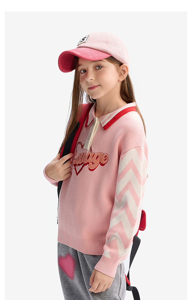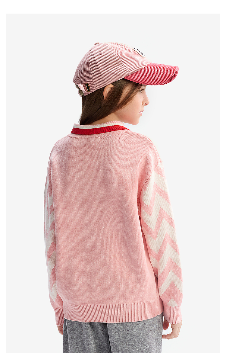 【秒】【MQD】童装女童毛衣针织衫冬季新款翻领条纹儿童学院风上衣线衫