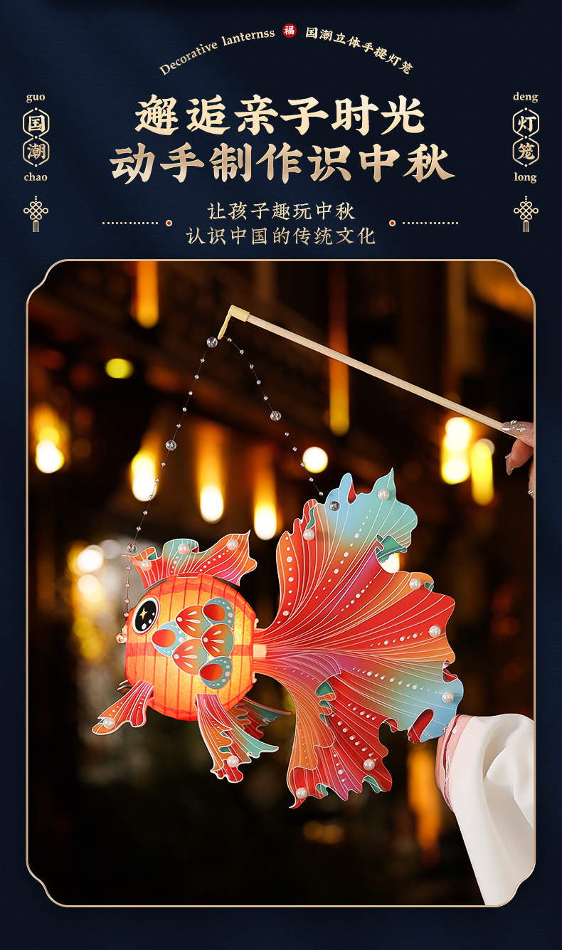 【中秋节金鱼灯笼】新款手工diy材料包 儿童手提锦鲤花灯宫灯挂饰