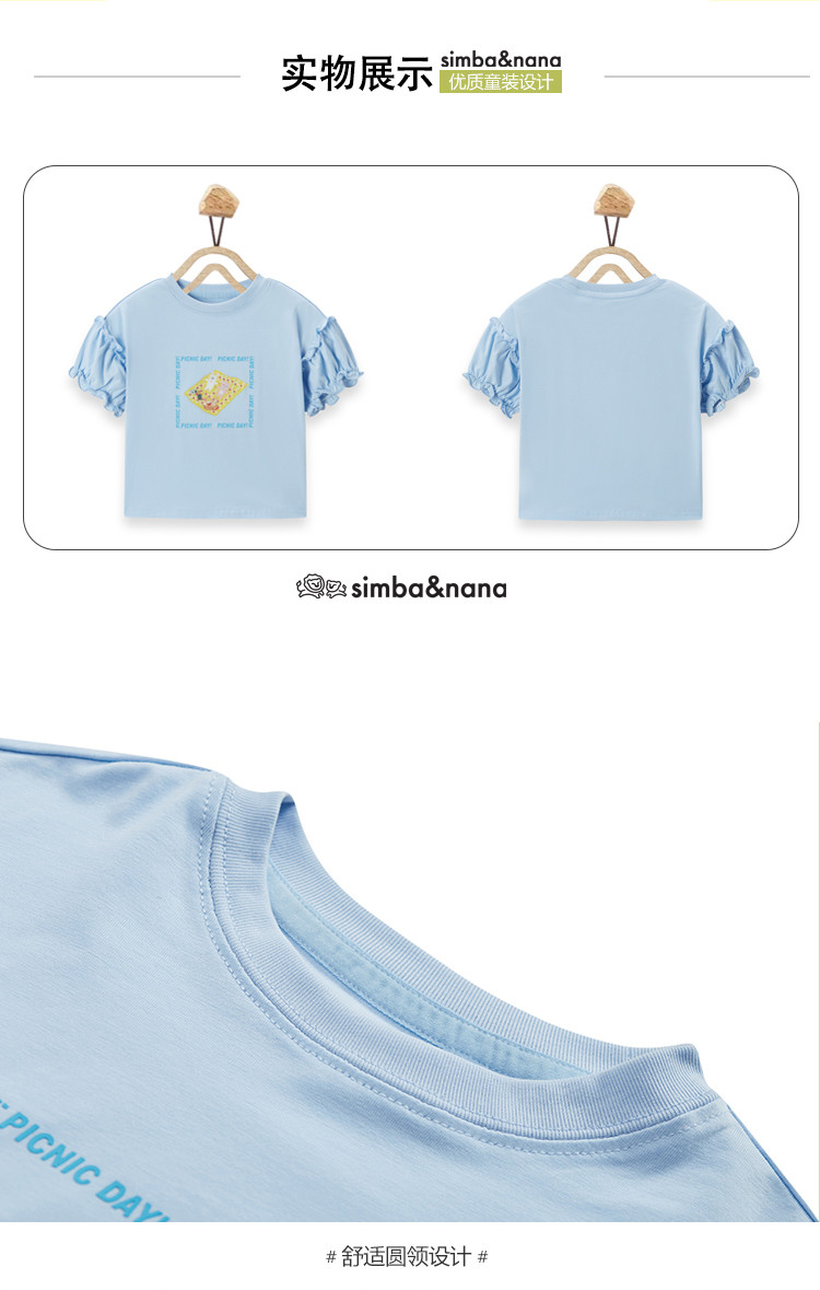 【辛巴娜娜】simbanana女童短袖t恤夏装新款洋气女宝宝纯棉上衣可爱印花体恤