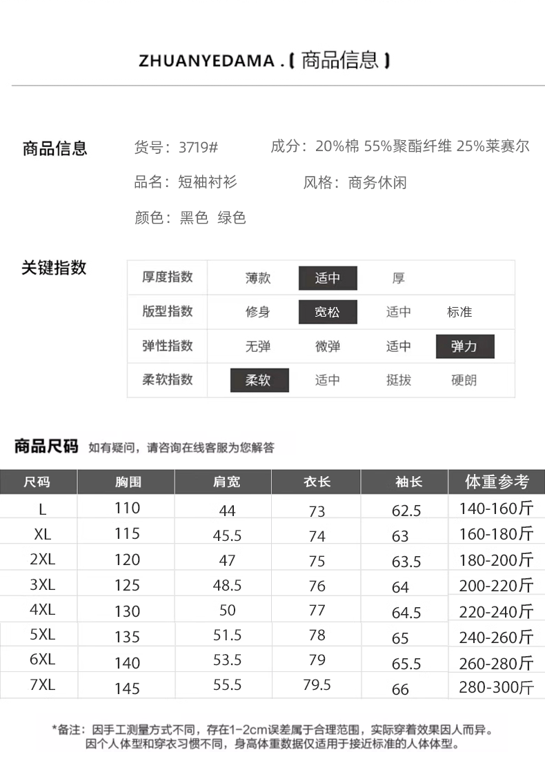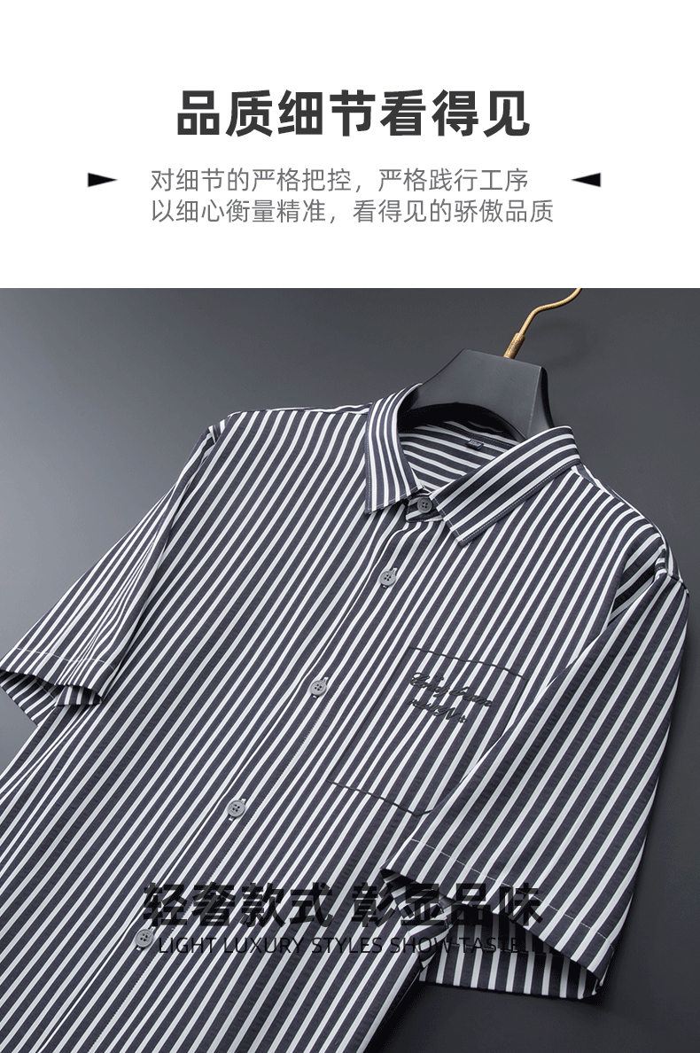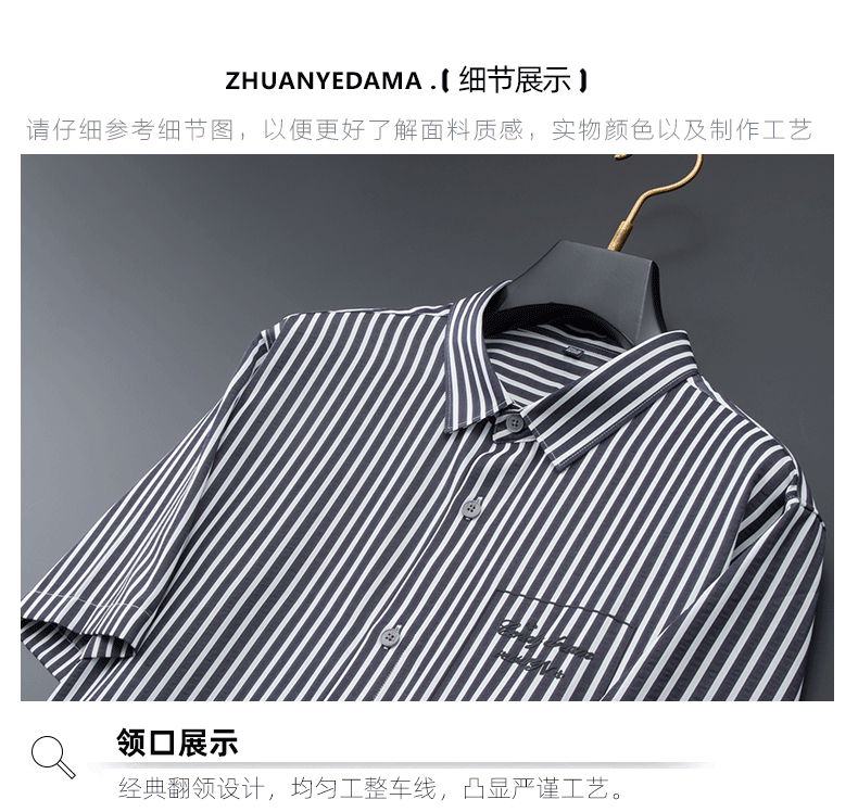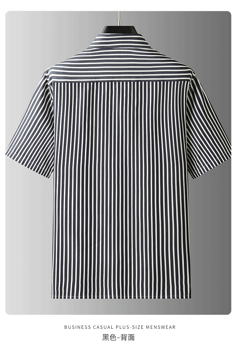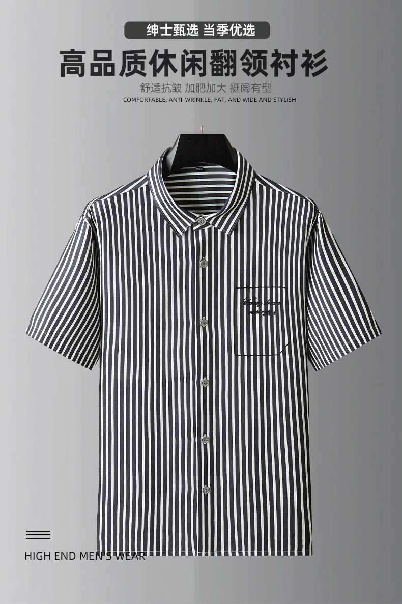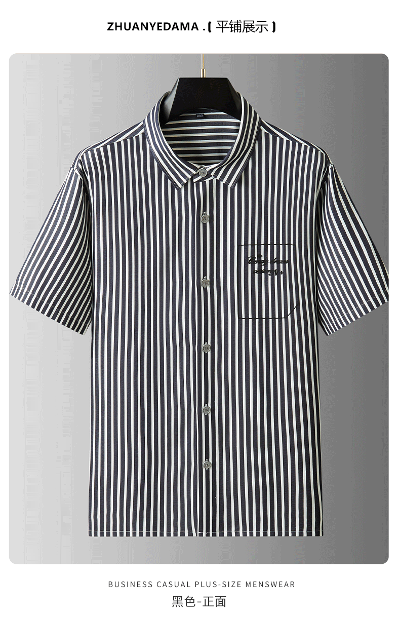 【棉质+莱赛尔】【DDA】大依优型大码竖条纹短袖衬衫翻领衬衣商务休闲透气半袖夏季上衣男士