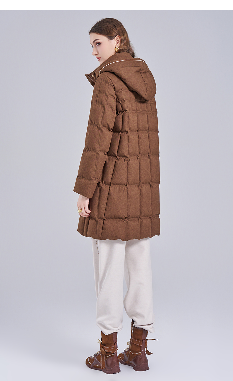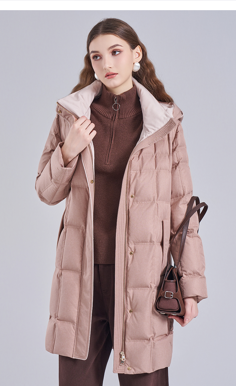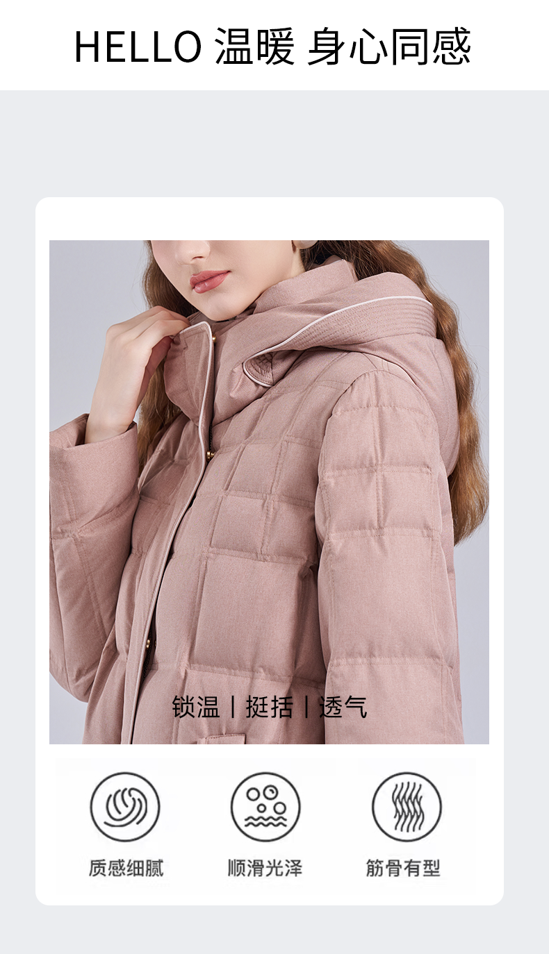 乔万尼2025冬新品连帽休闲面包服保暖白鸭绒中长款羽绒服ED4T766