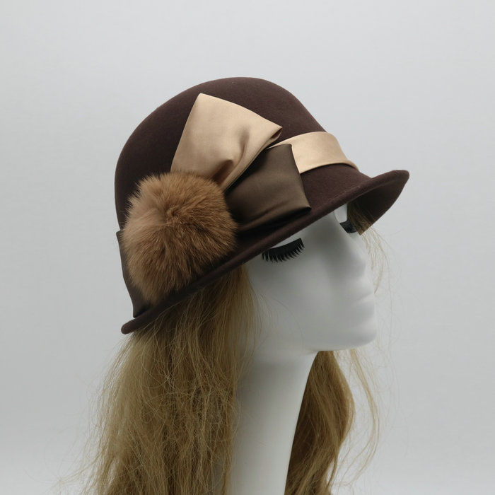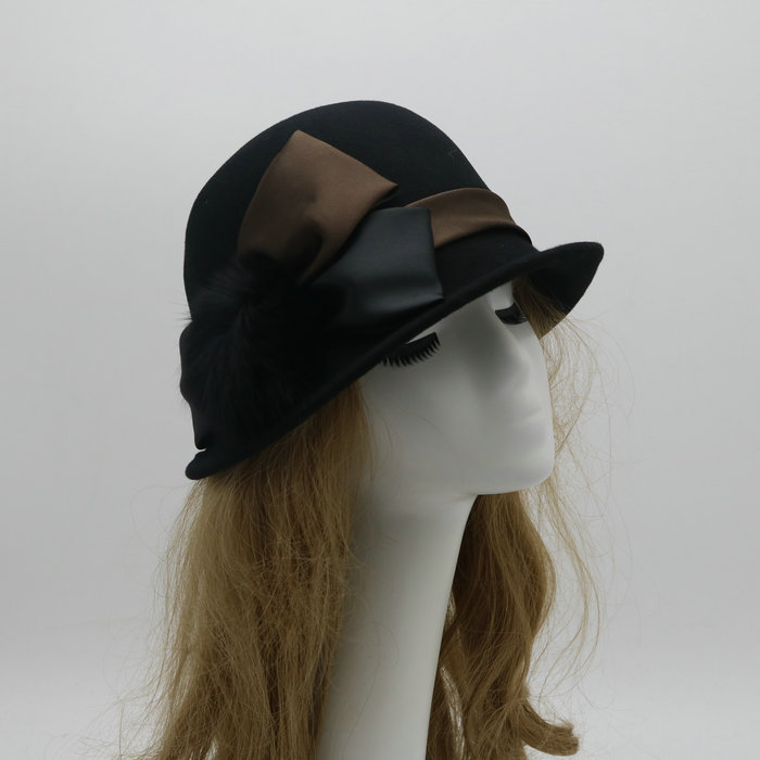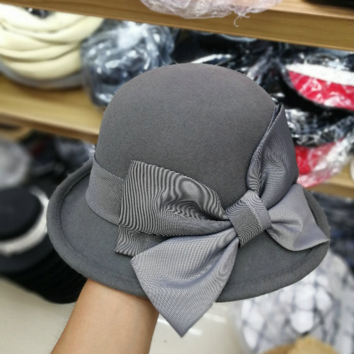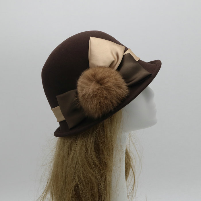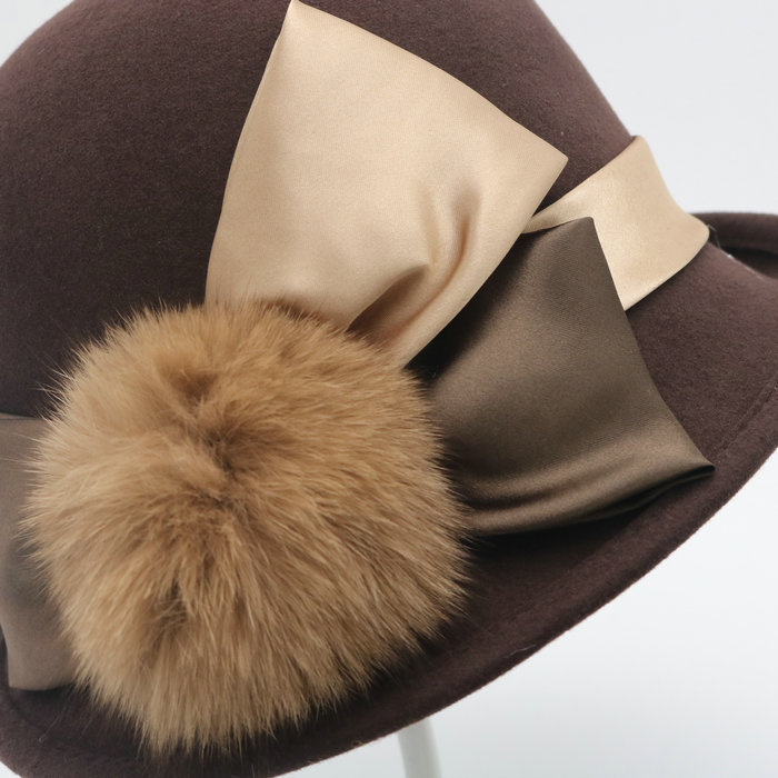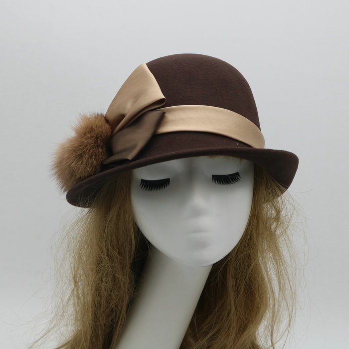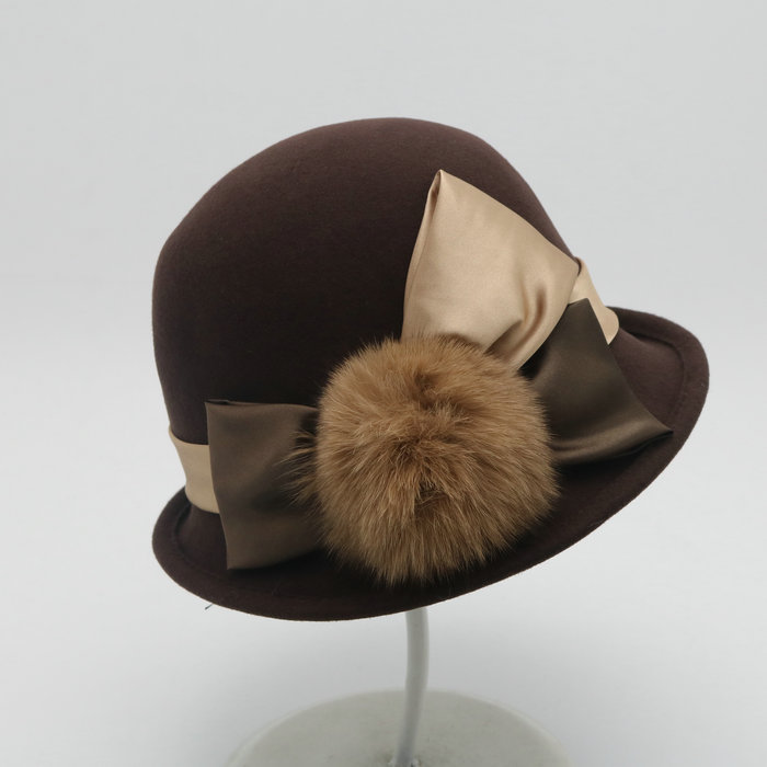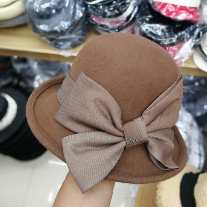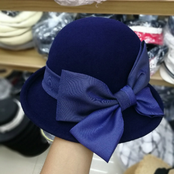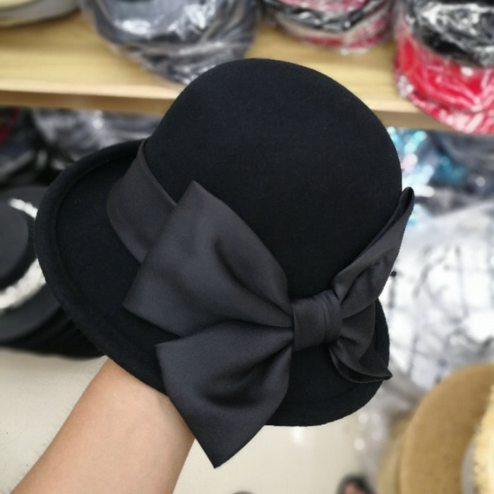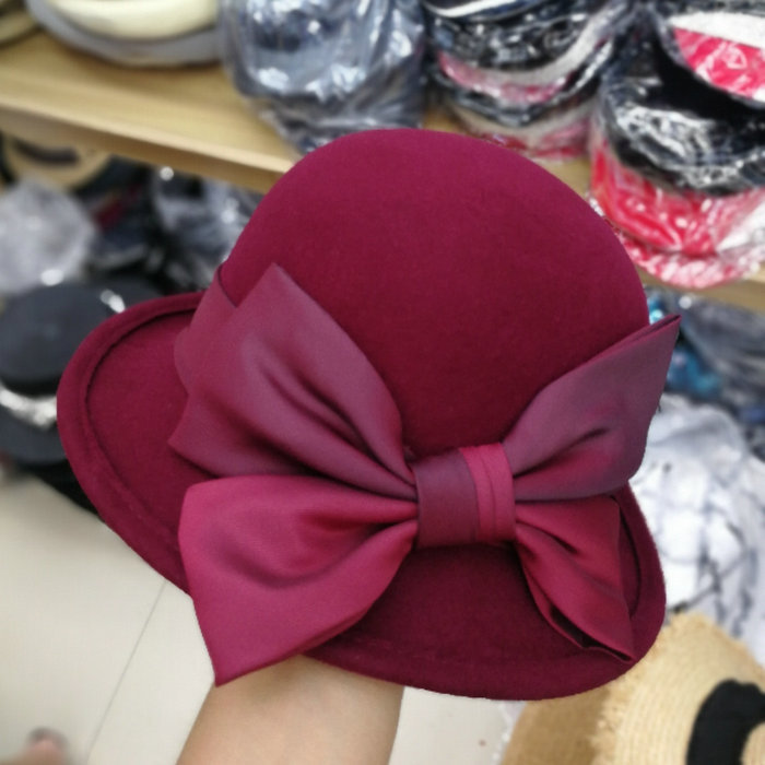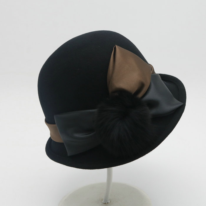 专柜秋冬季羊毛呢女士气质渔夫帽 蝴蝶结毛球遮阳帽宴会帽子青年
