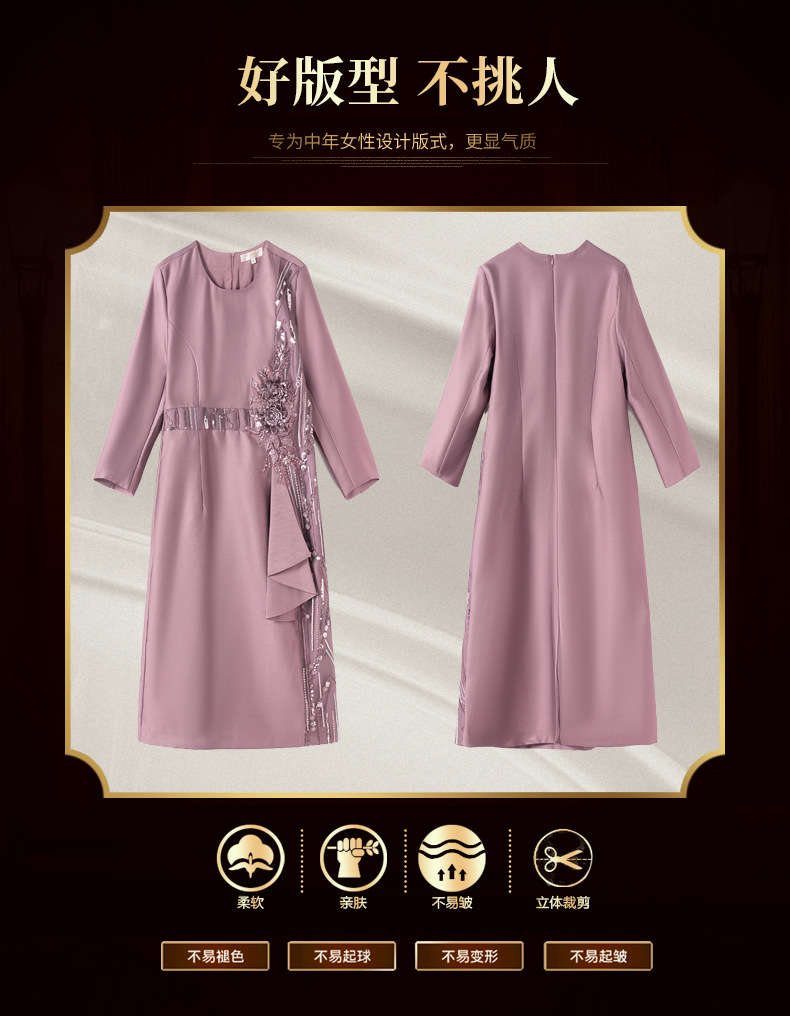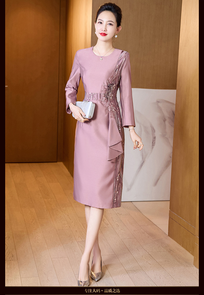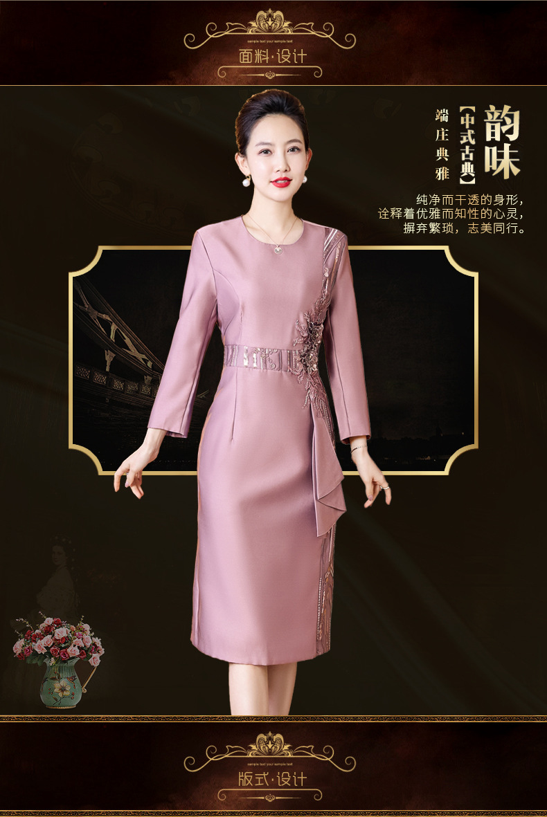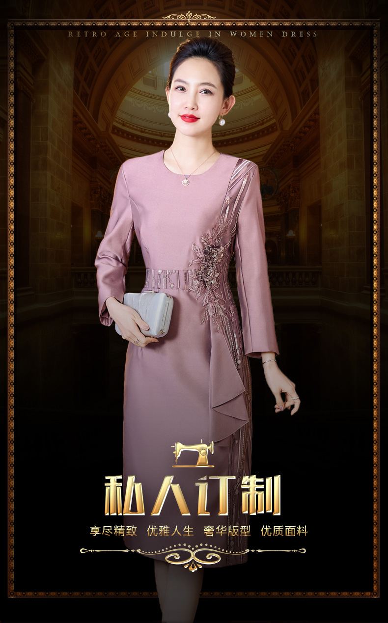 LC-2256秋装新款婚宴礼服喜婆婆高贵优雅礼服气质中长款连衣裙