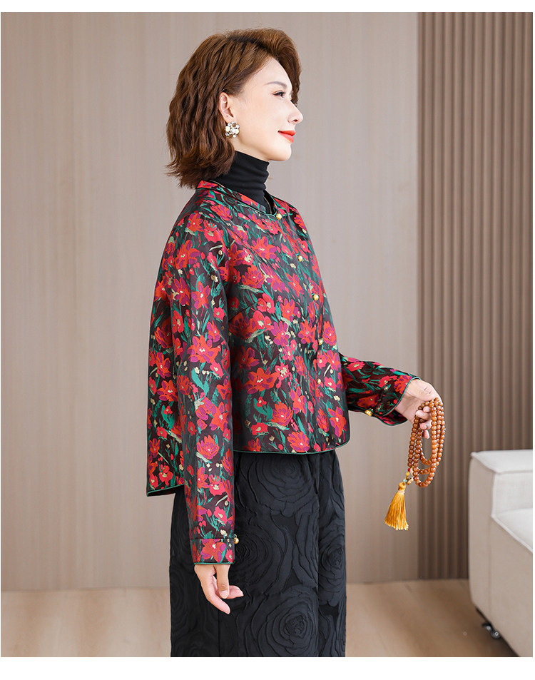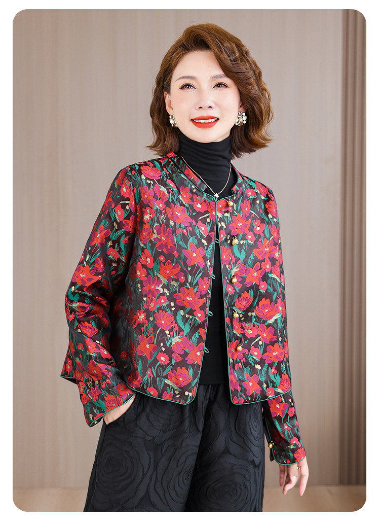 新中式复古改良提花对襟外套女2025秋季香云纱新款短款单排扣上衣