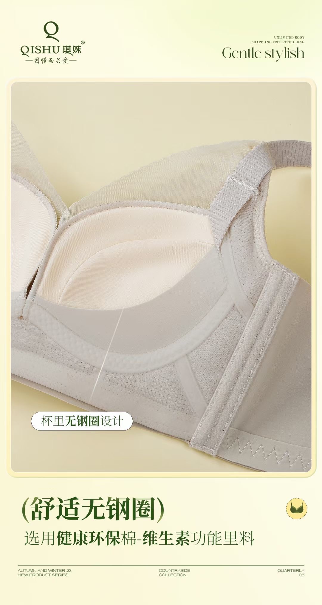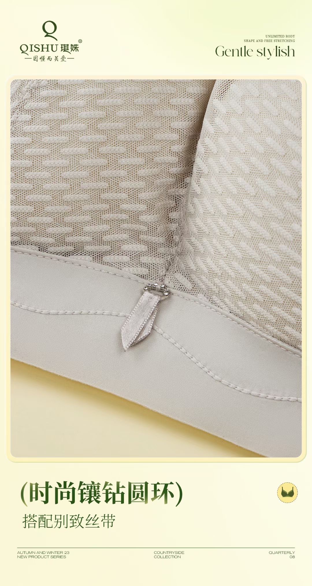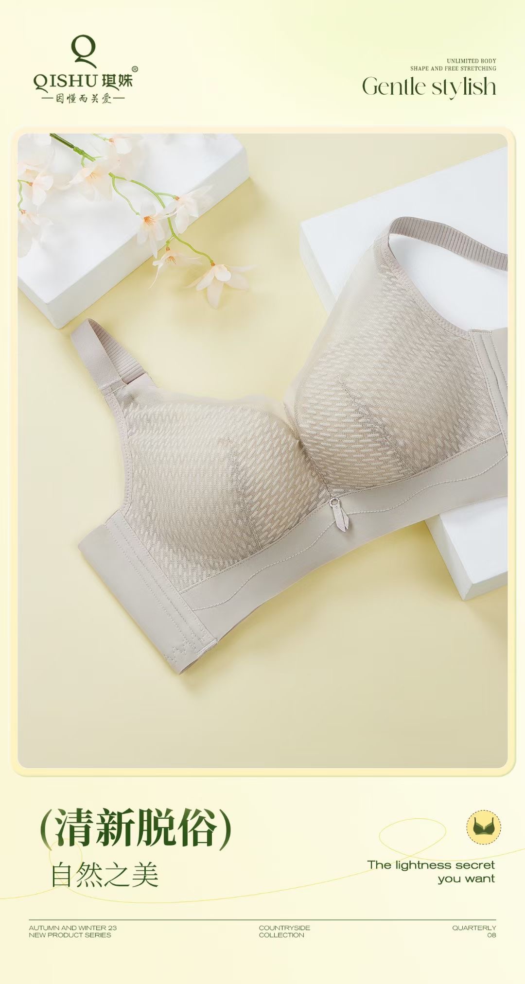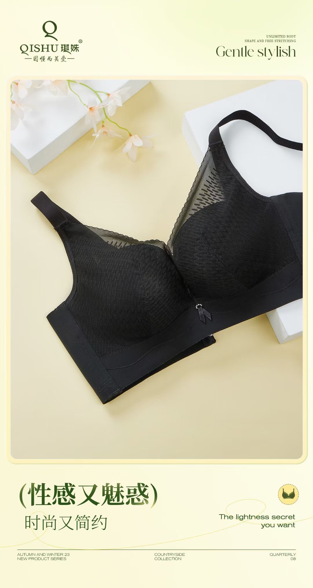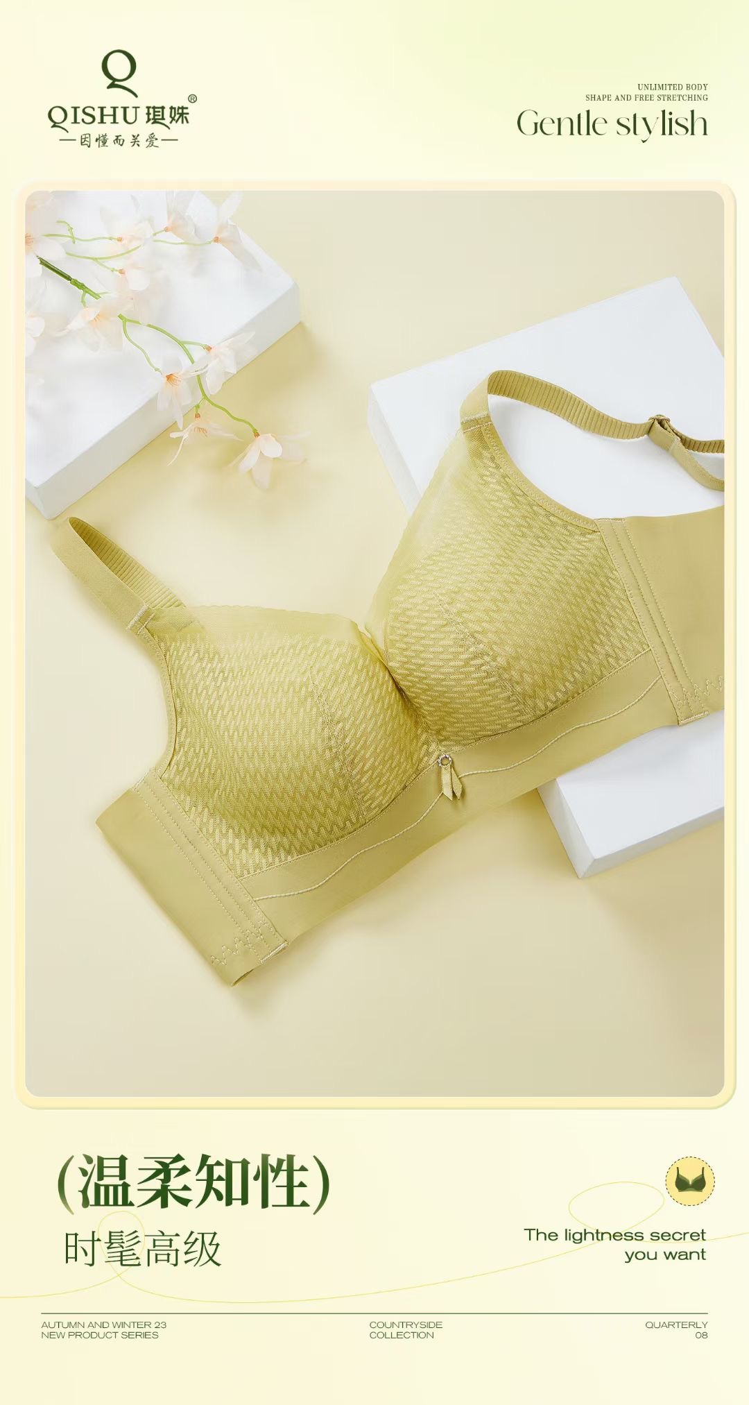 琪姝时尚蕾丝文胸(香草黄)/1件(75码,ABC通杯,适合45-55kg)补单专用