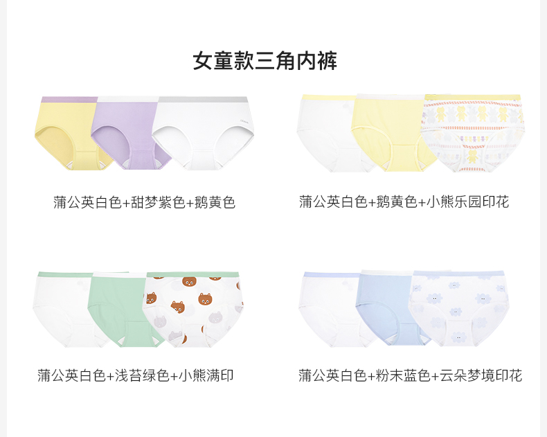 likeuu内裤少女发育期学生内裤入门款男女童三角裤3条装zb