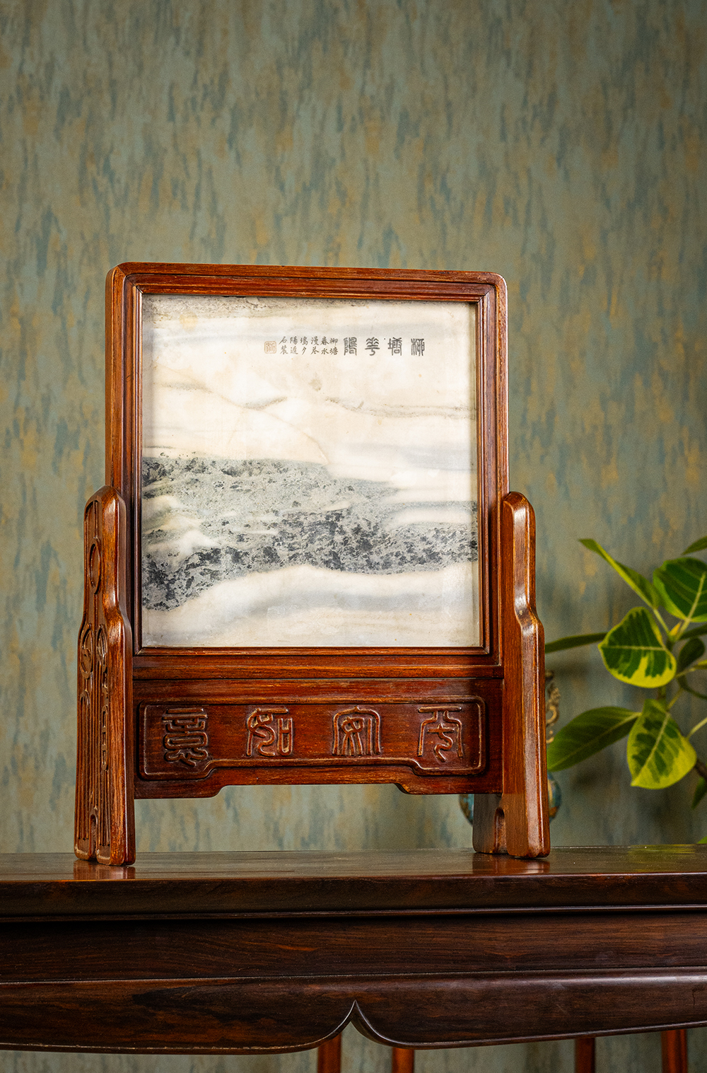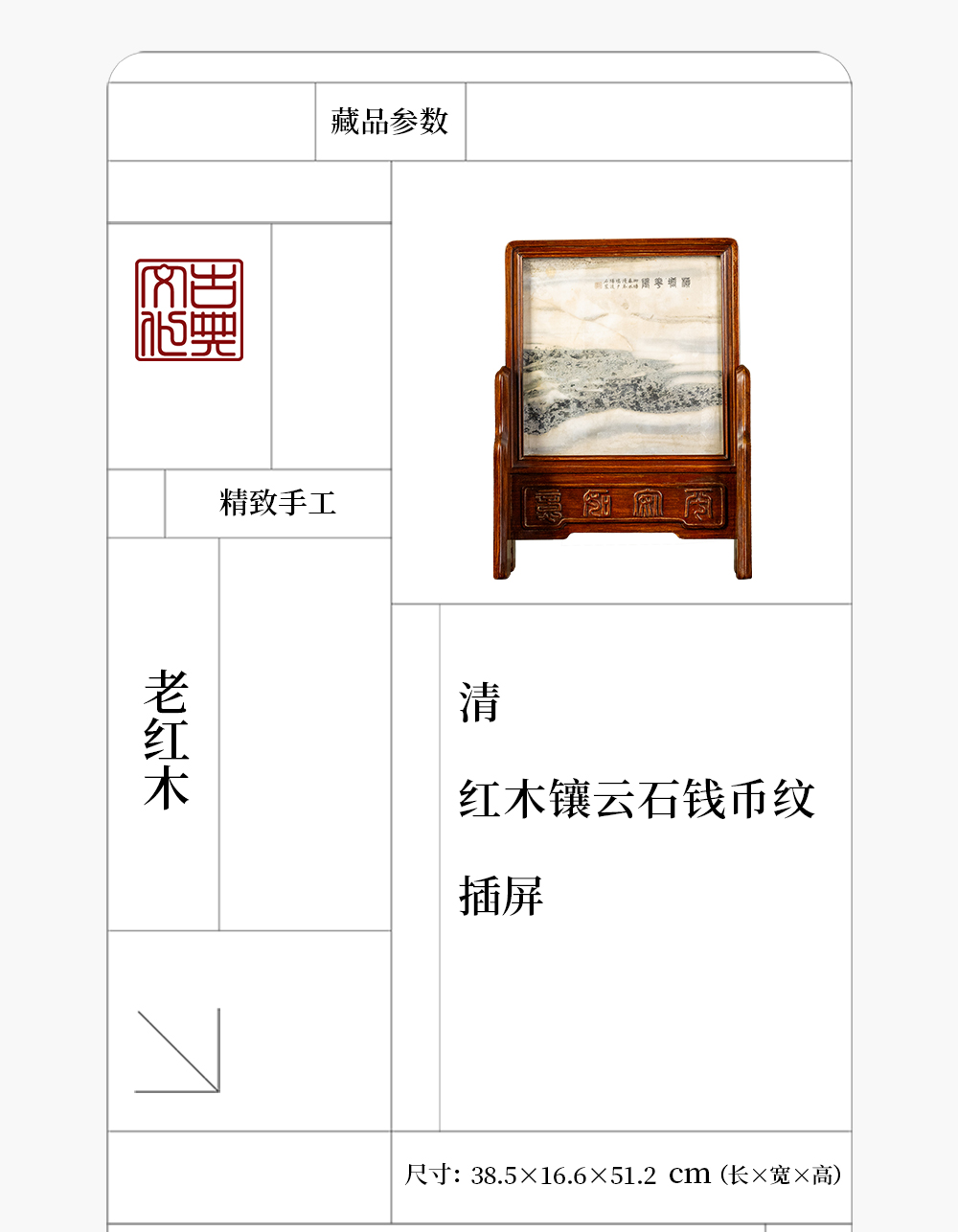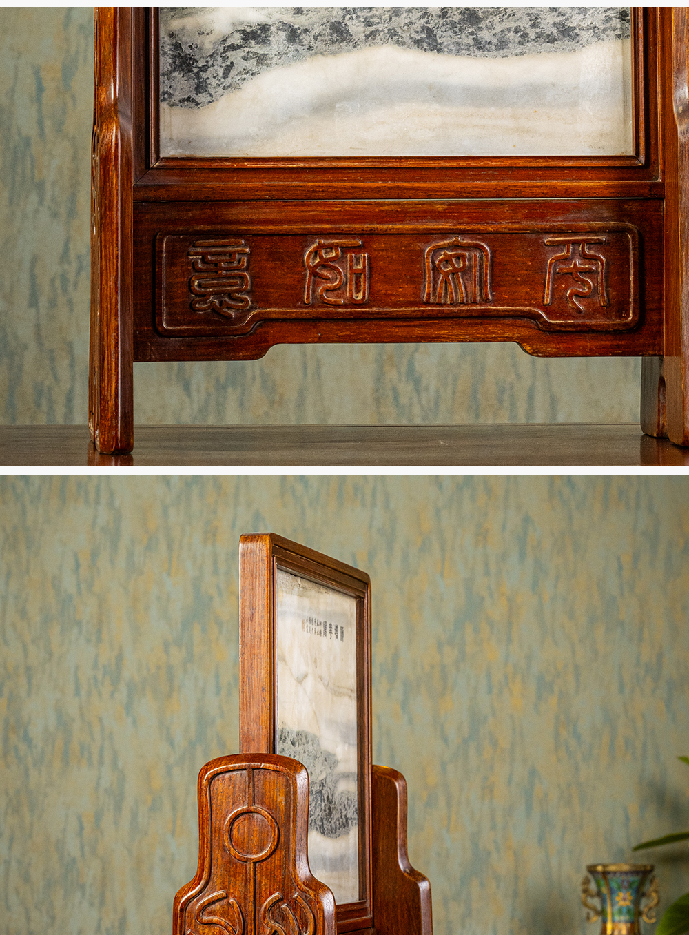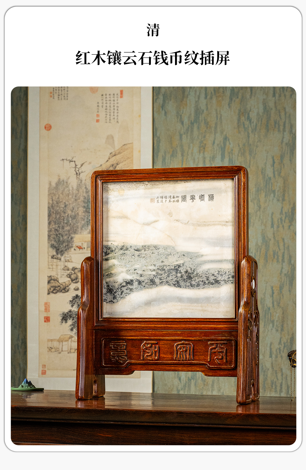 清 红木镶云石钱币纹插屏