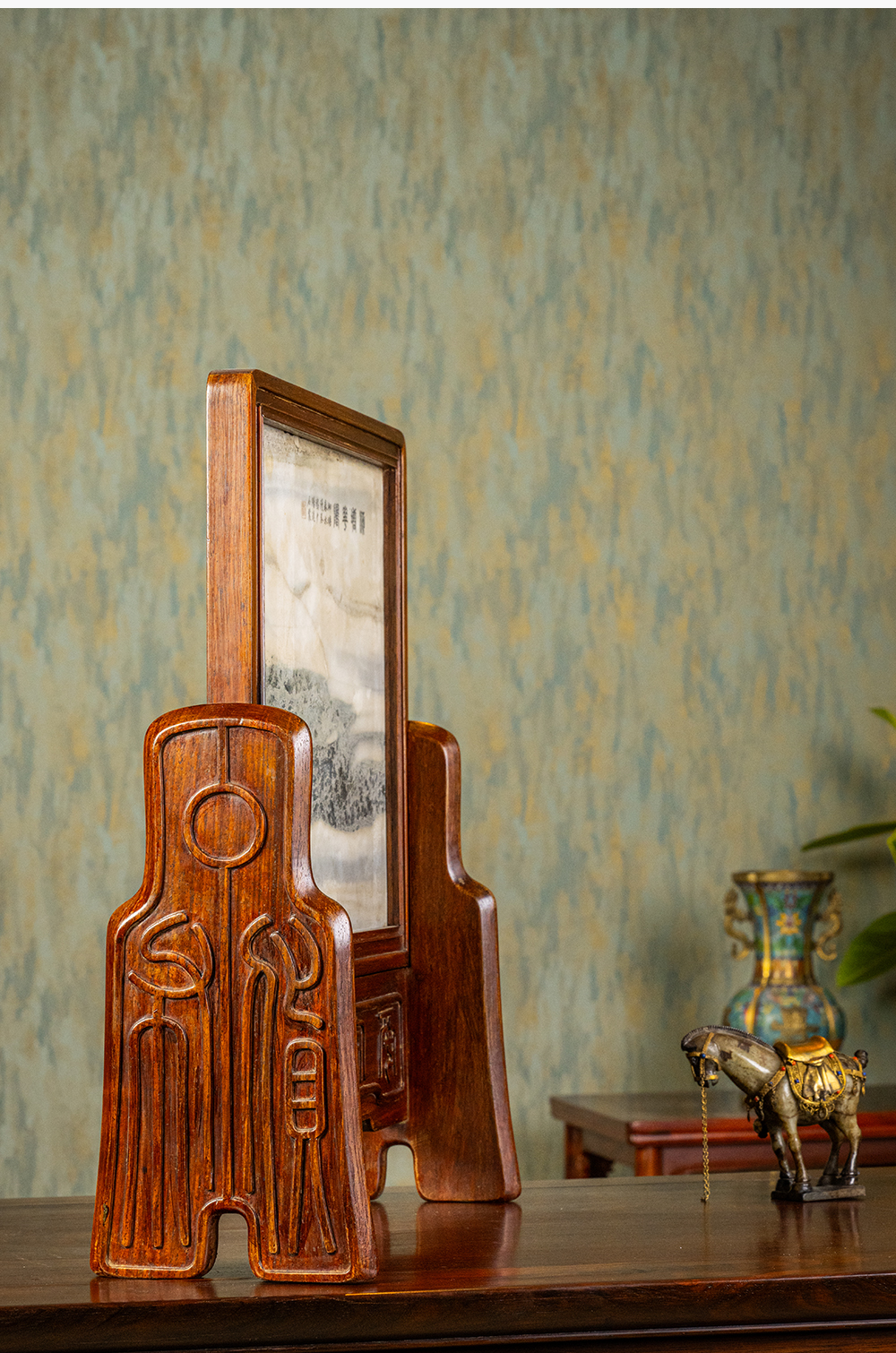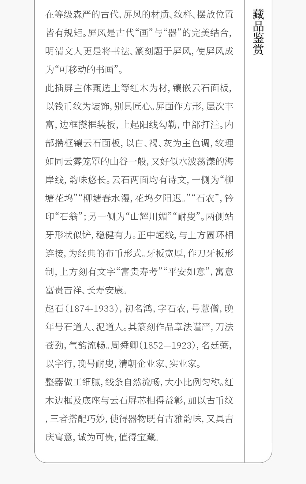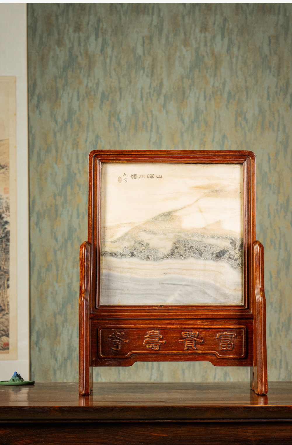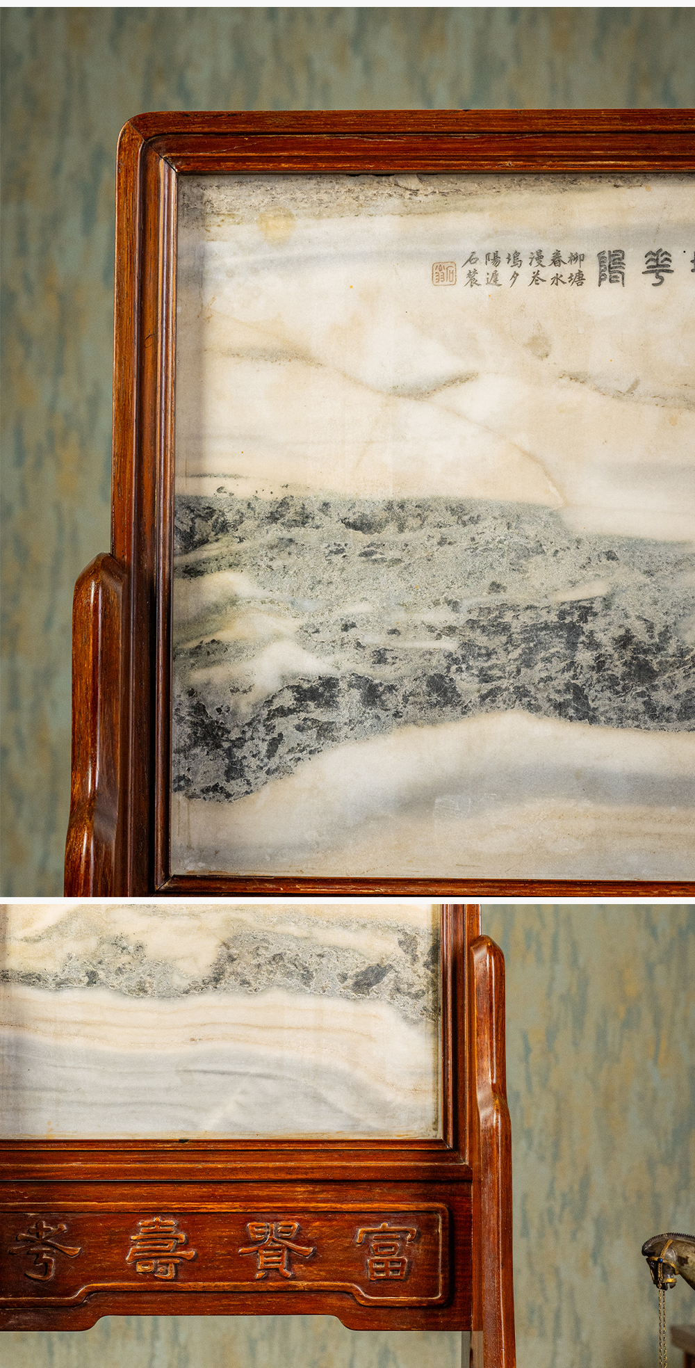 清 红木镶云石钱币纹插屏