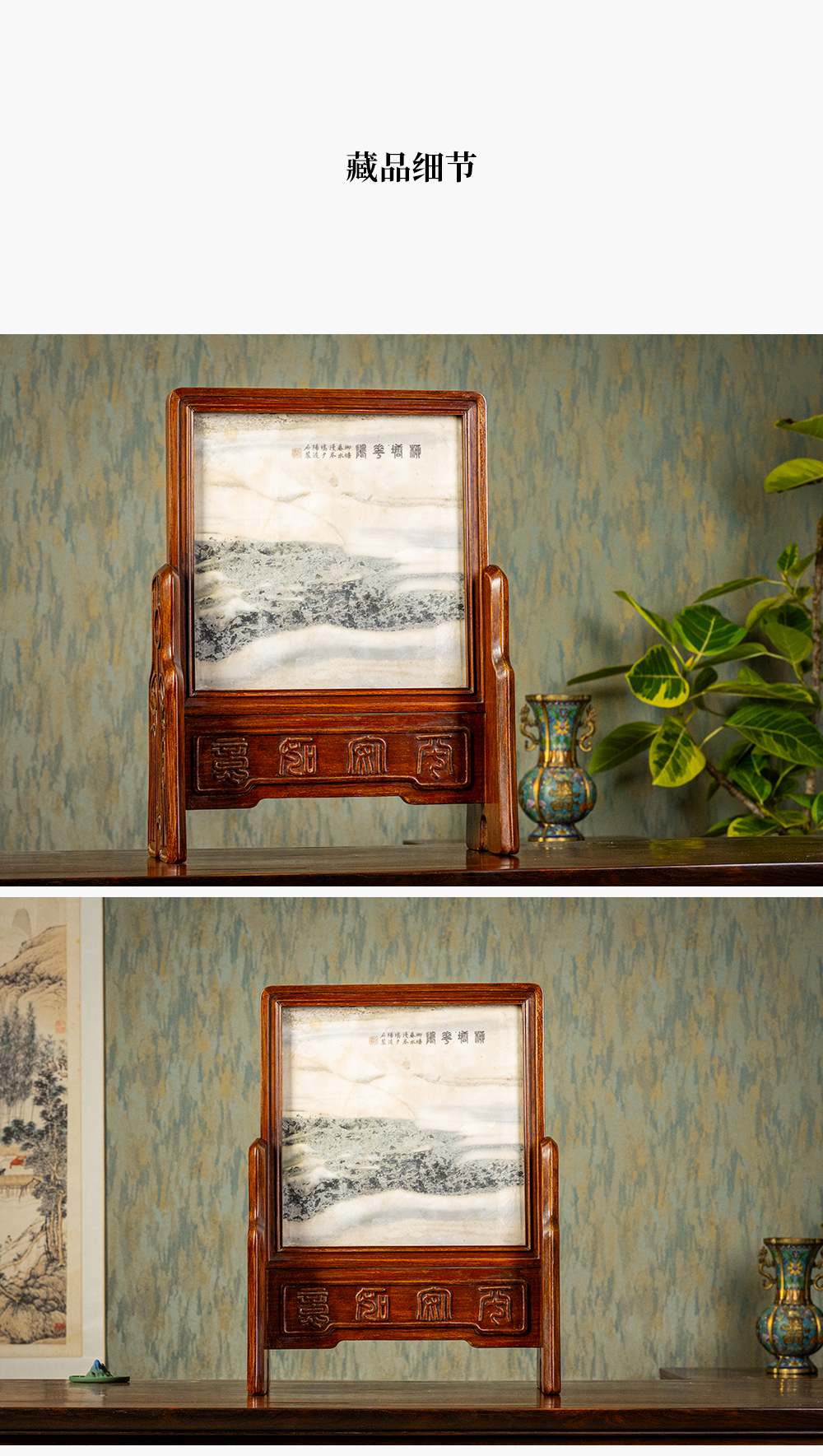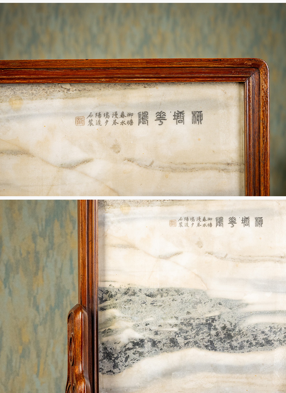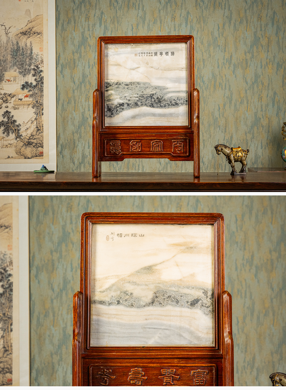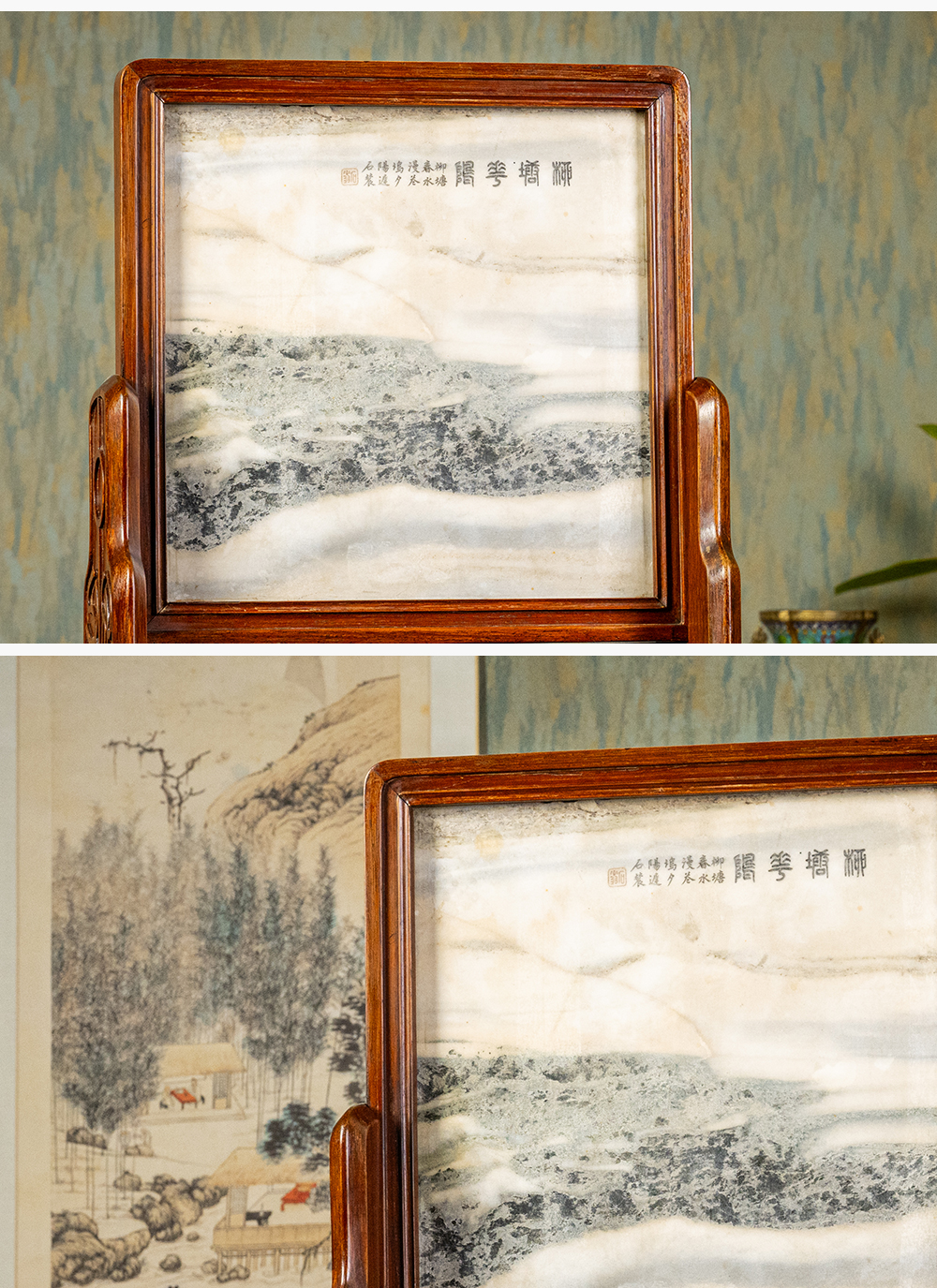 清 红木镶云石钱币纹插屏