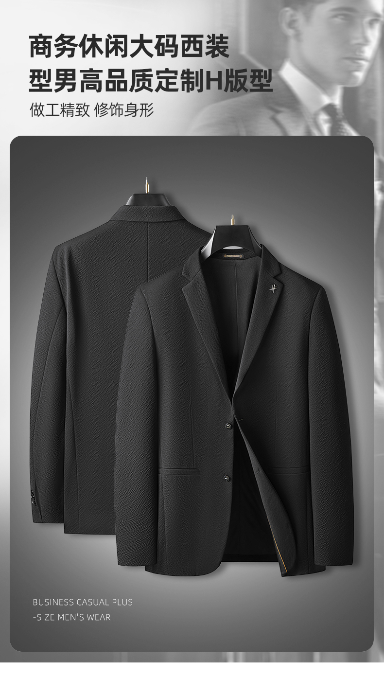 【新款DDA】大依优型品质西服外套商务夹克男宽松加肥加大码上衣胖子正装休闲