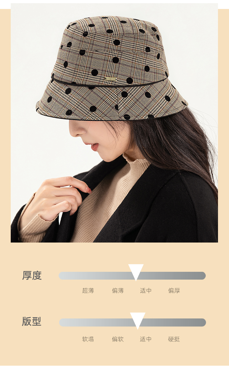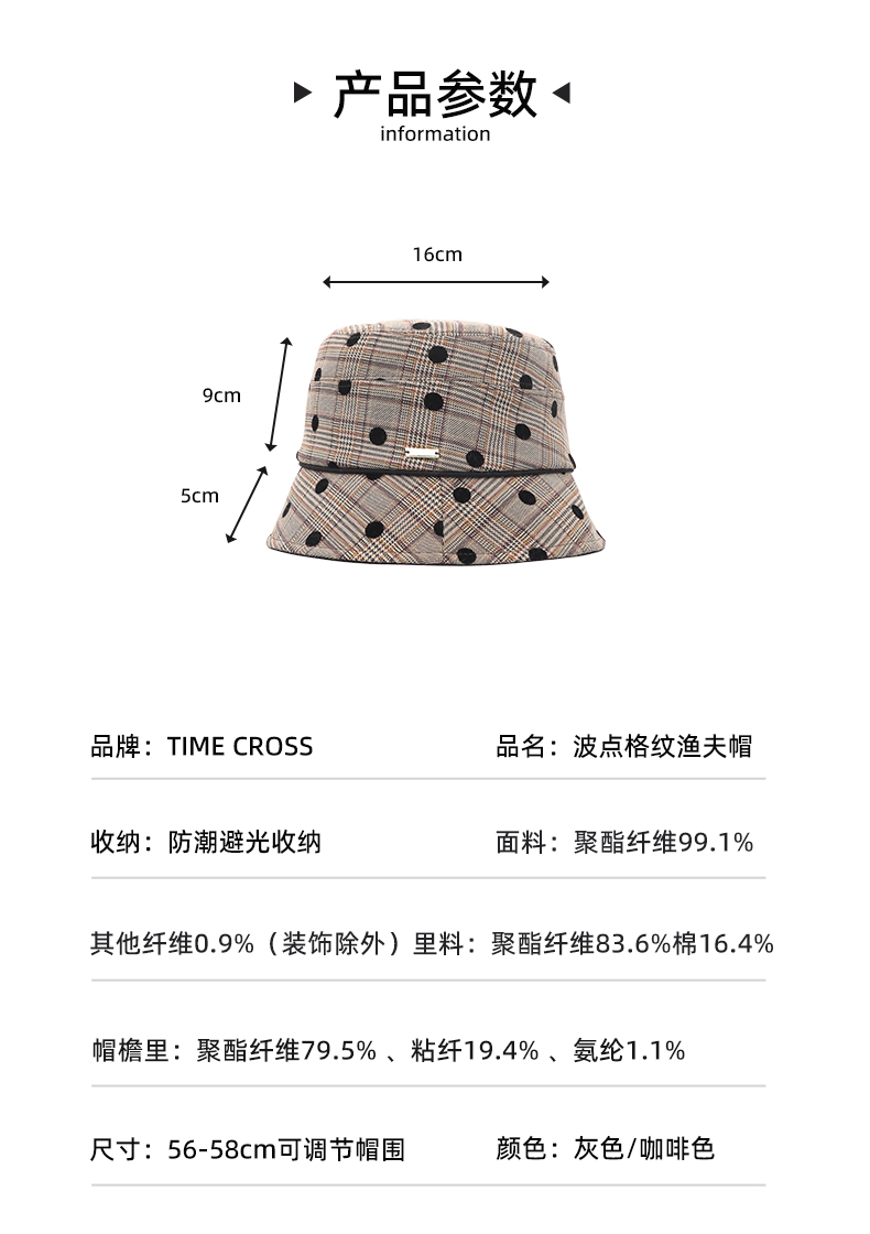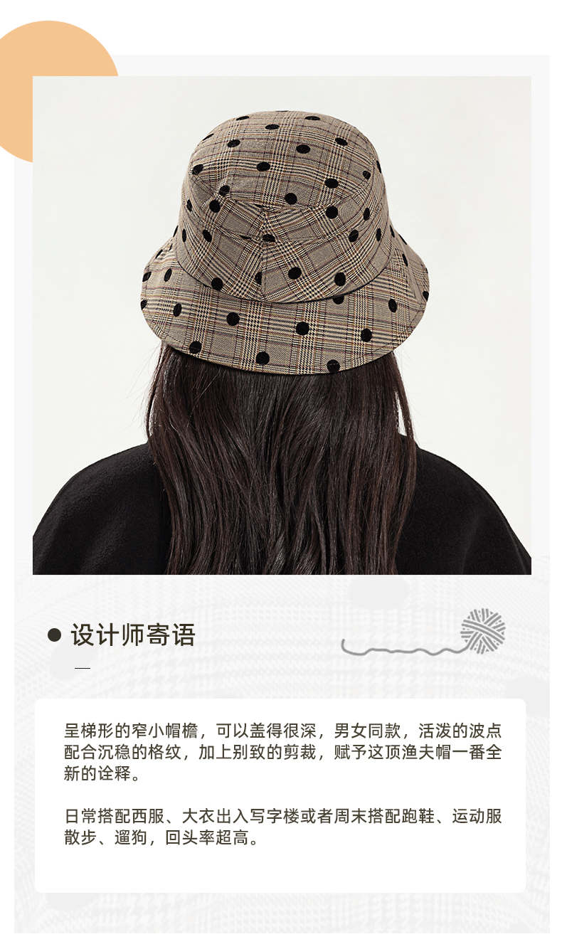 YORO容若波点格纹渔夫帽(DN0005)