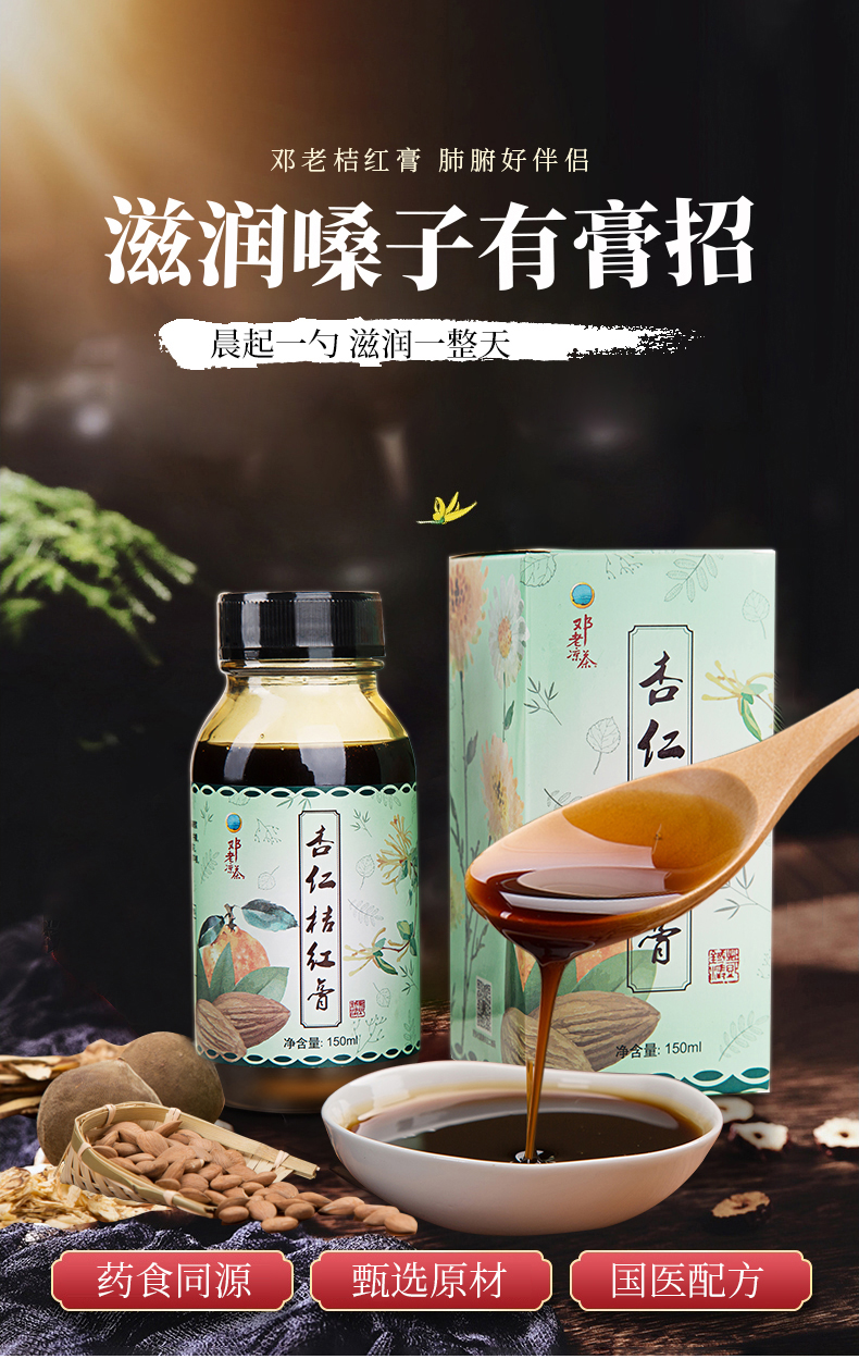 邓老杏仁桔红膏广东植物凉茶怕上火蜜炼膏蜂蜜橘红蜜茶150ml/瓶*3