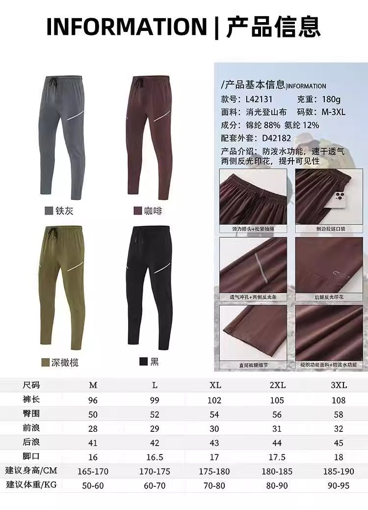 跃牌【跃LEAP-ACTIVE】系列 户外登山运动长裤防水男款休闲跑步健身九分裤L42131