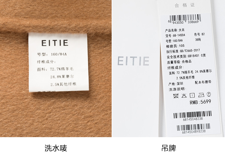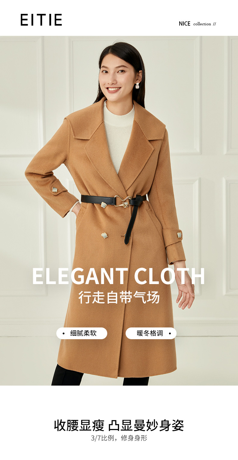 EITIE爱特爱冬季新款女装羊毛长款过膝保暖毛呢外套大衣6814504