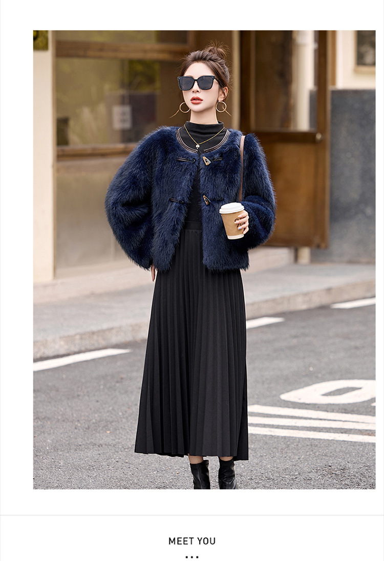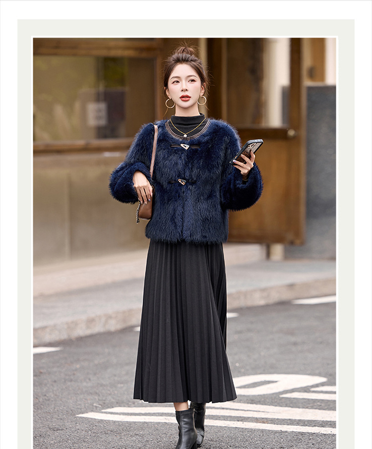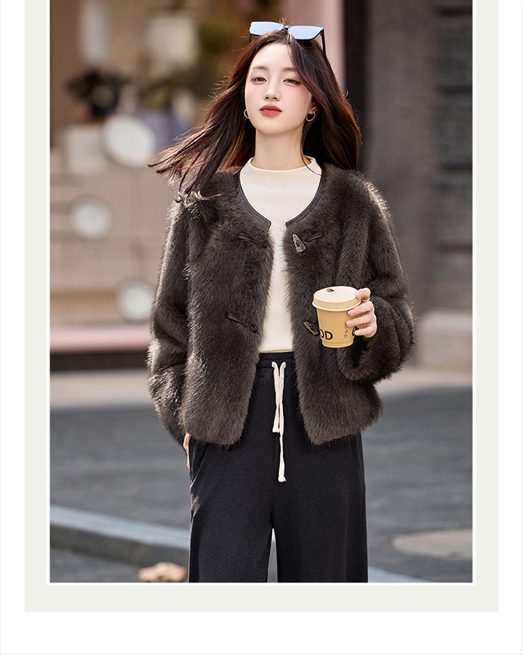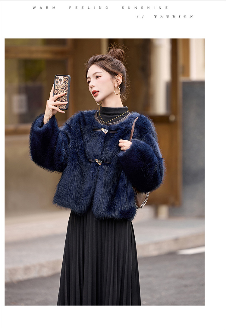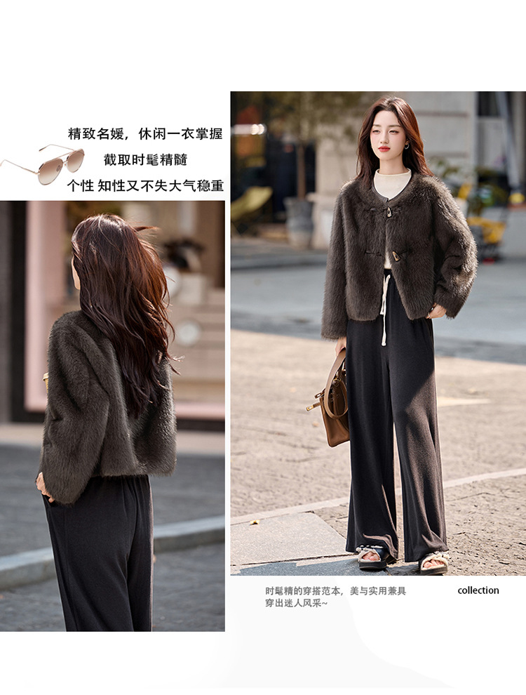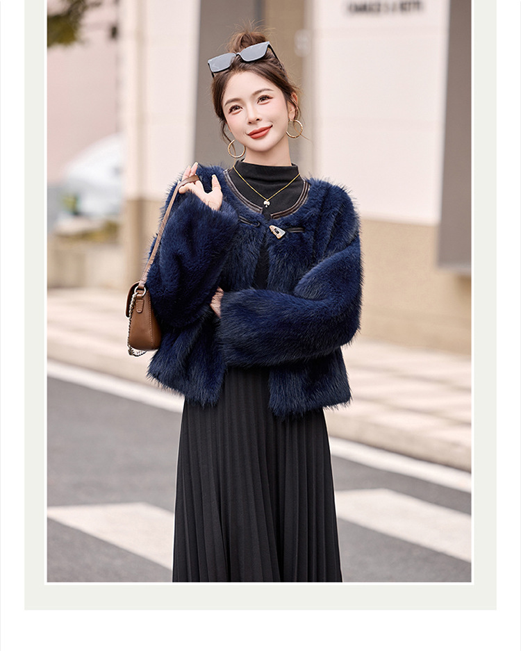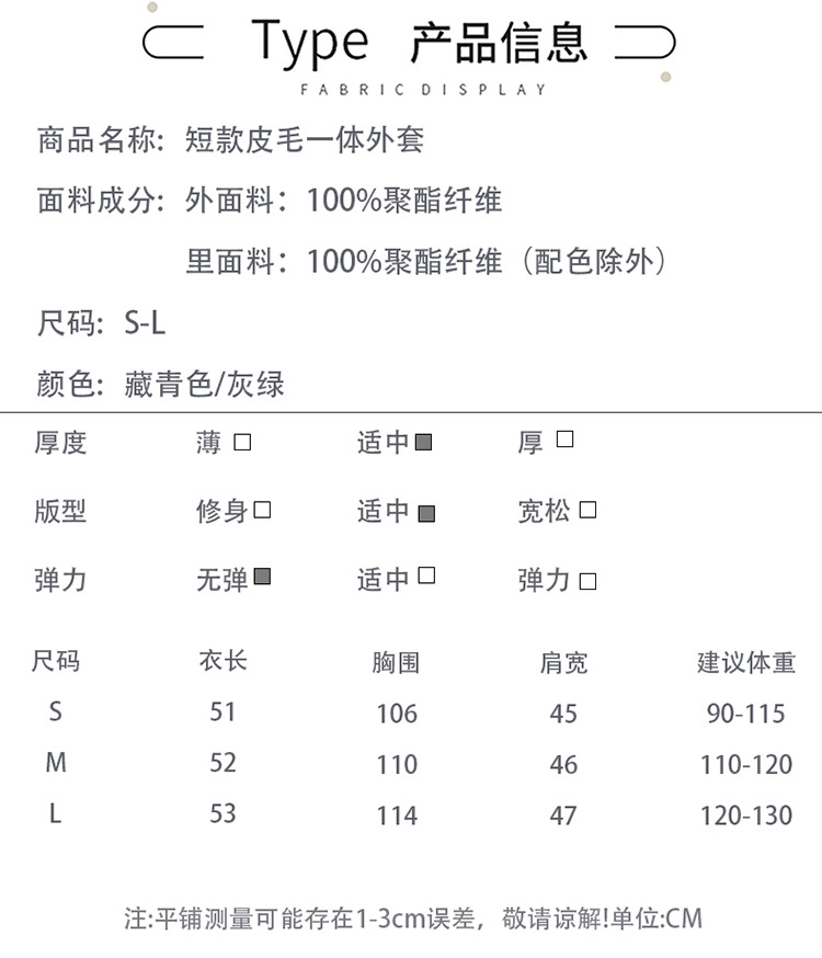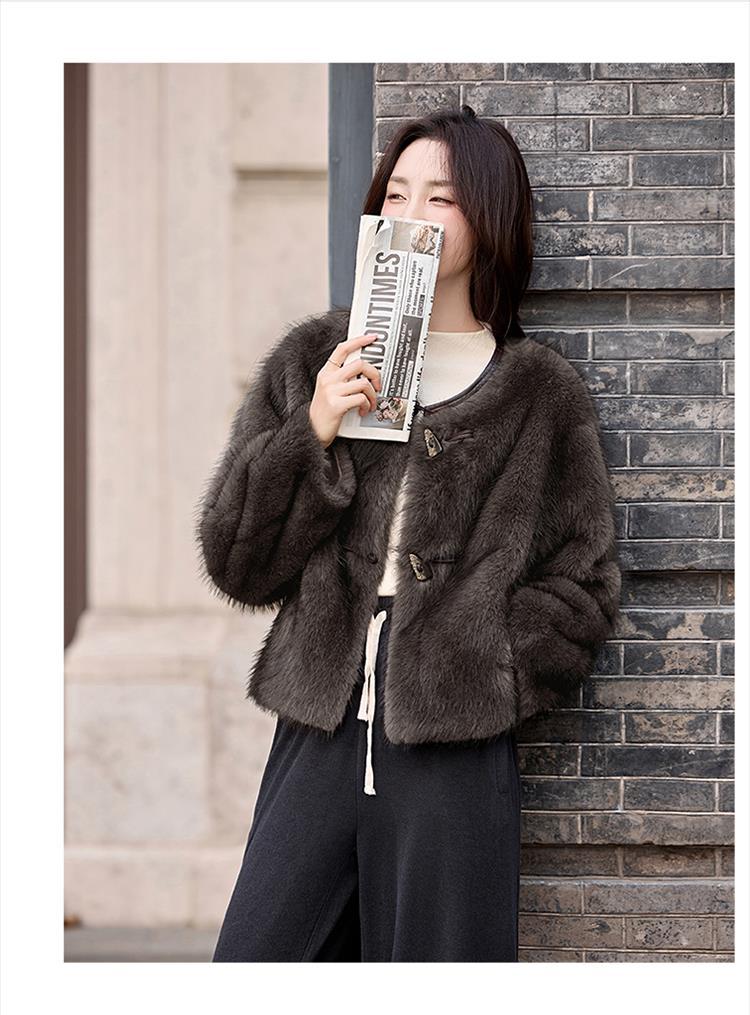 皮毛一体外套小个子洋气,显瘦皮草短款加厚毛毛上衣HR-5519