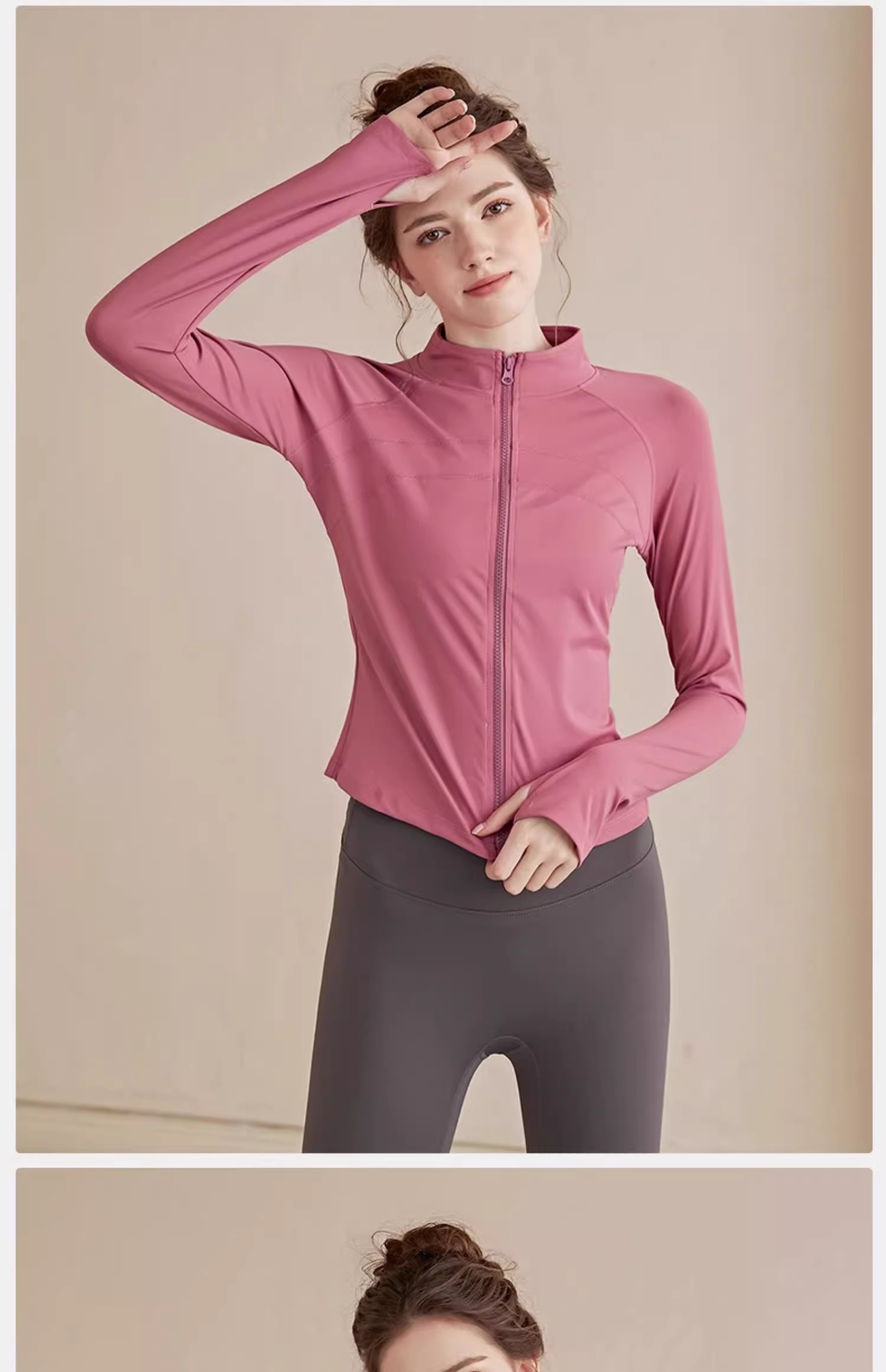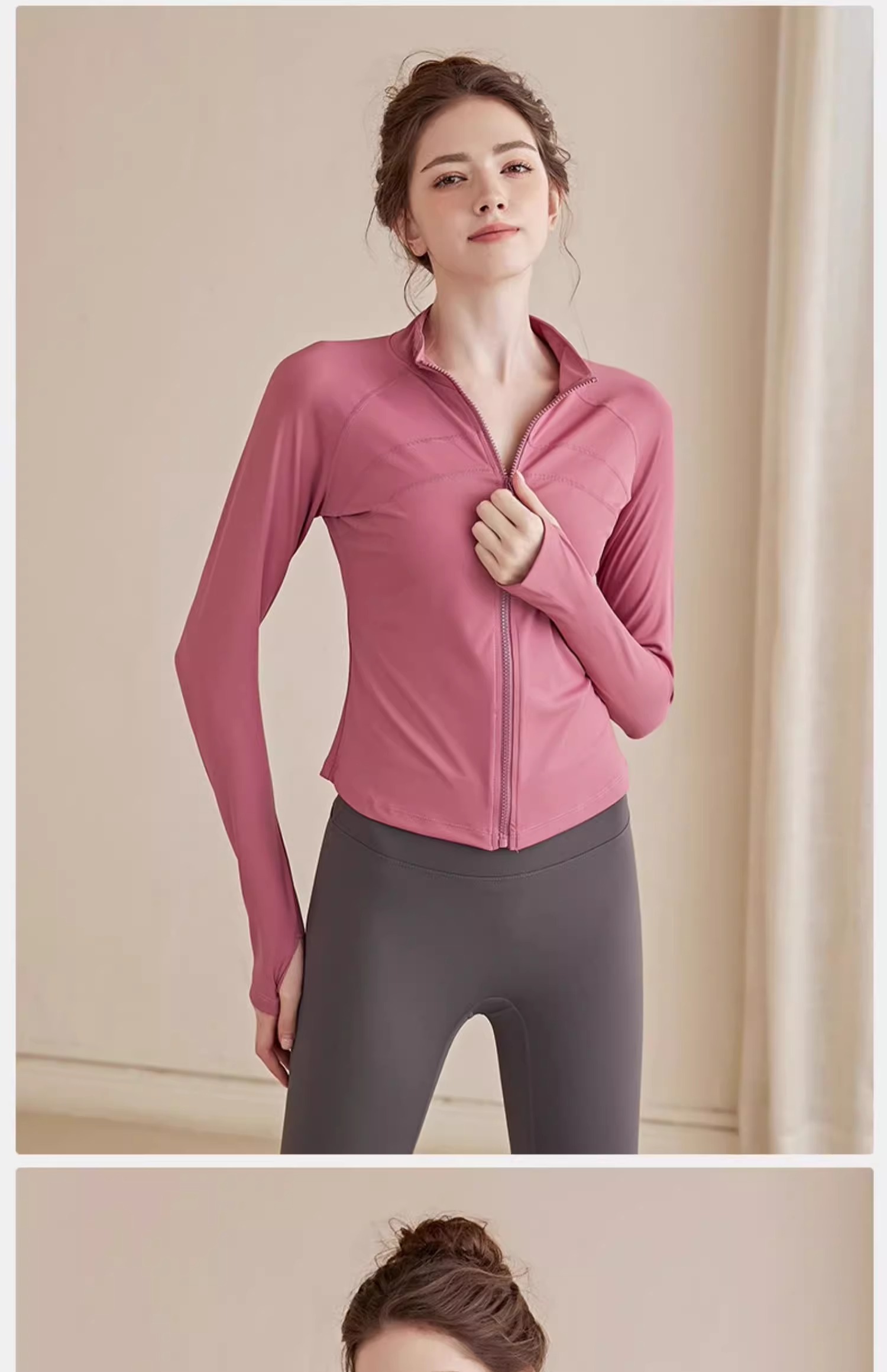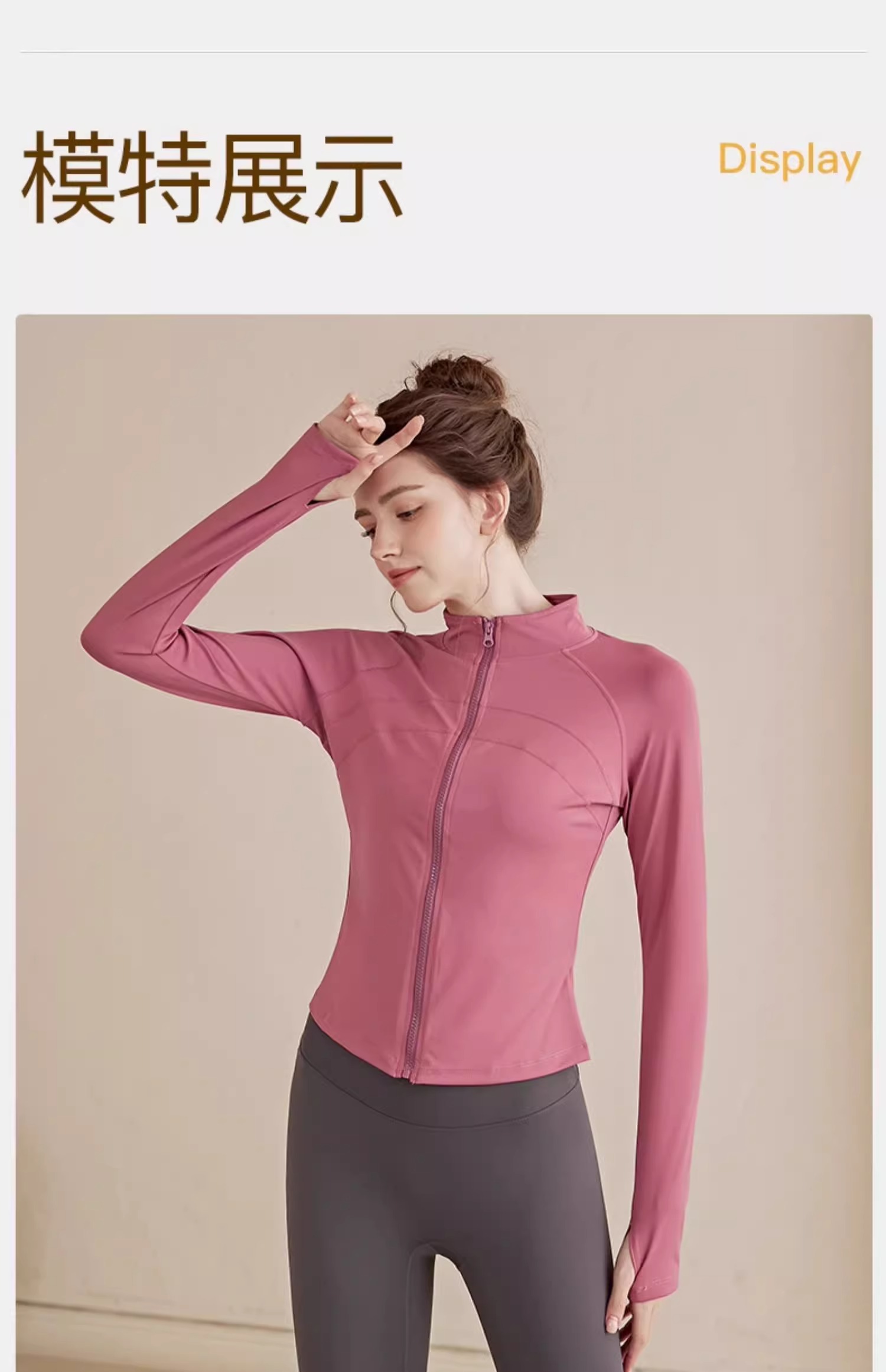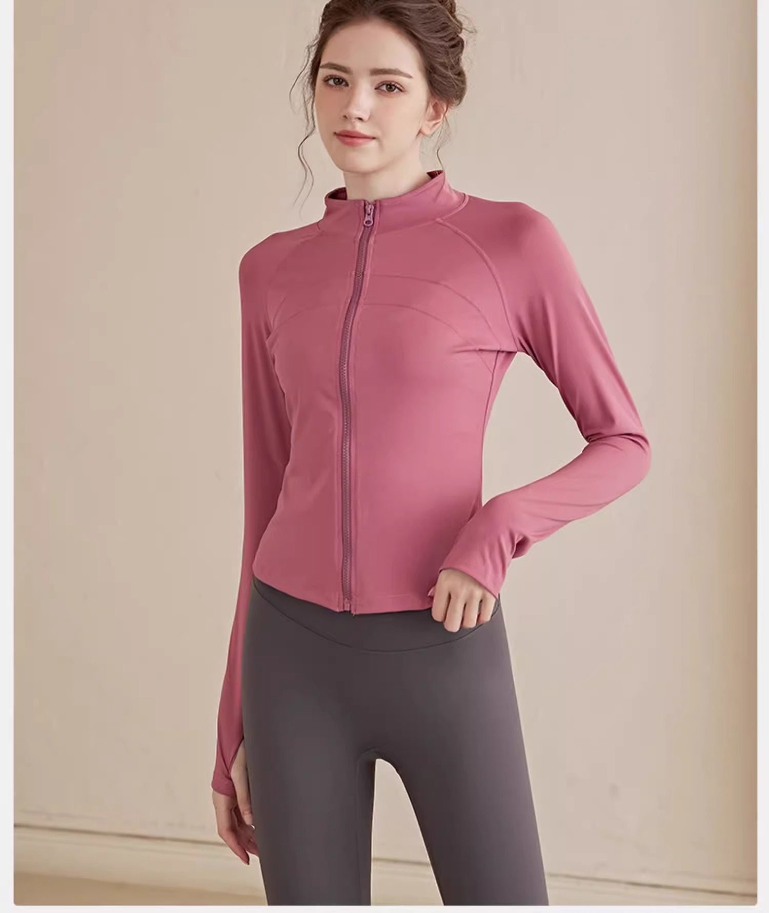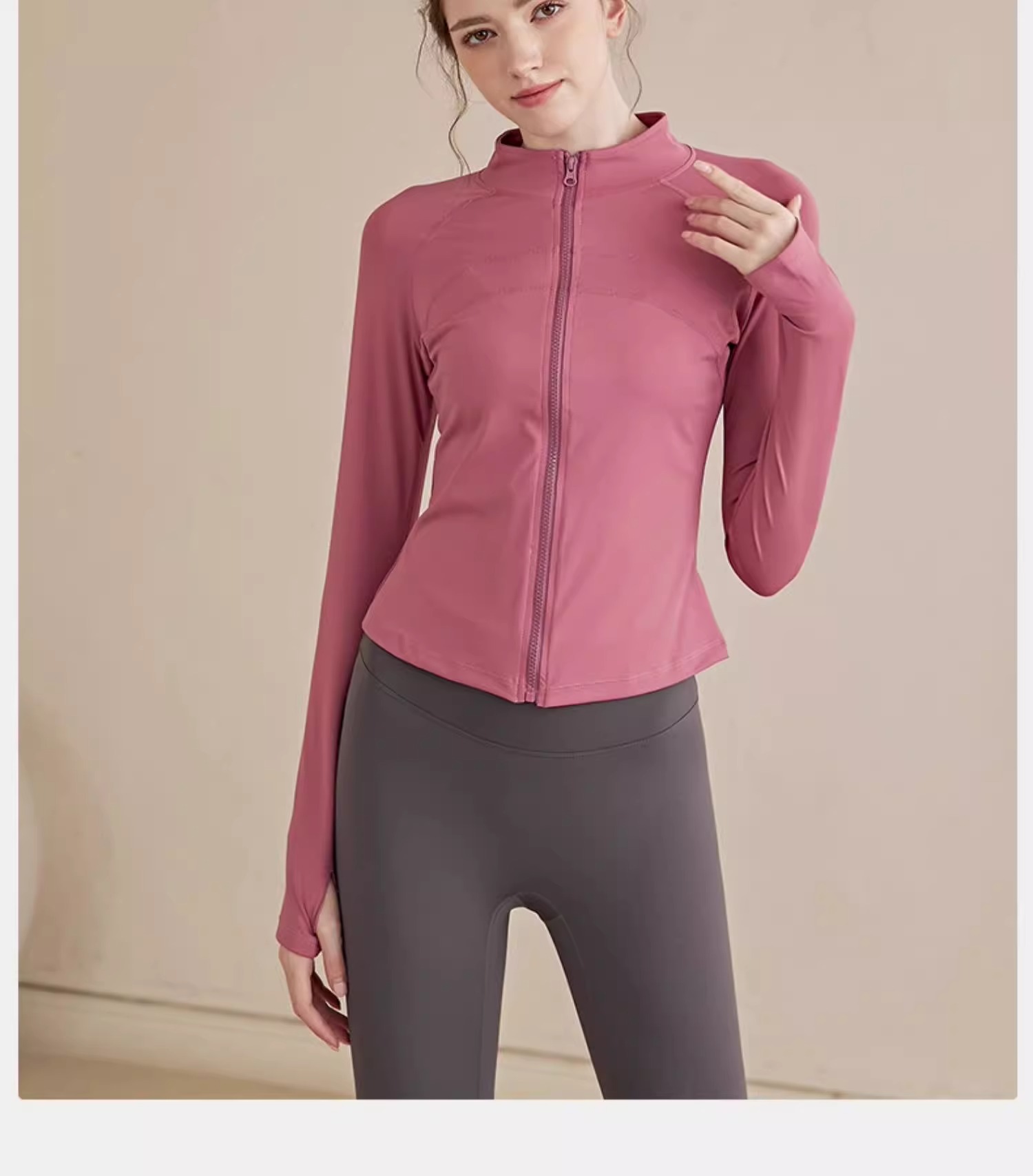 跃牌【瑜堂系列】大码拉链运动外套弹力紧身运动上衣欧码修身显瘦瑜伽服女JYMW085