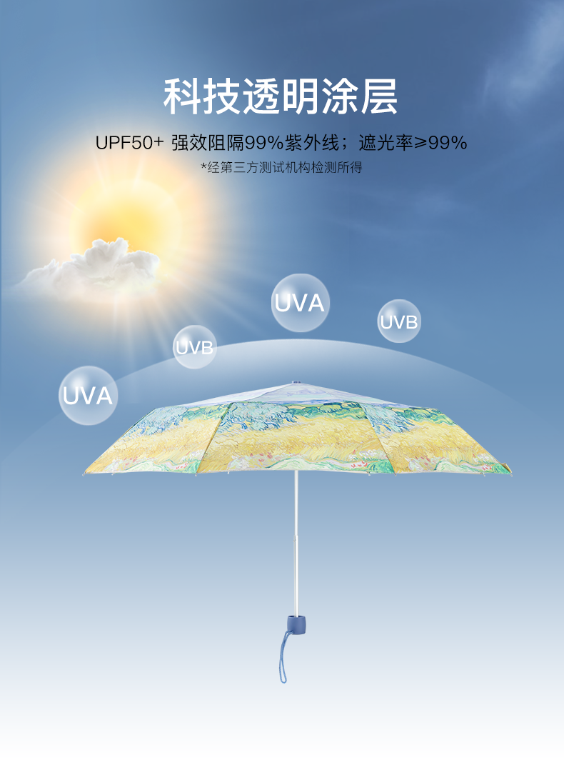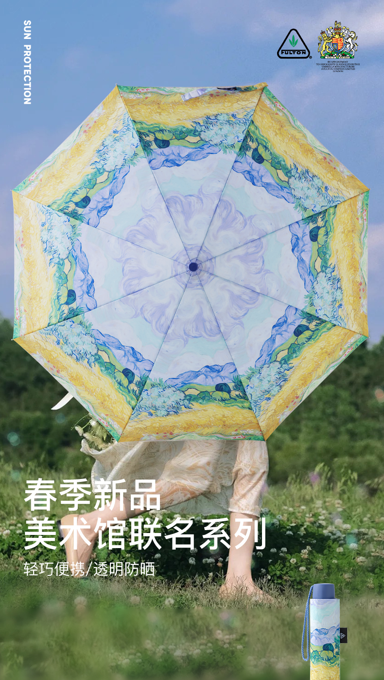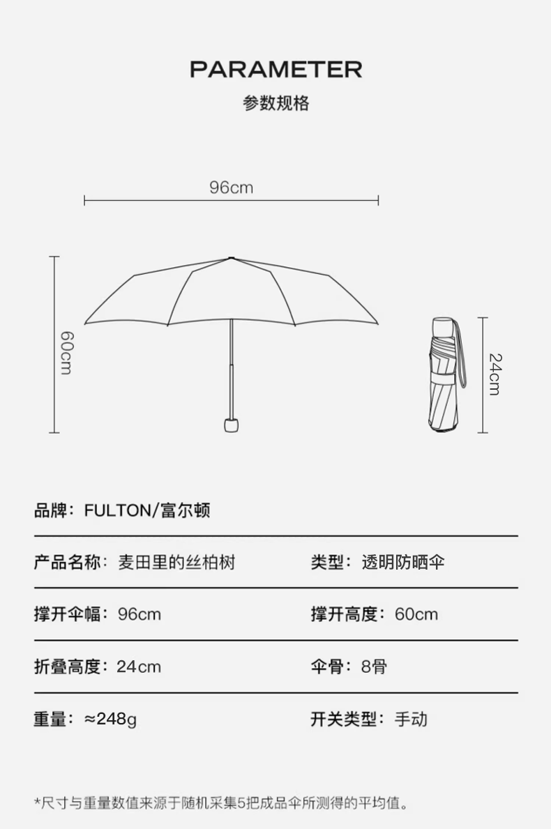 英国进口Fulton富尔顿防晒麦田透明涂层三折伞