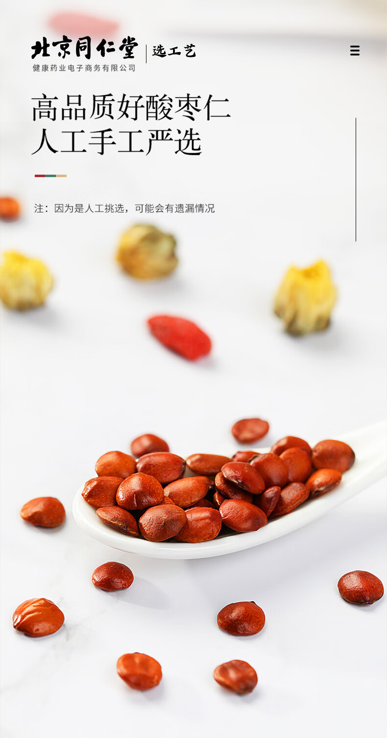 【正宗同仁堂品牌】北京同仁堂 青源堂 酸枣仁100克 河北严选 汤色透亮 拒绝熏硫SY