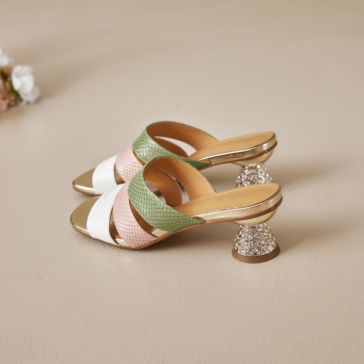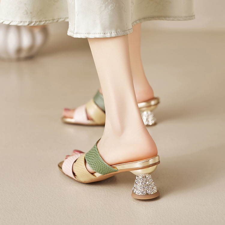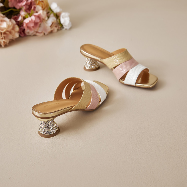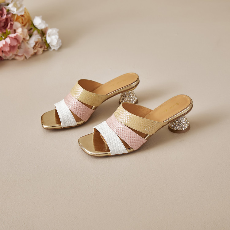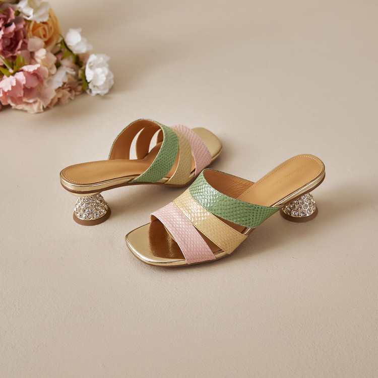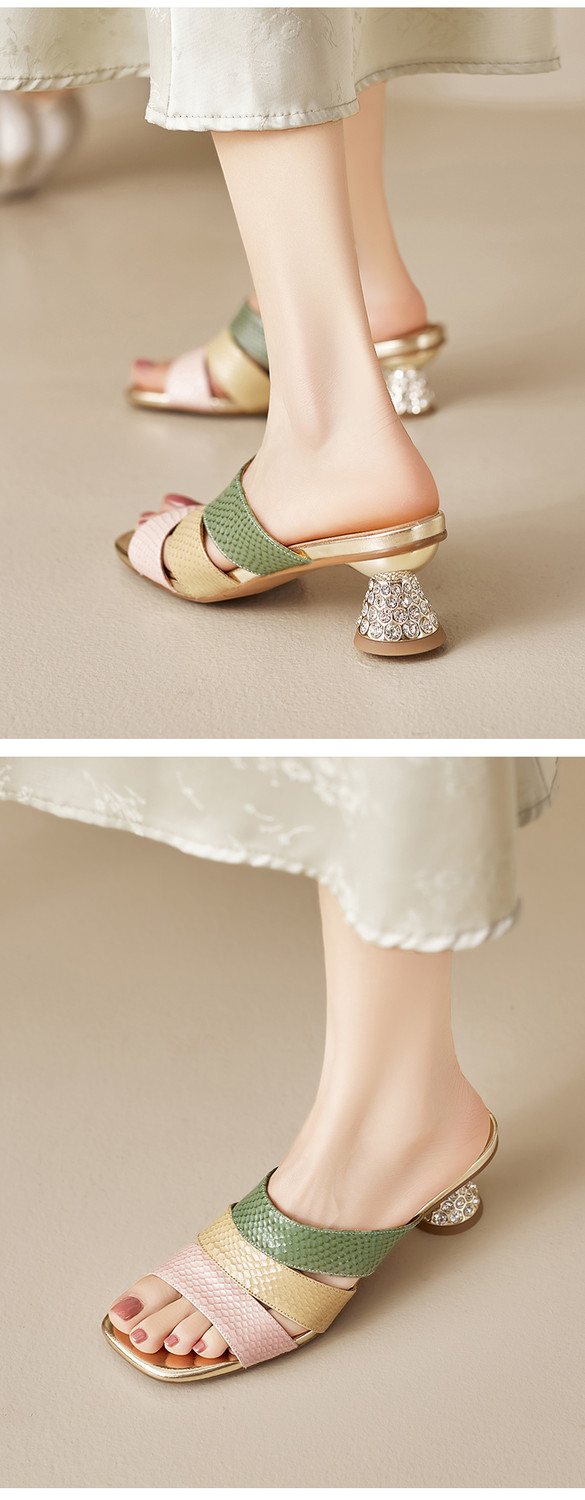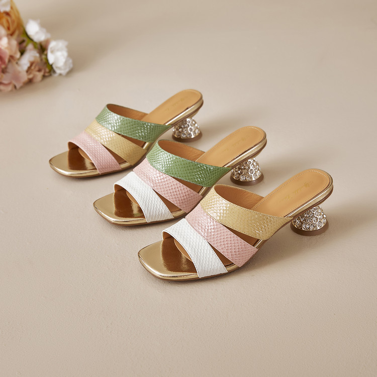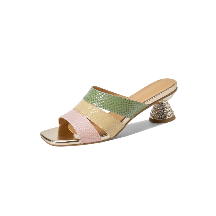 【预售5天】夏新款真皮一字拖女外穿露趾凉拖鞋拼色百搭时尚粗跟高跟凉鞋MBJR&6921