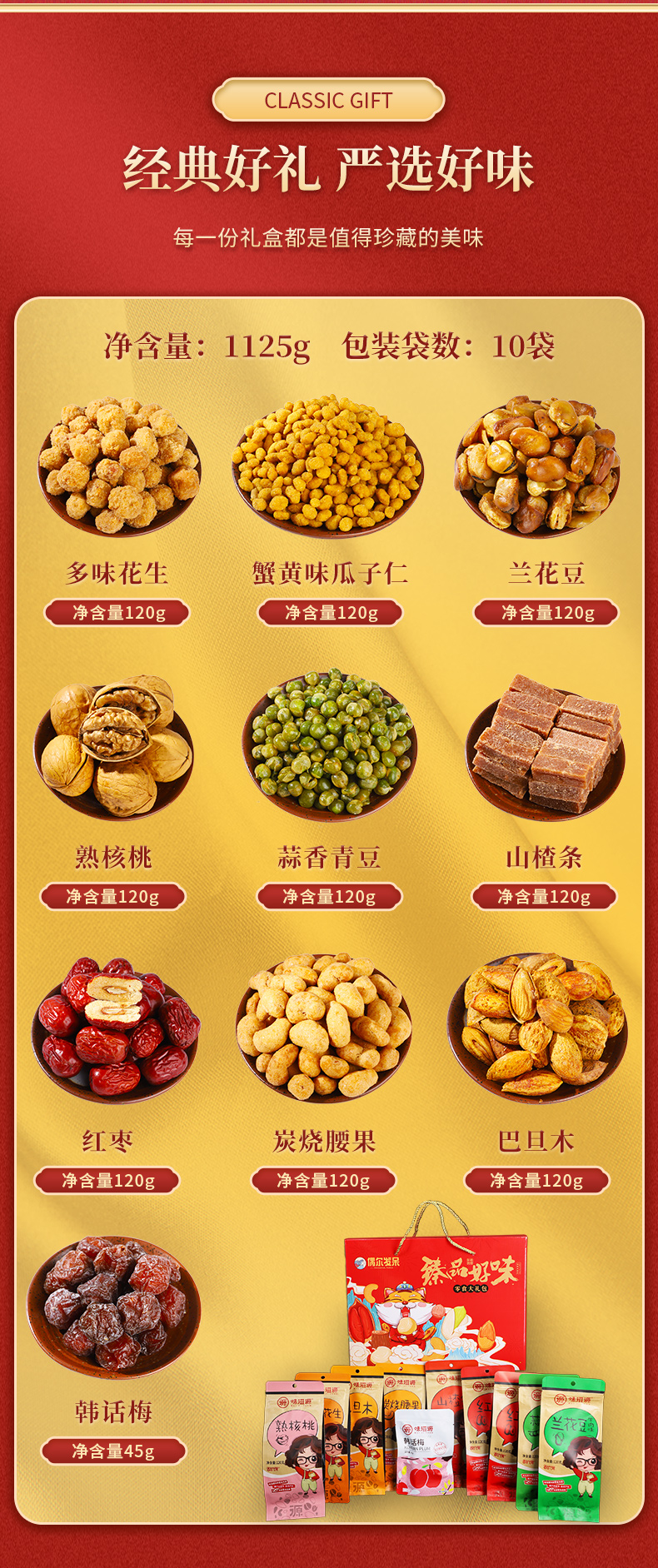 味滋源 臻品好味 偶然发呆零食大礼包 坚果有礼 美味过新年1125g/10种