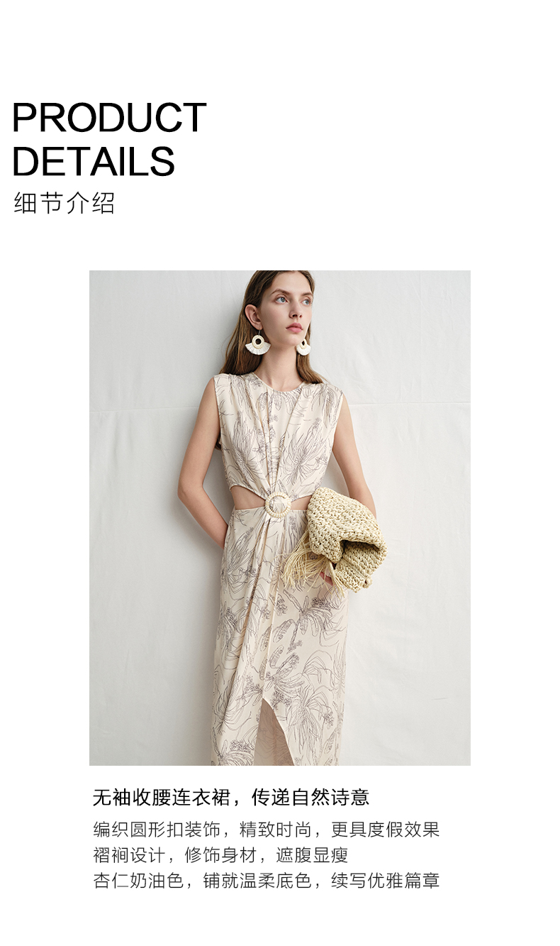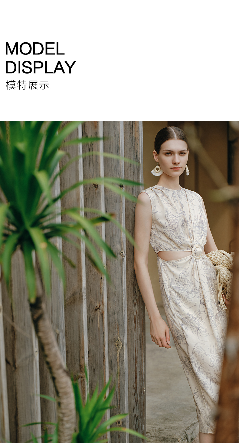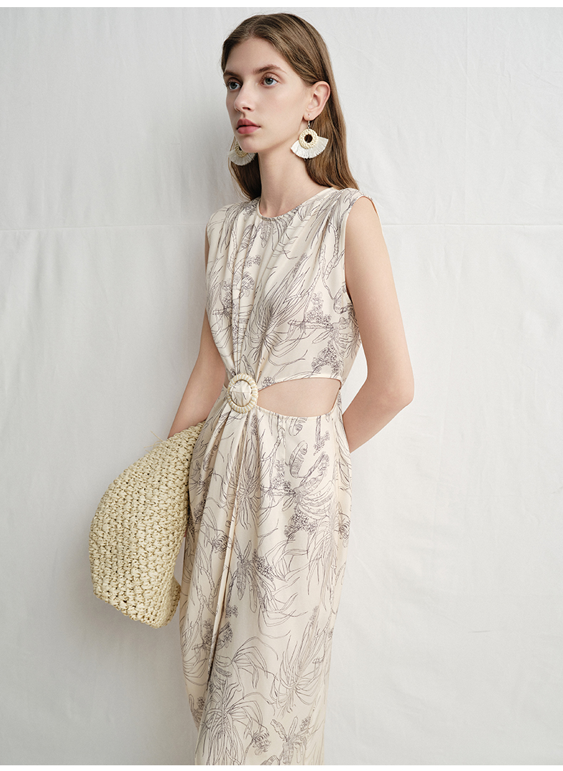 VIMAGE纬漫纪高级感线条花卉腰部镂空扭结收腰连衣裙2025夏季新款V2307913
