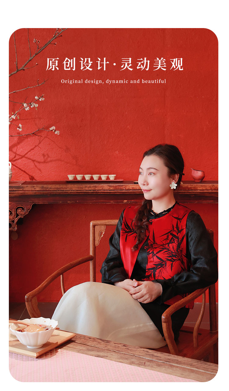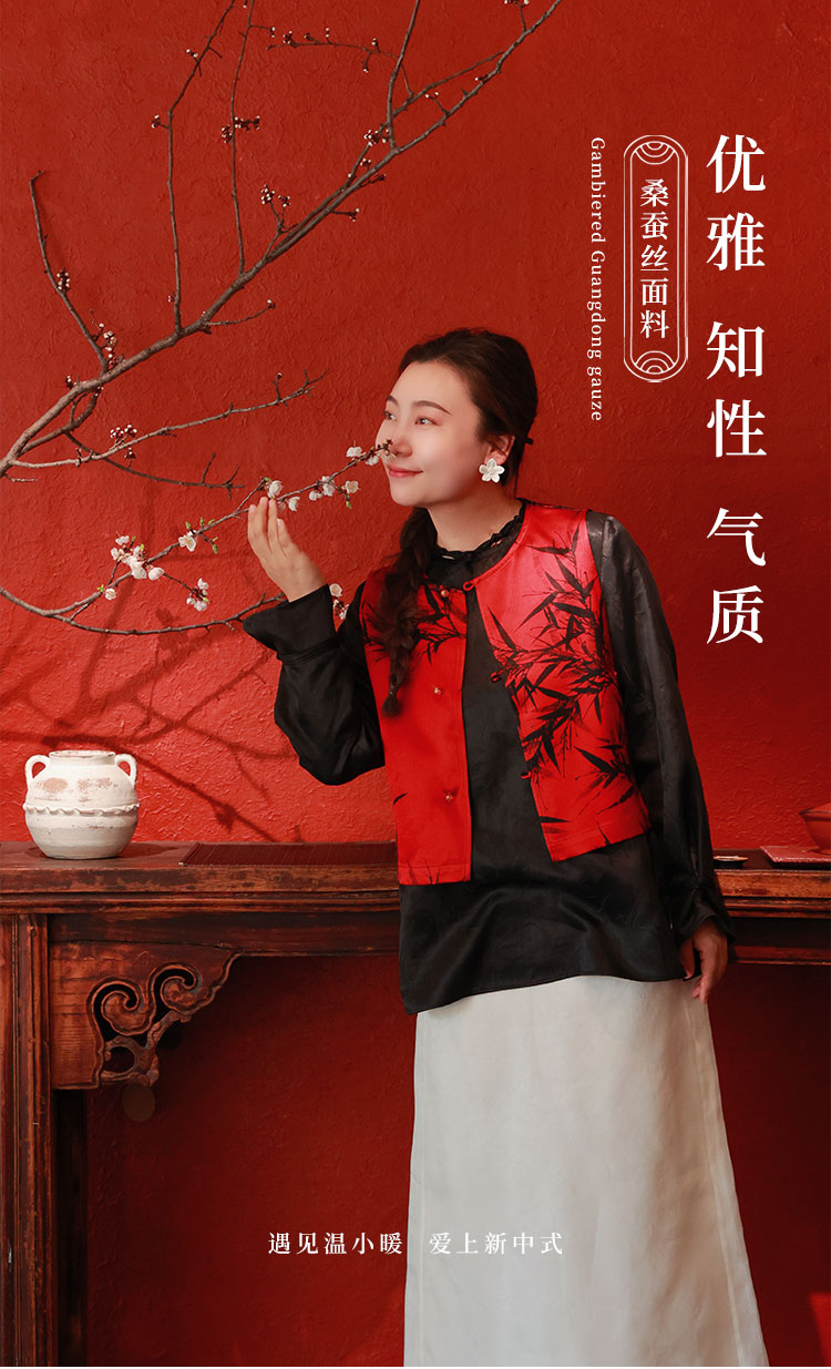 【抖音专属】新中式衬衣(25710127朱黑高定款)