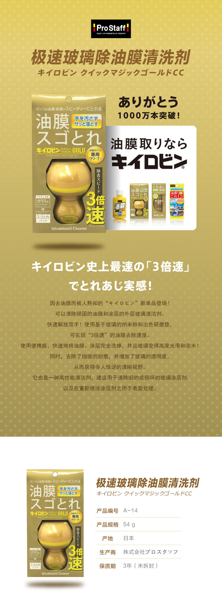Prostaff专业大师 A-14极速玻璃除油膜清洗剂