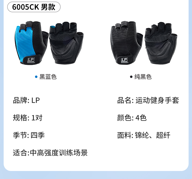 LP 零茧健身手套女运动半指男防滑骑行单杠器械训练薄防起茧升级6005CK6006CK