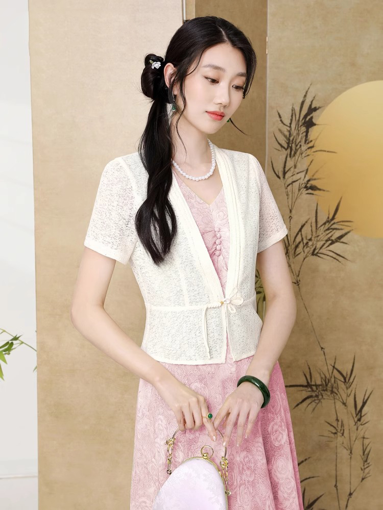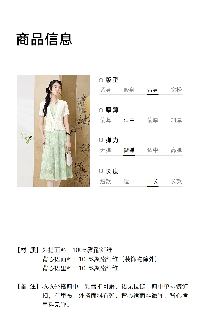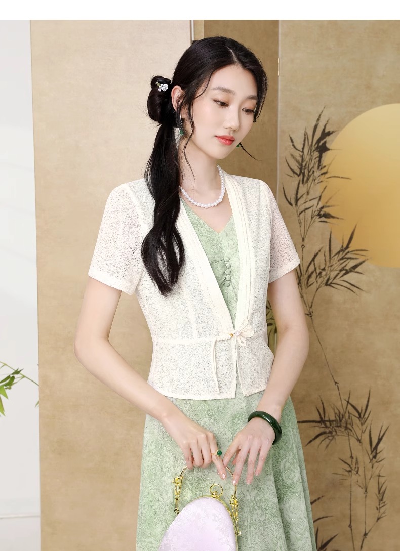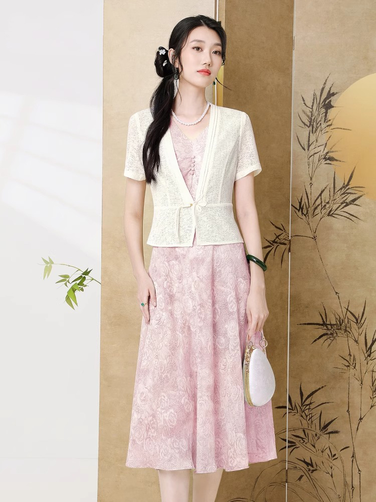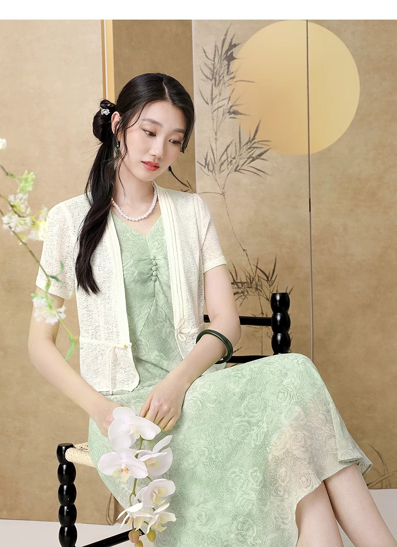 「自」全新升级【铂金会员266/天猫359/差价93】(99741)洛诗琳中式复古开衫+连衣裙套装女夏季2025新款国风两件套