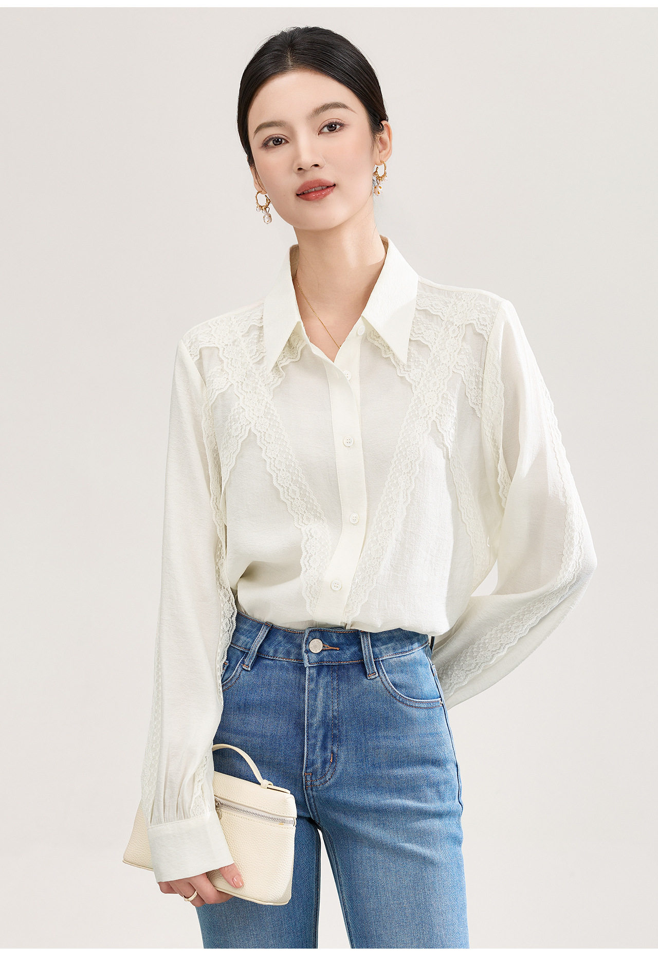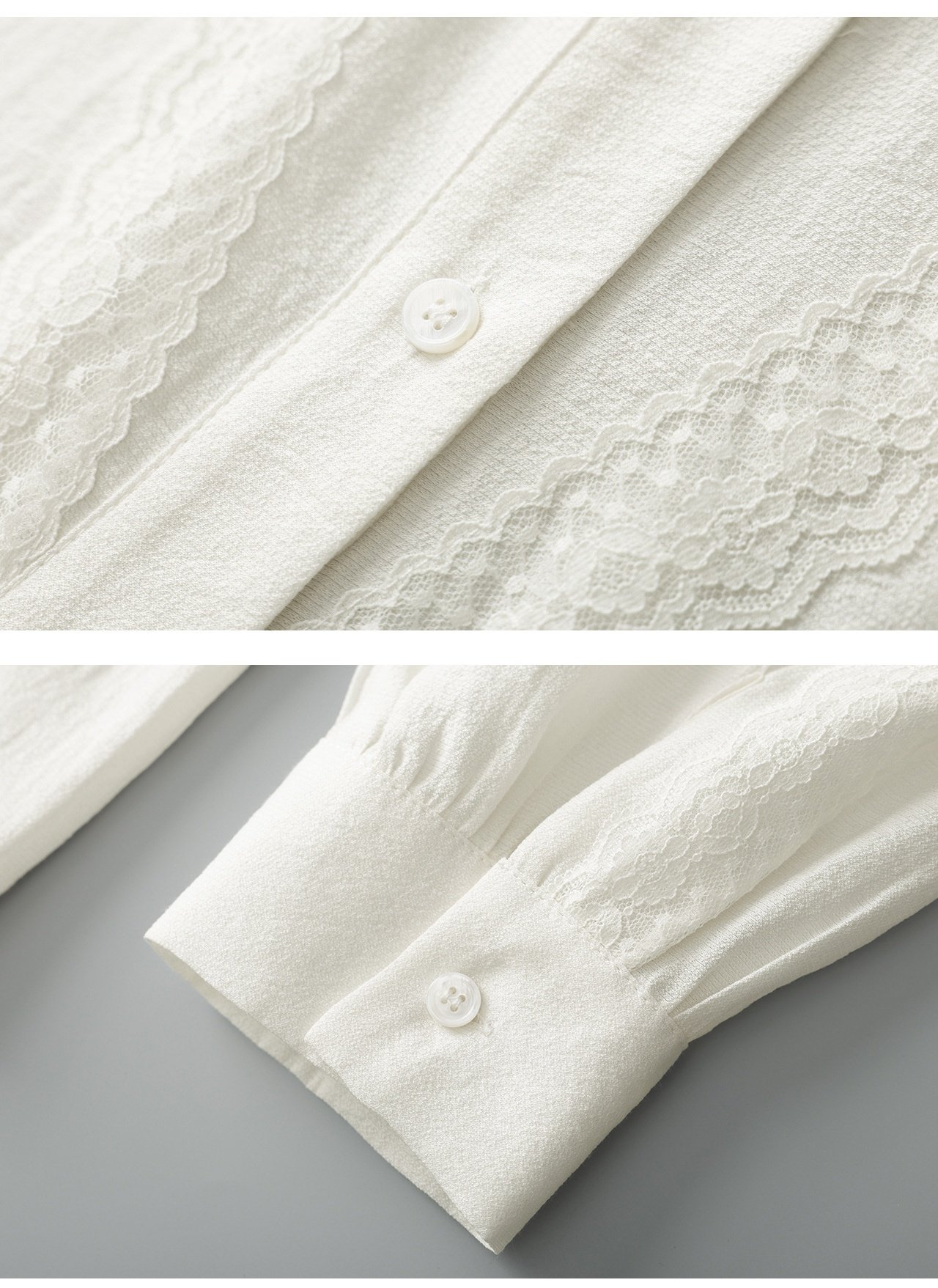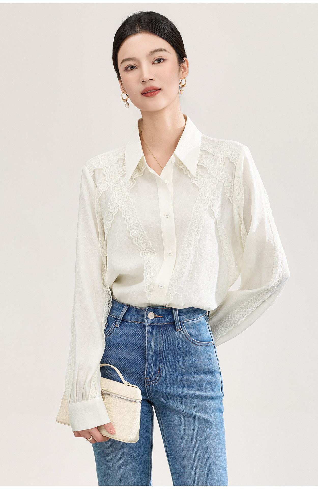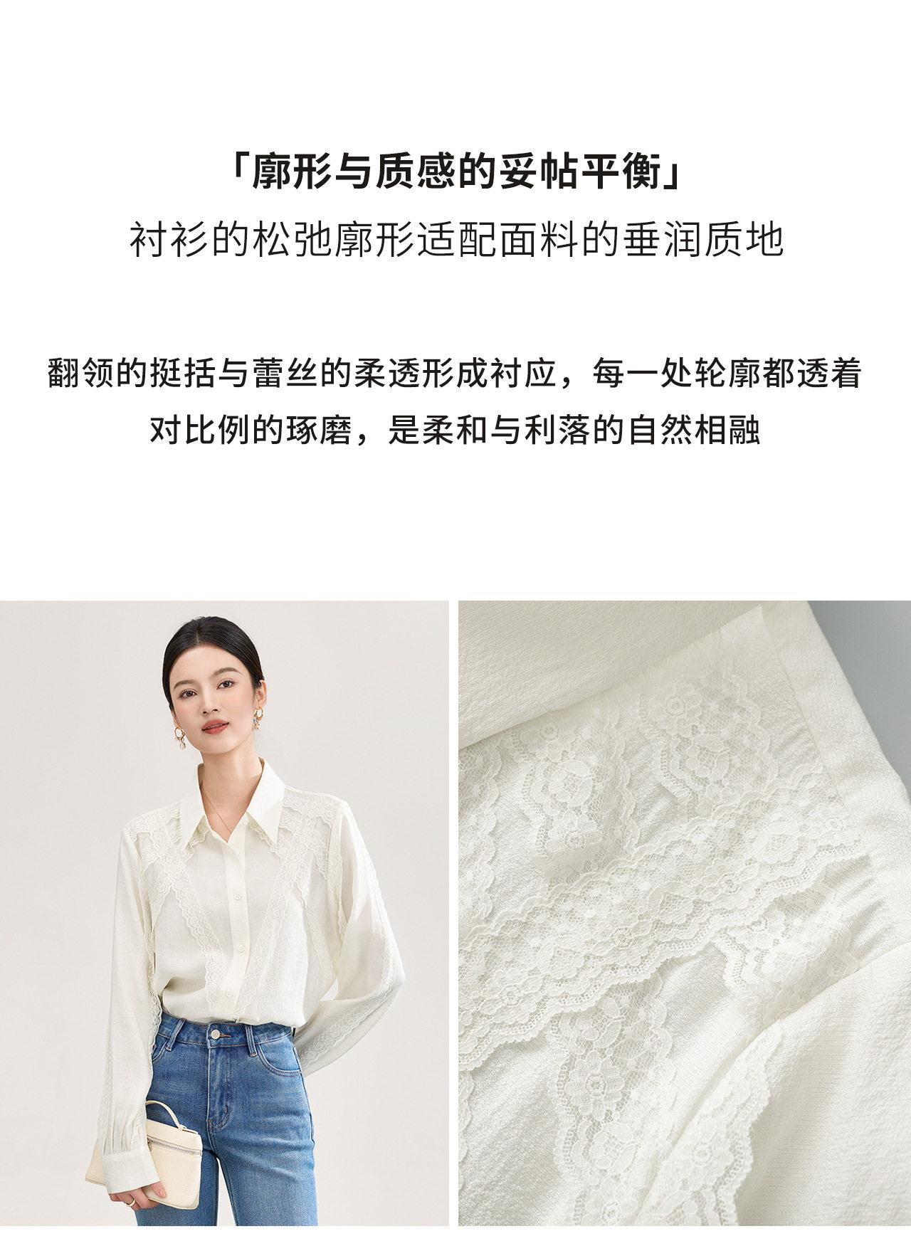 「高货wl」全新升级【铂金会员293/天猫389/差价96】(01638)洛诗琳法式气质翻领衬衫2026春季新款蕾丝边拼接长袖上衣