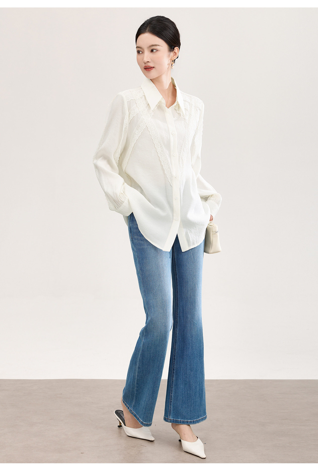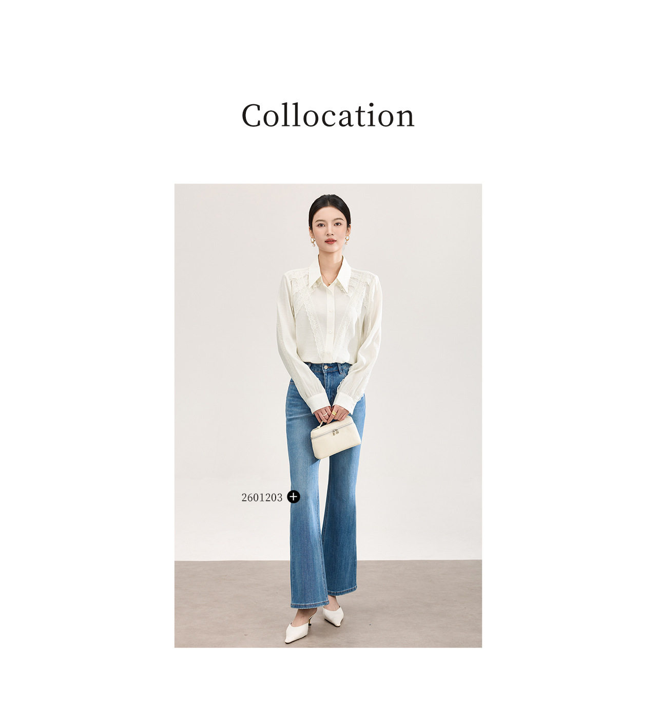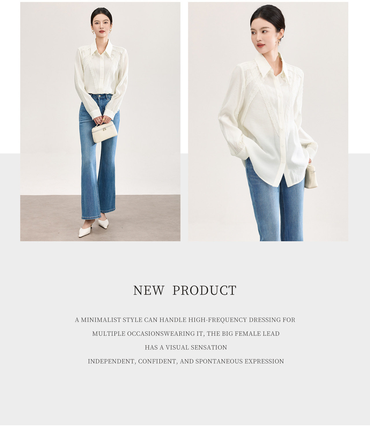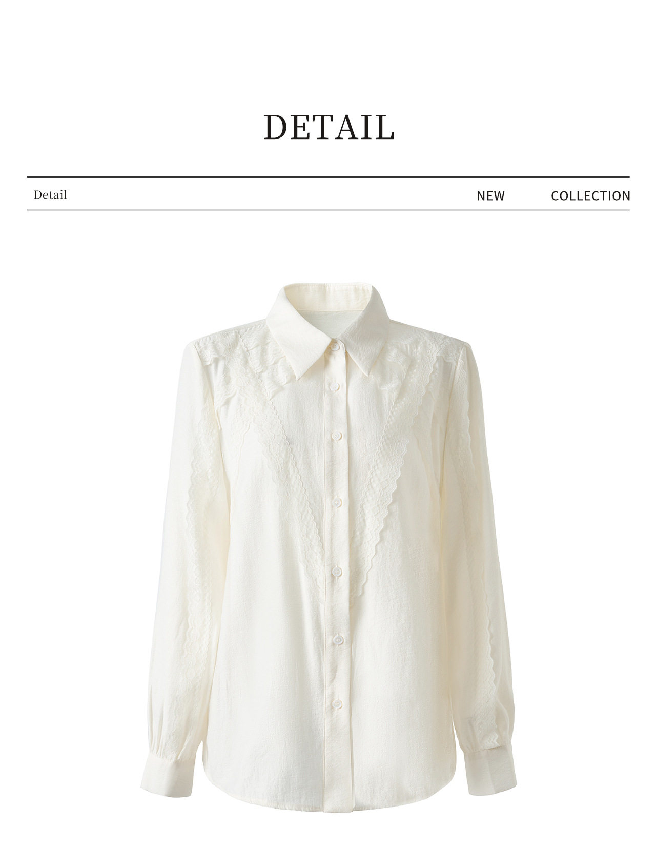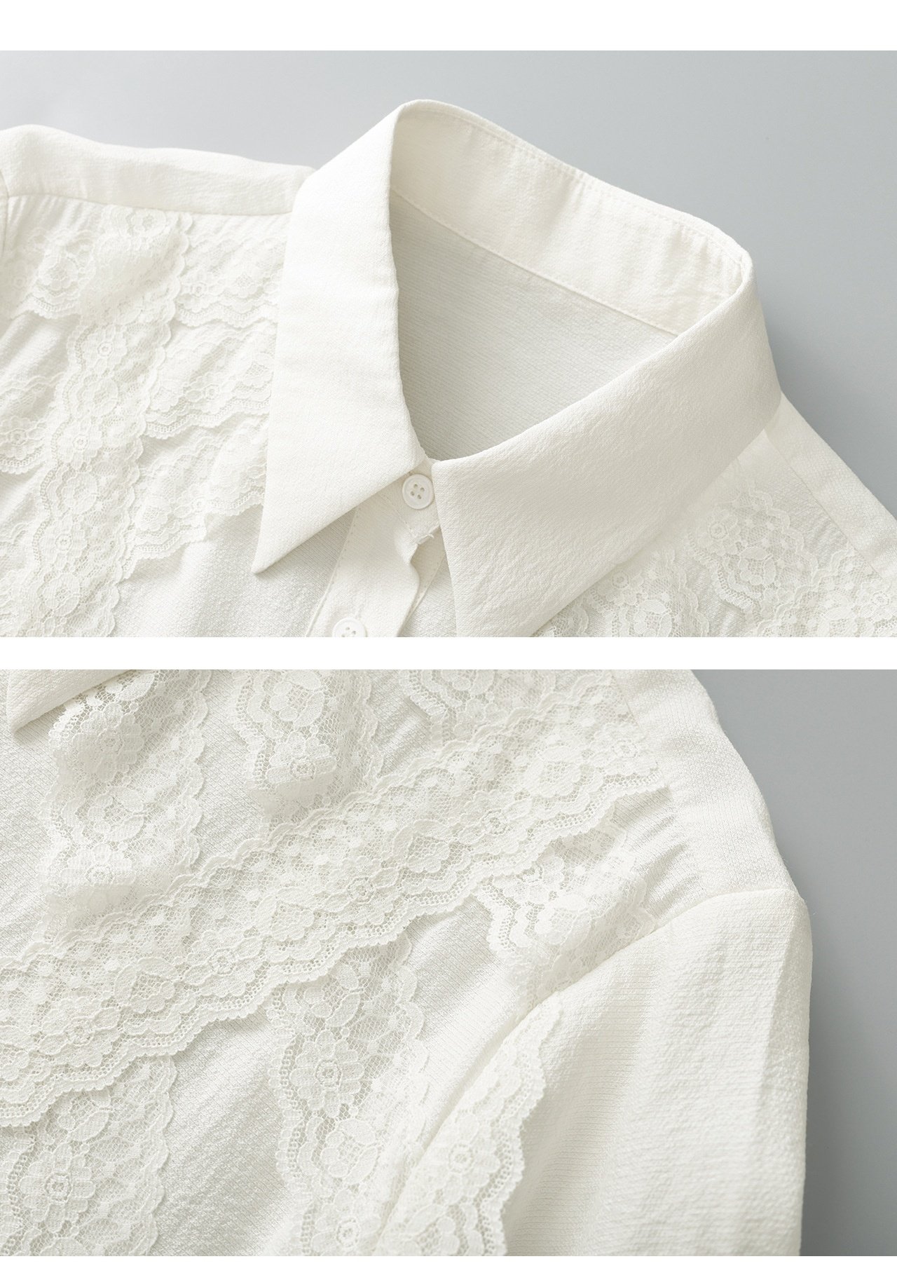 「高货wl」全新升级【铂金会员293/天猫389/差价96】(01638)洛诗琳法式气质翻领衬衫2026春季新款蕾丝边拼接长袖上衣